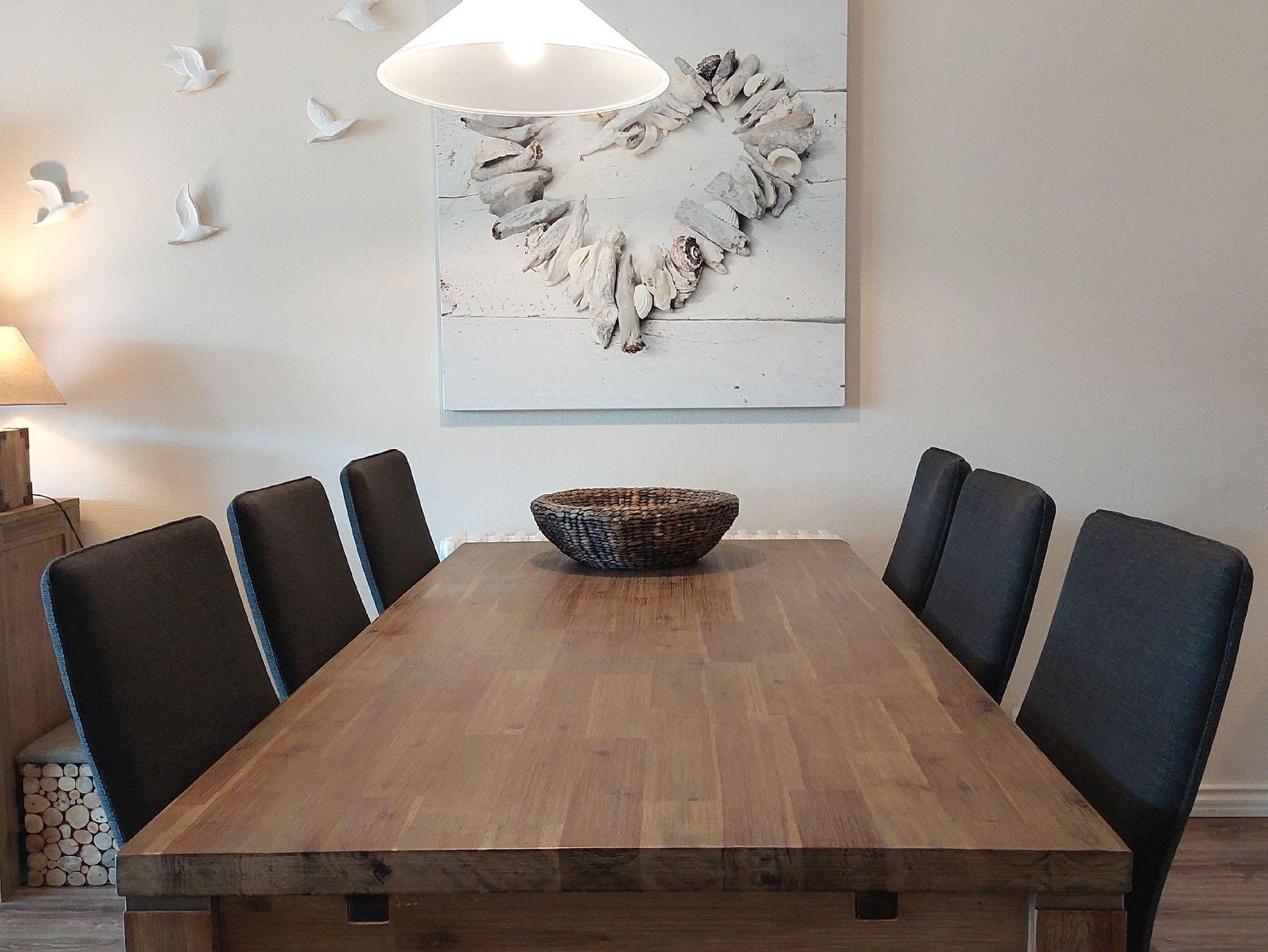 Am großen hölzernen Küchentisch ist genug Platz um auch mal Besuch zu empfangen.