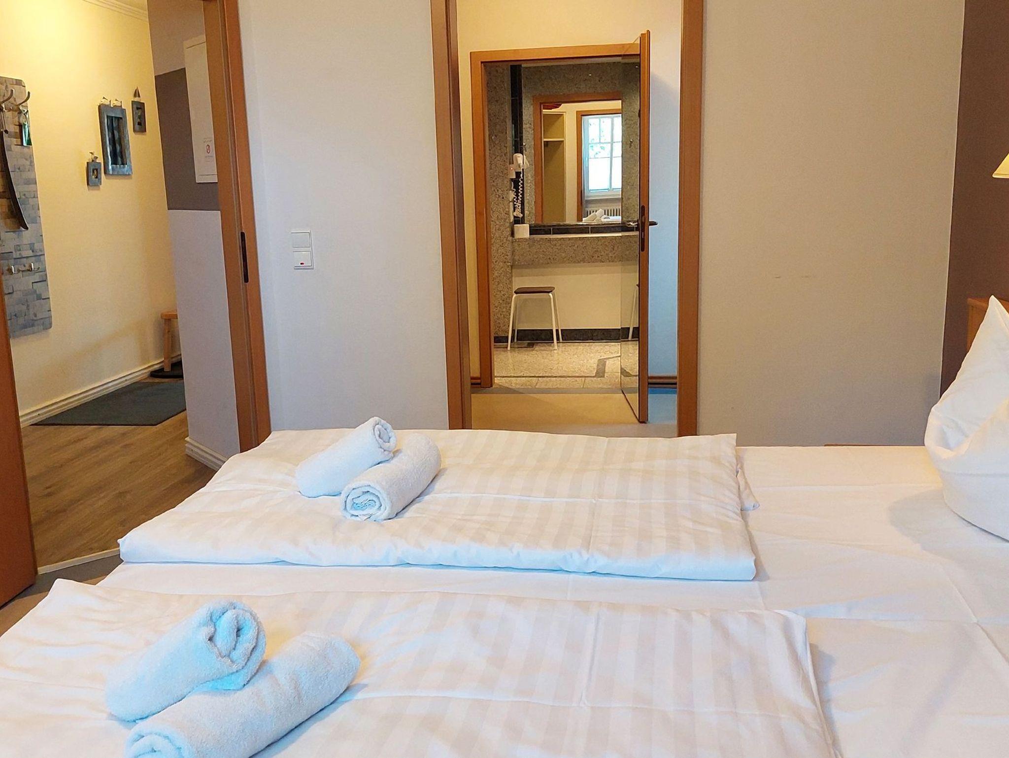 Das Appartement befindet sich im ersten Obergeschoss, erstreckt sich über 61 m² und kann bis zu 4 Personen belegt werden.