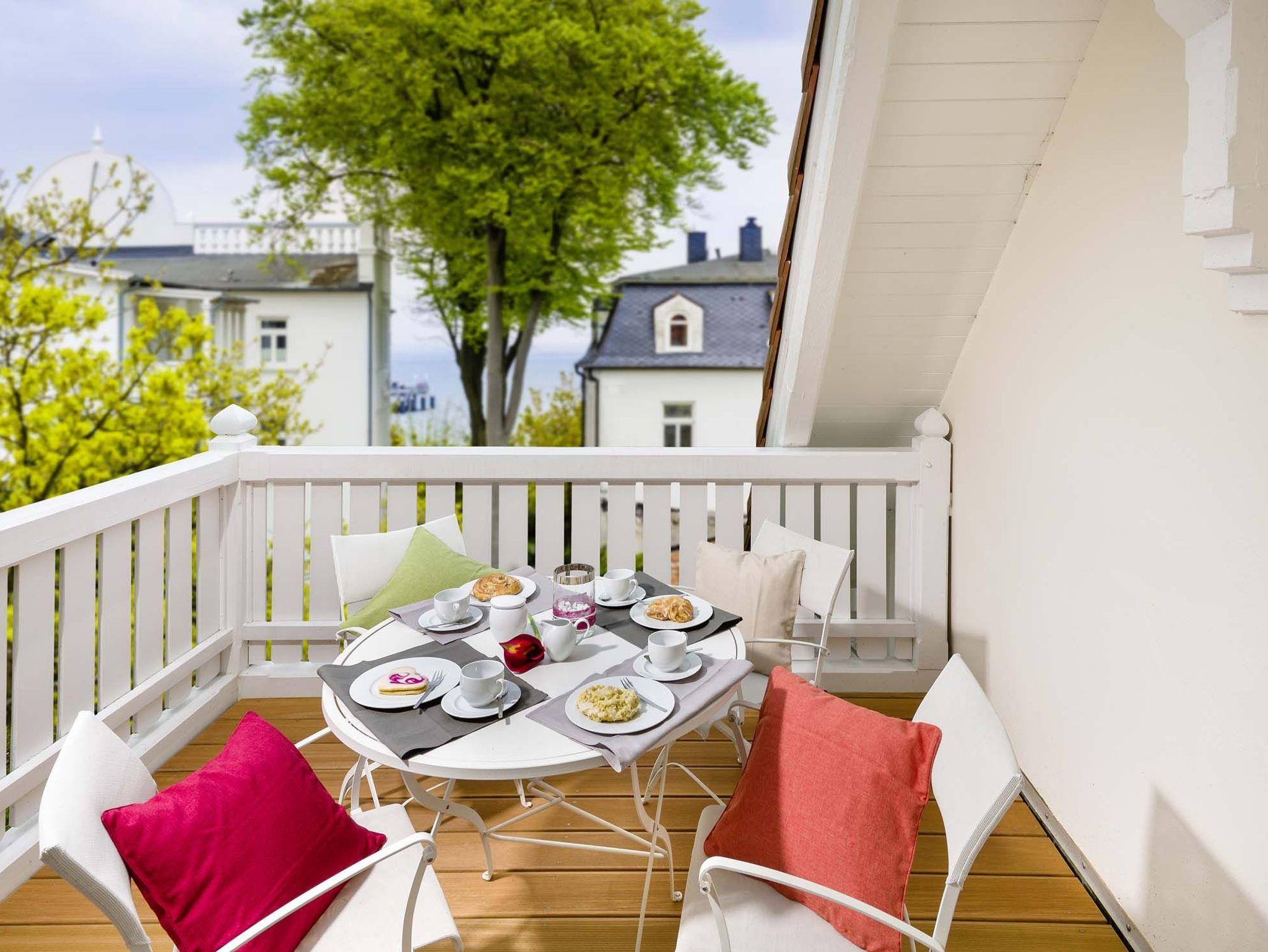 Gemütliche Ferienwohnung mit Balkon und kleinem Meerblick in Binz, ideal für Familien und Haustierfreunde.
