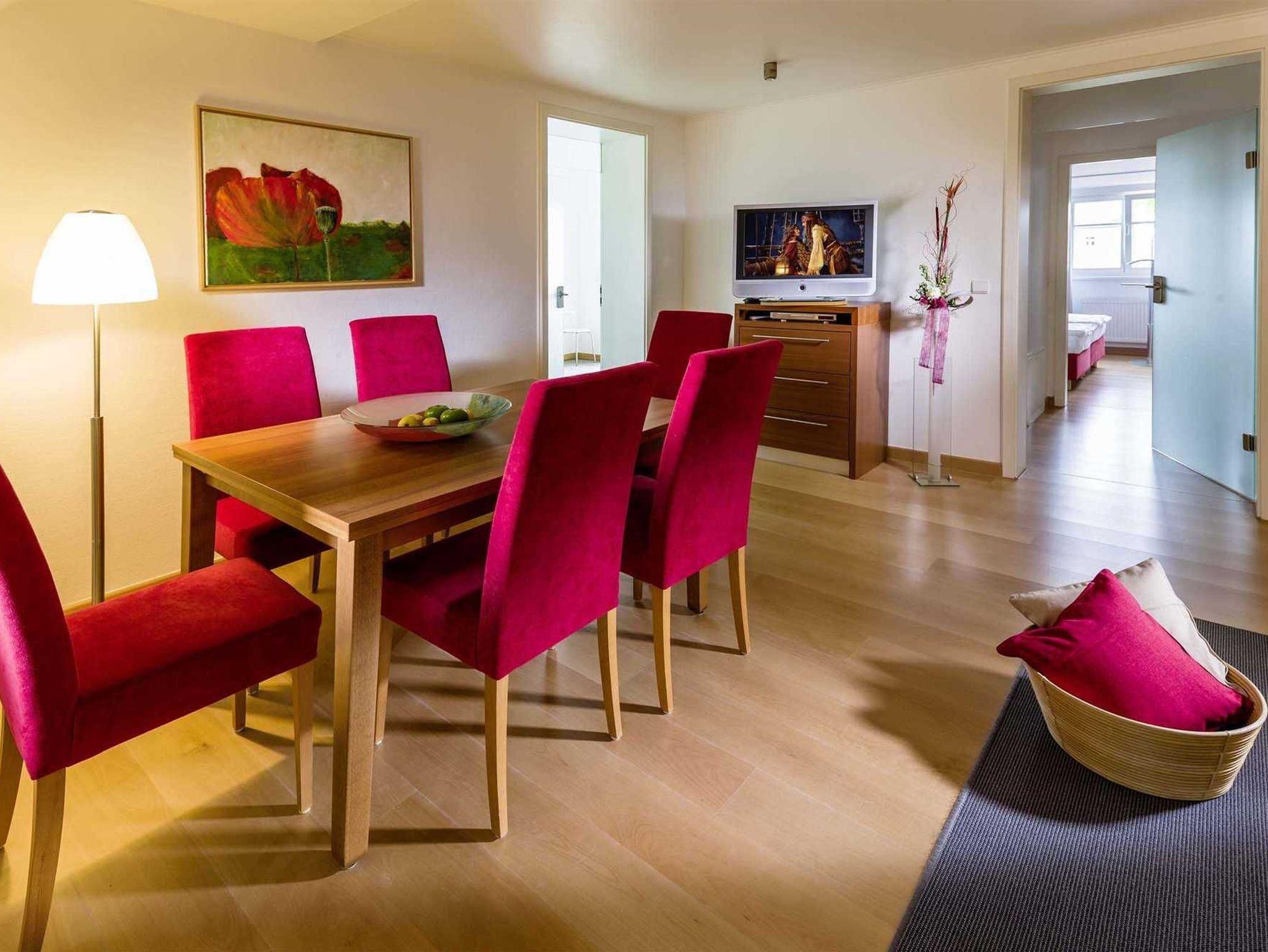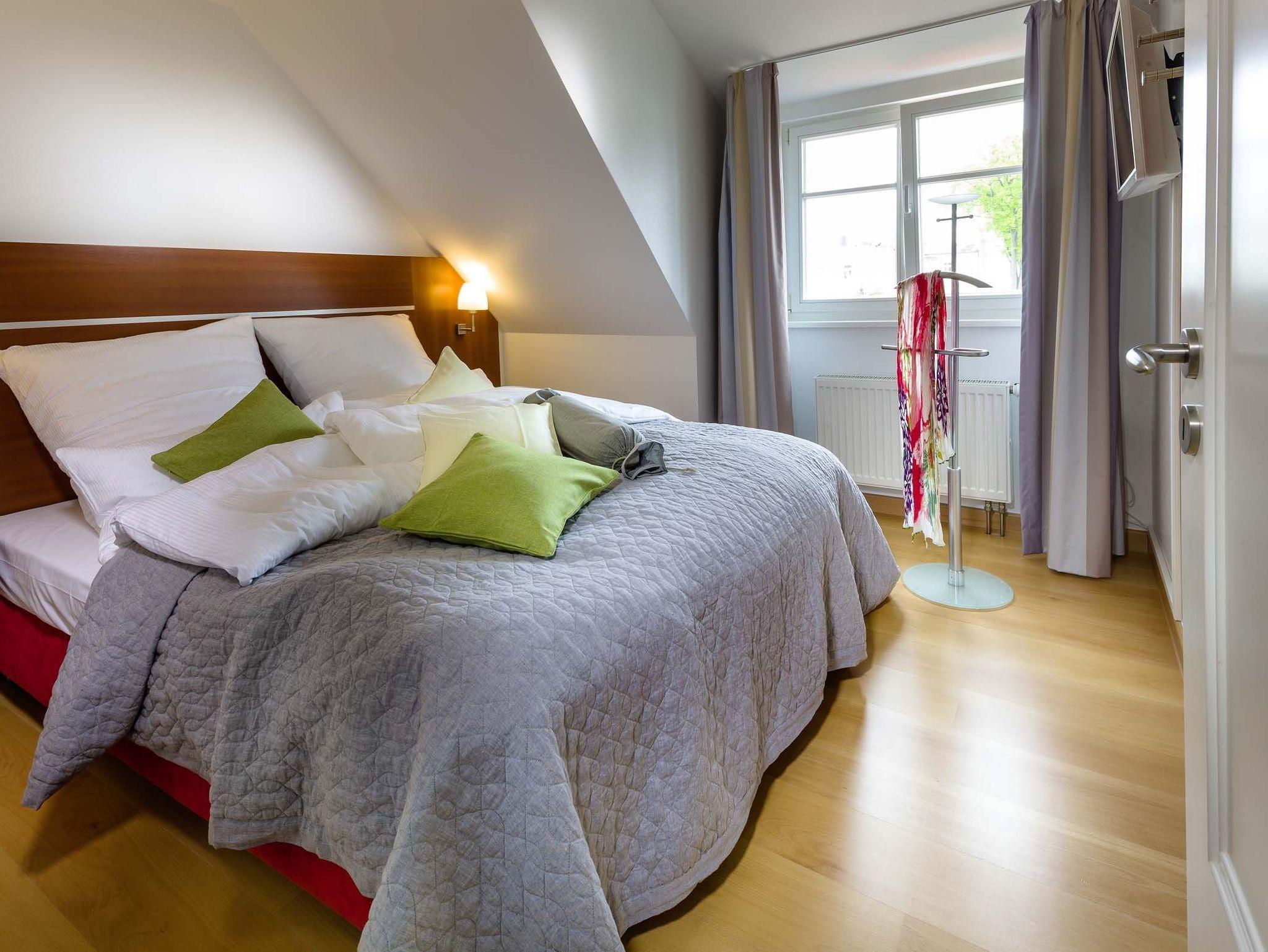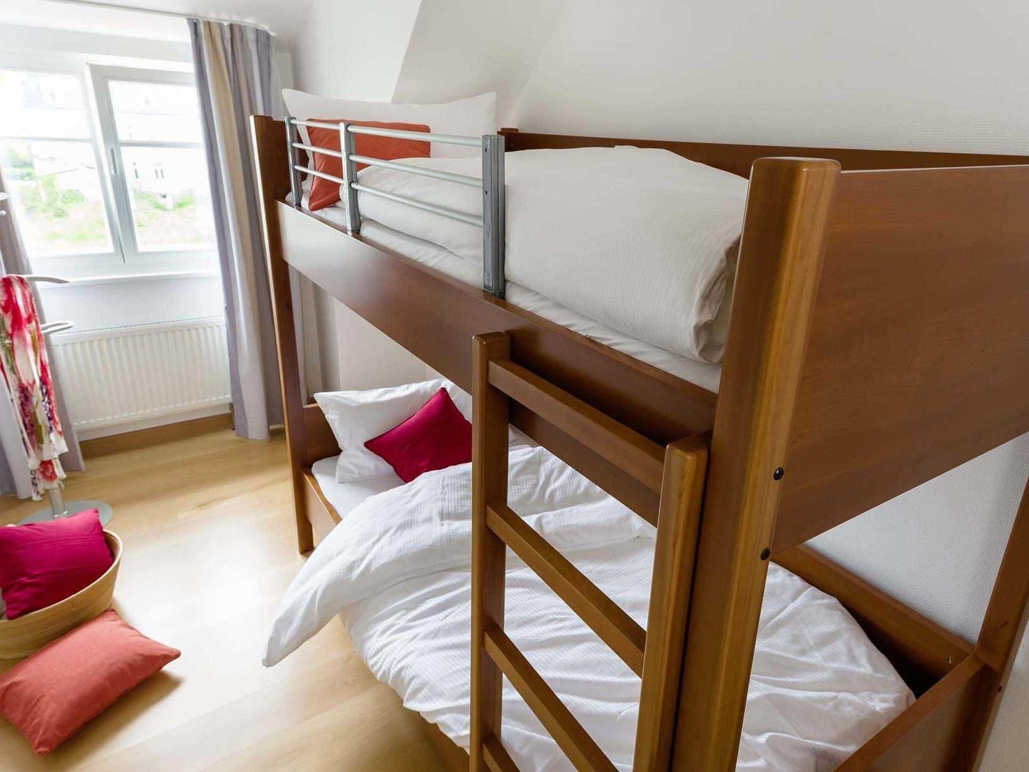 Ihre Ferienwohnung 32RB7 ist liebevoll eingerichtet mit gemütlicher Sitzecke im Erker sowie einem über die Küche erreichbaren Balkon von dem Sie einen kleinen Meerblick haben. Die Wohnung befindet sich im 2.Obergeschoß, hat eine Größe von ca. 98 qm und ist bis 6 Personen belegbar. Neben dem schön eingerichteten Wohnraum gibt es eine separate Küche, zwei separate Schlafräume, ein Badezimmer mit Waschtisch, Dusche und WC sowie eine separate Gästetoilette.Zur Ausstattung der Wohnung gehört außerdem ein Safe. In einem Schlafraum befindet sich ein Doppelbett und ein Kleiderschrank. Der zweite Schlafraum verfügt über ein Doppelstockbett. Im Wohnbereich finden Sie eine gemütliche Sitzgruppe mit Schlafsofa, Essplatz, TV und Telefon. Die Küche ist mit Geschirrspülmaschine, Ceranfeld, Backofen, Kühlschrank und diversen Kleingeräten komplett ausgestattet. Ein PKW-Stellplatz steht Ihnen direkt am Haus zur Verfügung.