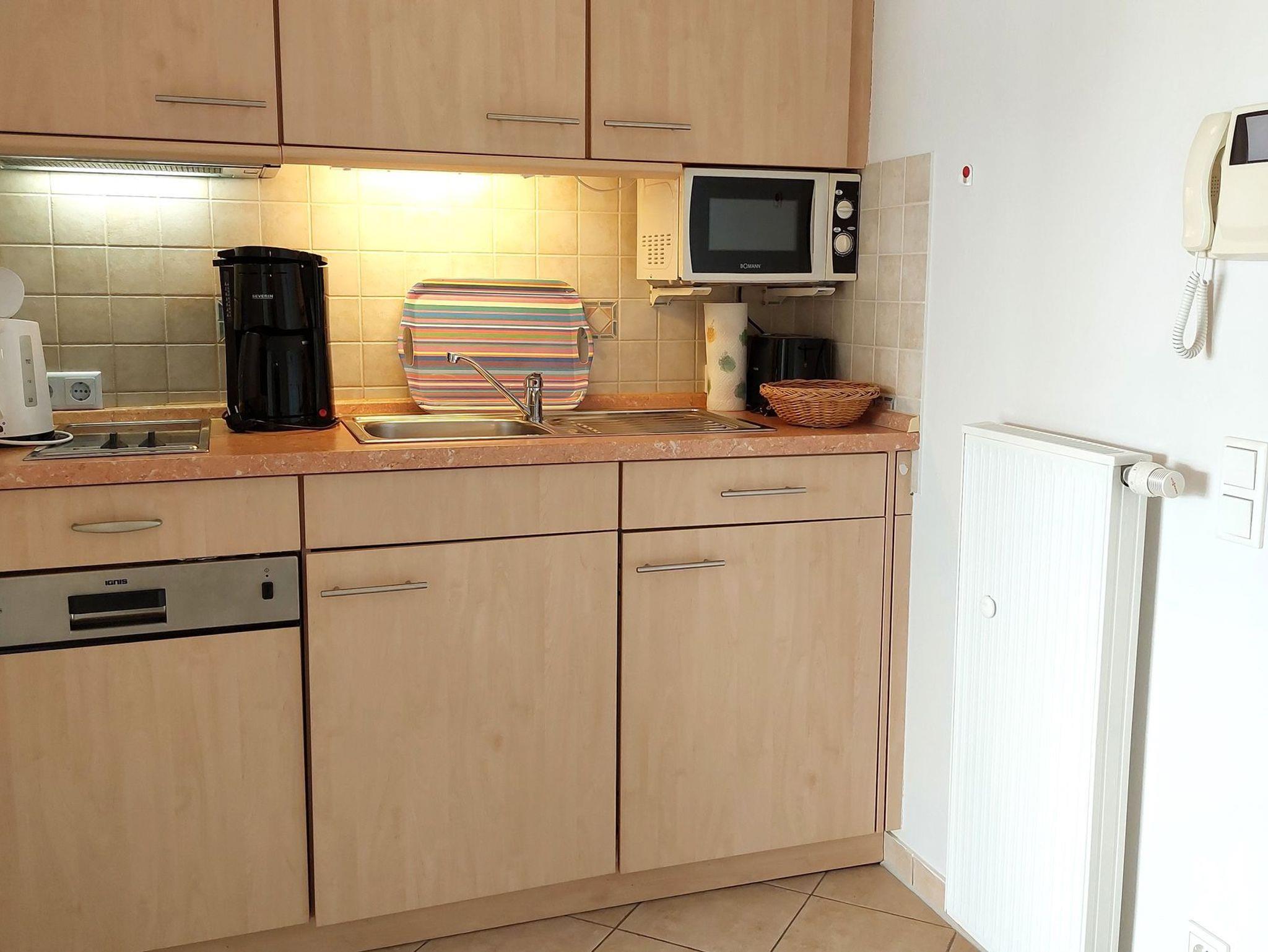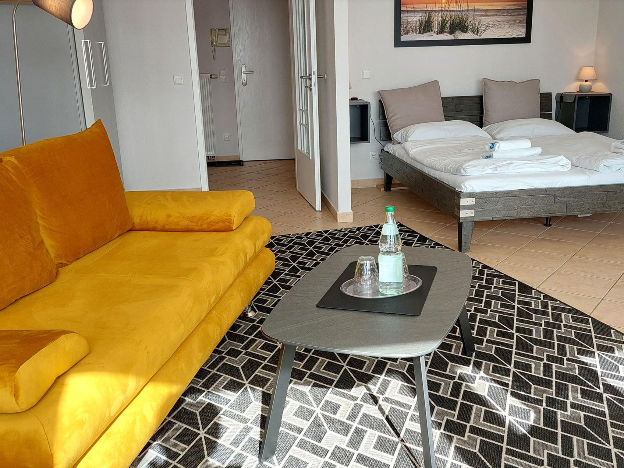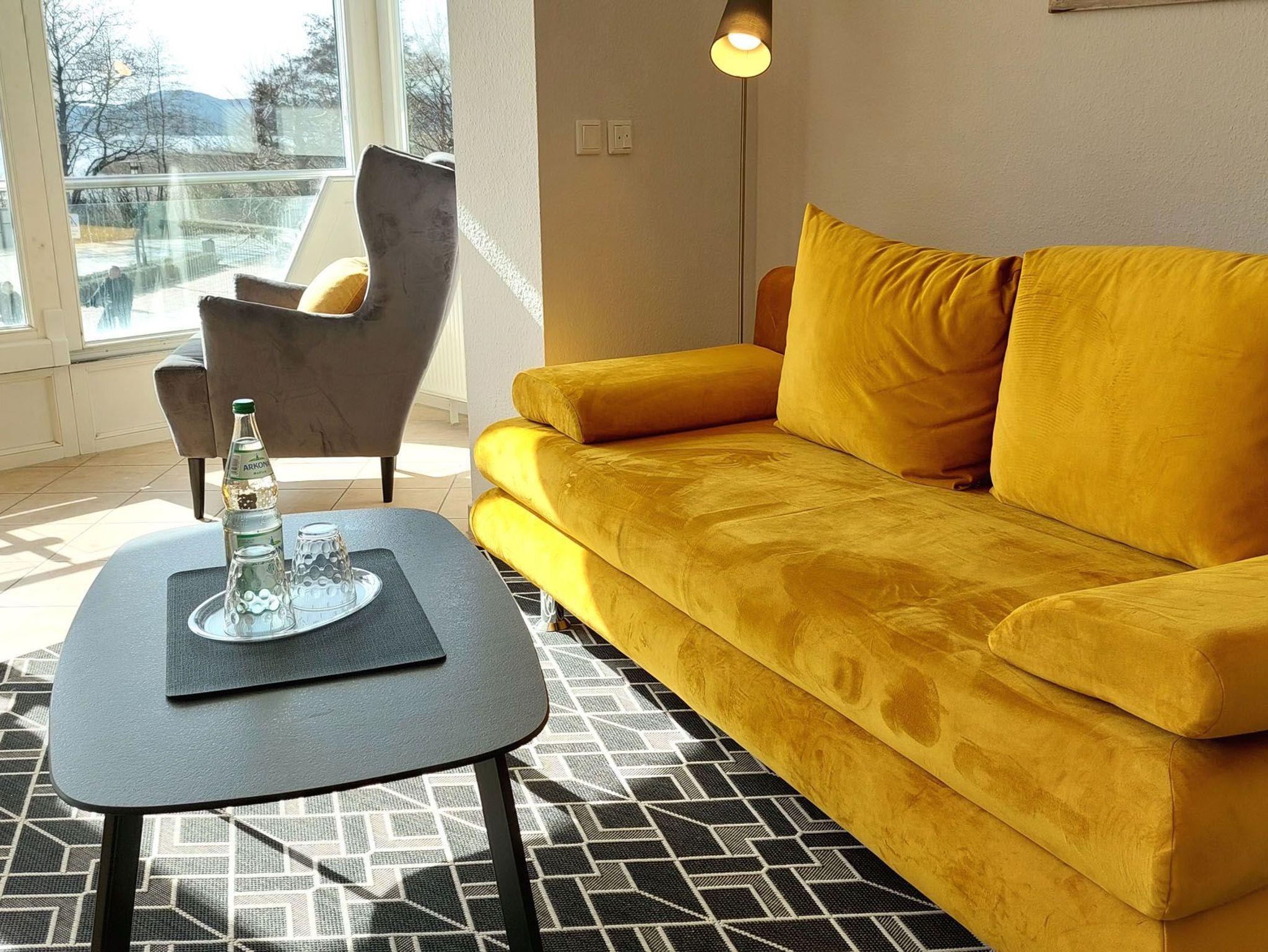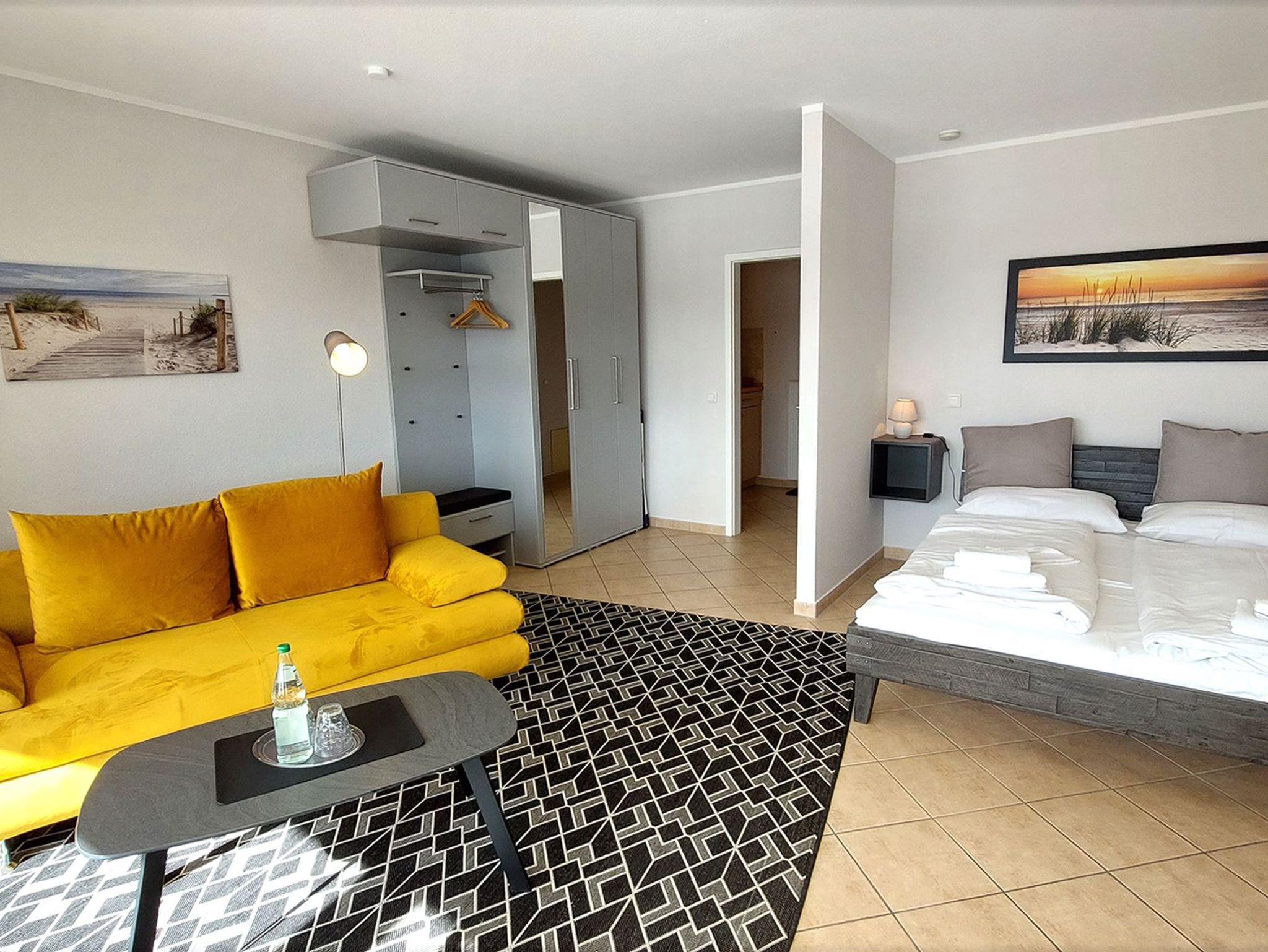 Ihre gemütliche 1-Raum Nichtraucherwohnung 90775 Schwanensee hat eine Größe von ca. 45 qm, ist für max. 3 Personen belegbar und wurde 2024 neu eingerichtet. Der kombinierte Wohn- und Schlafbereich verfügt zudem über einen schönen Wintergarten, welcher eine große Fensterfront Richtung Schmachter See bietet und zum Verweilen einlädt. Dieses komfortable Appartement gliedert sich auf in einen Flur mit integrierter Küchenzeile, einen gemütlichen Wohn- und Schlafbereich mit direktem Zugang zum Wintergarten und ein modernes Duschbad mit Fußbodenheizung, integriertem Radio, Handtuchtrockner, WC und fest installiertem Fön. Das Wohn- und Schlafzimmer ist mit einer gemütlichen Sitzecke, welche zudem die Schlafmöglichkeit für die 3. Person bietet, einem Doppelbett, einem Flachbild-TV, einer Stereoanlage sowie mit WLAN ausgestattet. Darüber hinaus bereiten die elektronischen Jalousien ein angenehmes Schlafambiente. Die Küchenzeile ist mit einem 2-Platten-Cerankochfeld, Kühlschrank mit kleinem Gefrierfach, Geschirrspüler, Kaffeemaschine, Toaster, Wasserkocher und weiteren Küchenhelfern komplett ausgestattet. Ein wohnungseigener Parkplatz steht Ihnen in der hauseigenen Tiefgarage zur Verfügung. Das Befahren dieser ist mit einem SUV oder einem Kombi leider nicht möglich sowie bei Schnee und Glätte.