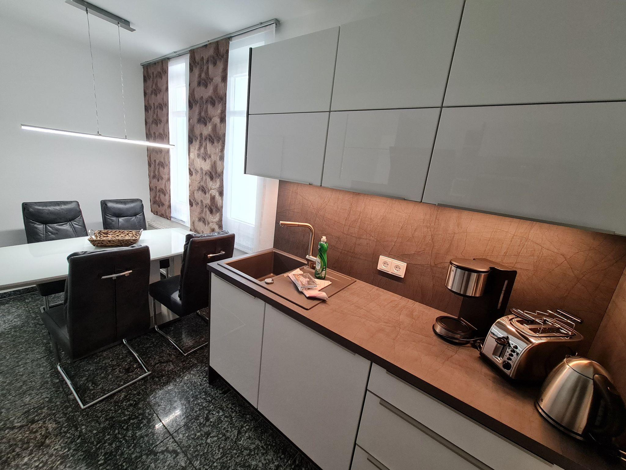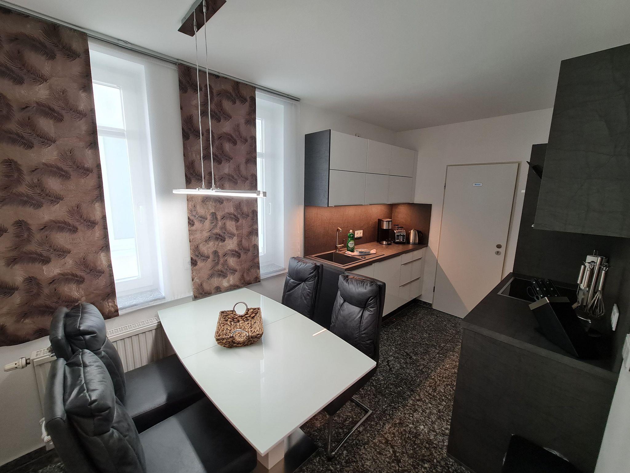 • Küche mit Essplatz sowie Backofen und Geschirrspüler