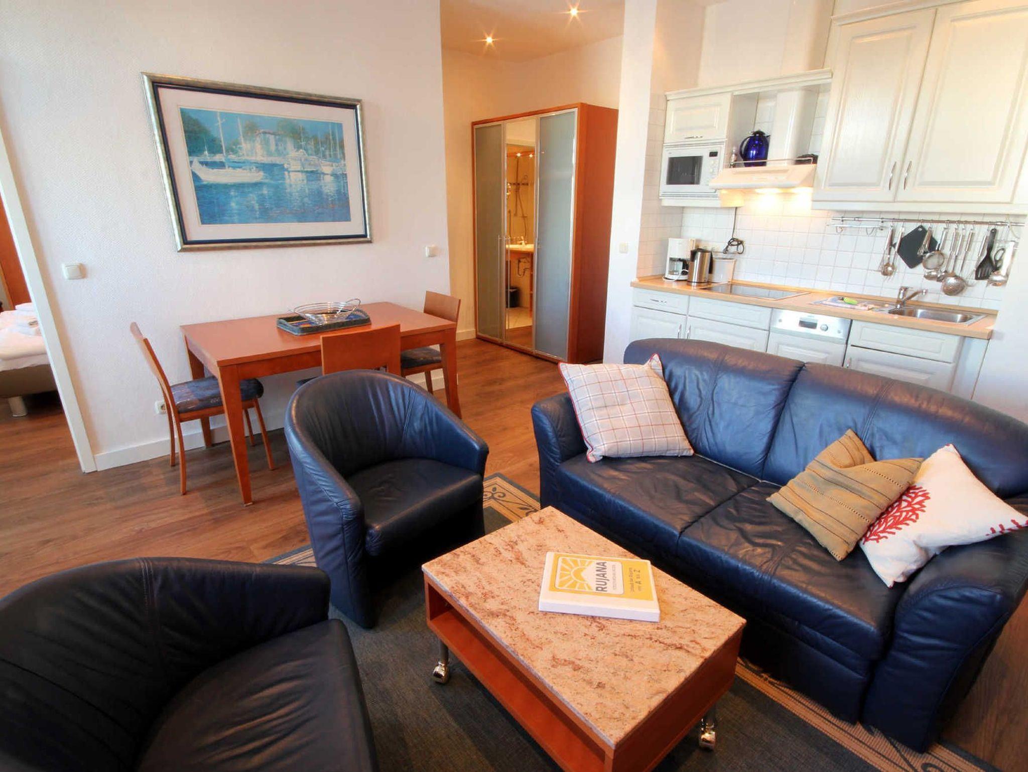 Ihre 2-Zimmer-Nichtraucherwohnung 35RB4 hat eine Größe von ca. 43 qm und ist für bis zu 4 Personen eingerichtet. Sie befindet sich im 1. Obergeschoss und verfügt über einen Balkon. Die Wohnung teilt sich auf in einen Wohnraum, separatem Essplatz, komplette Küchenzeile, Badezimmer, Schlafraum sowie Balkon.