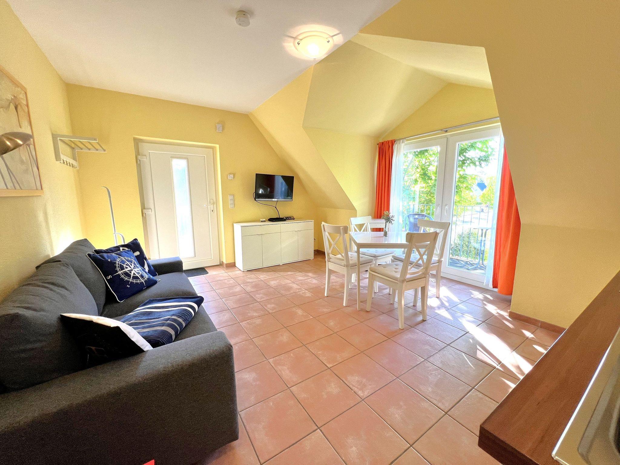 Das schöne 2-Zimmer-Apartment (40m²) befindet sich in der Dollahner Straße 15f im Ostseebad Binz auf Rügen. Die Wohnung ist komplett ausgestattet und bietet alles, was Sie für einen erholsamen Aufenthalt benötigen. Das Apartment verfügt über ein Schlafzimmer mit Doppelbett, ein Wohnzimmer mit Sofabetten für eine weitere Personen sowie eine komplette Küche mit Herd, Kühlschrank und Geschirrspülmaschine. Zu den weiteren Annehmlichkeiten gehören WLAN, Flachbildfernseher und ein Parkplatz auf dem Innenhof.