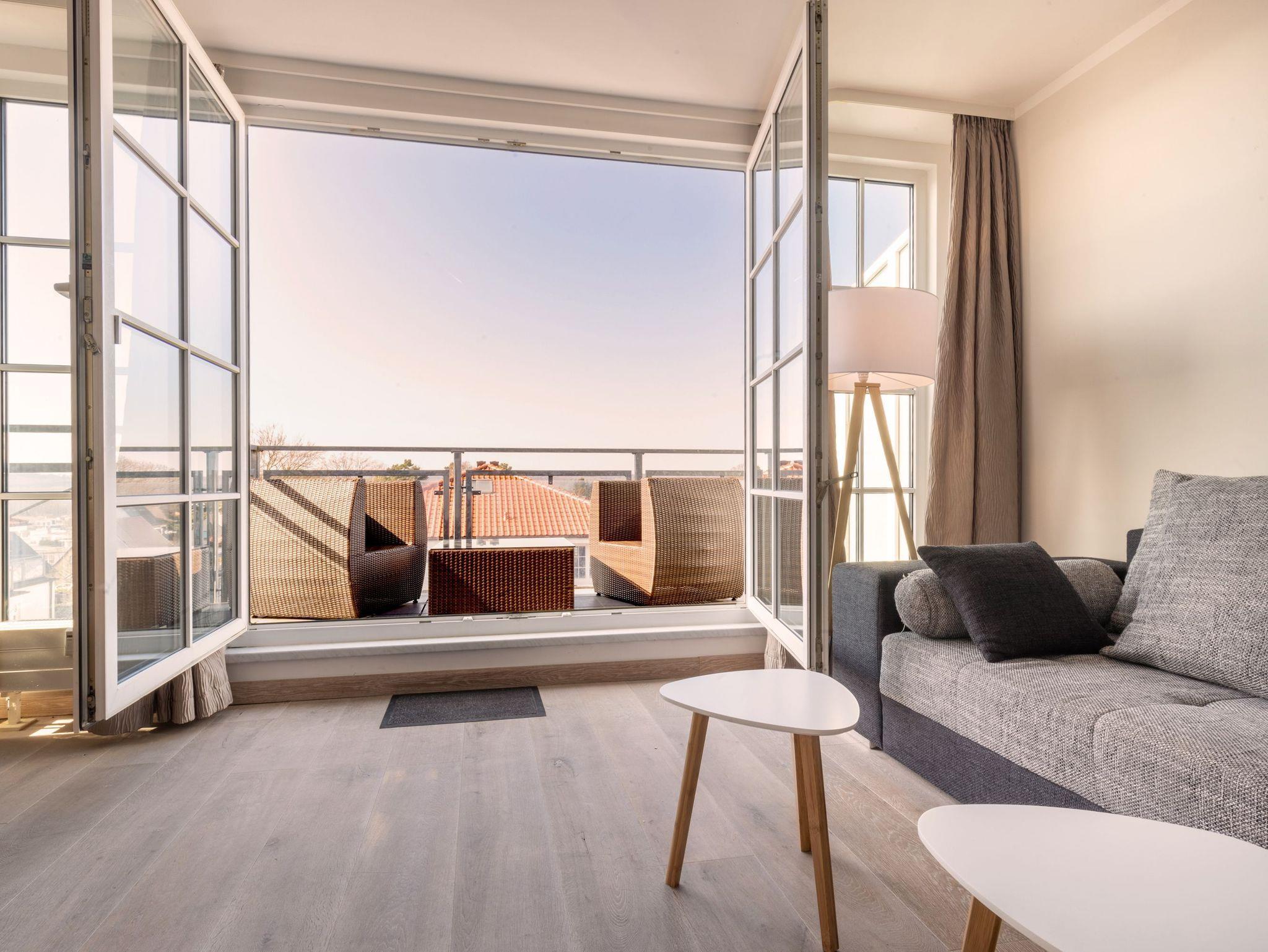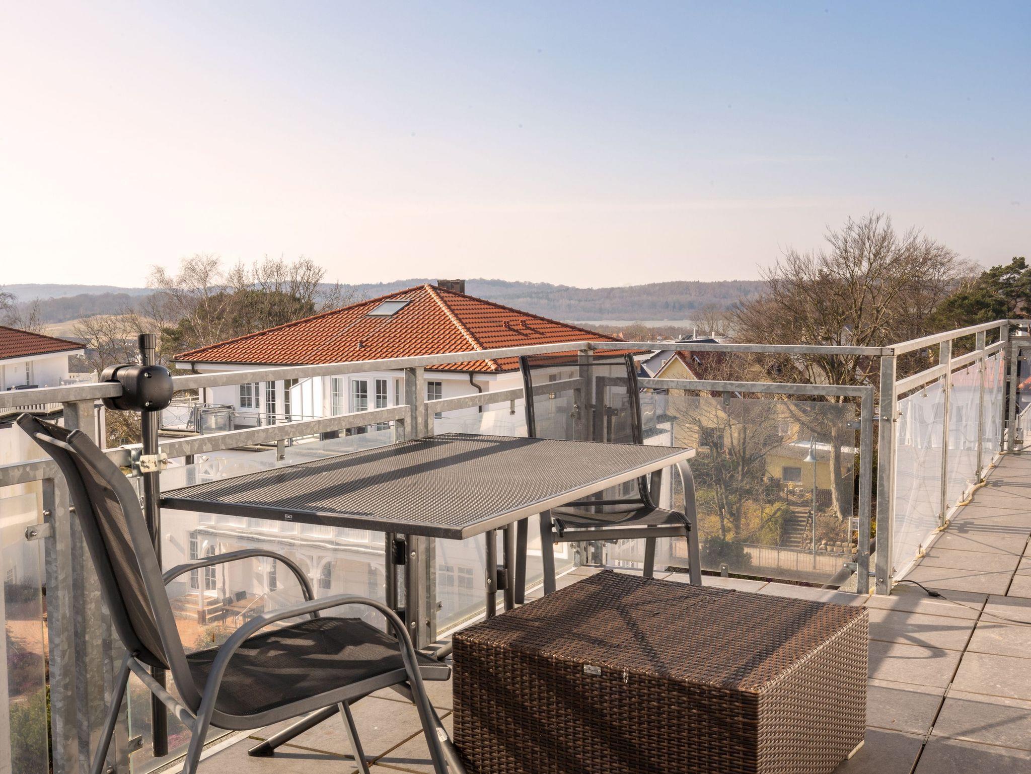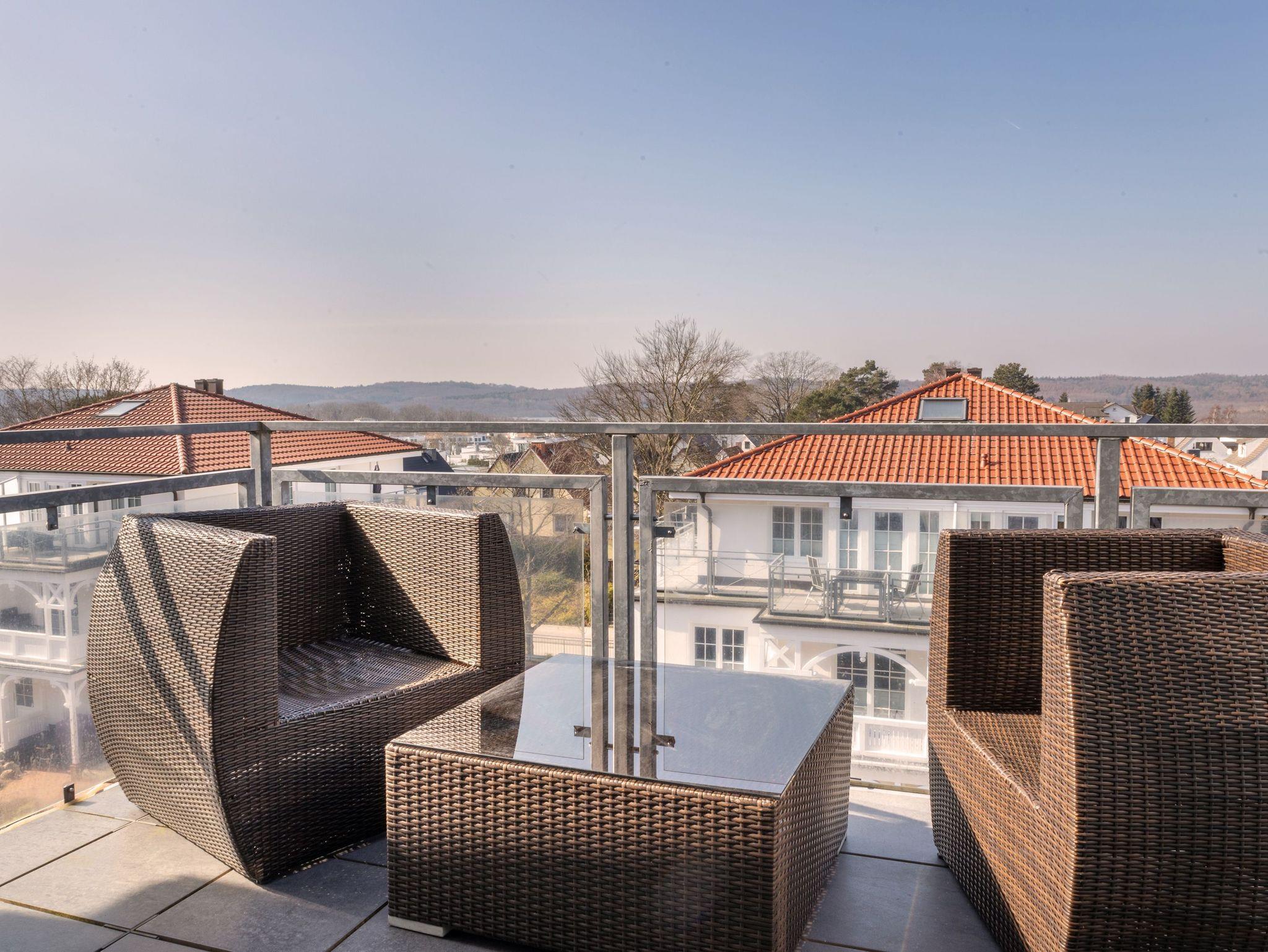 Penthouse Villa Sanddorn in Binz bietet traumhaften Panoramablick und eine großzügige Dachterrasse für entspannte Urlaubsmomente.