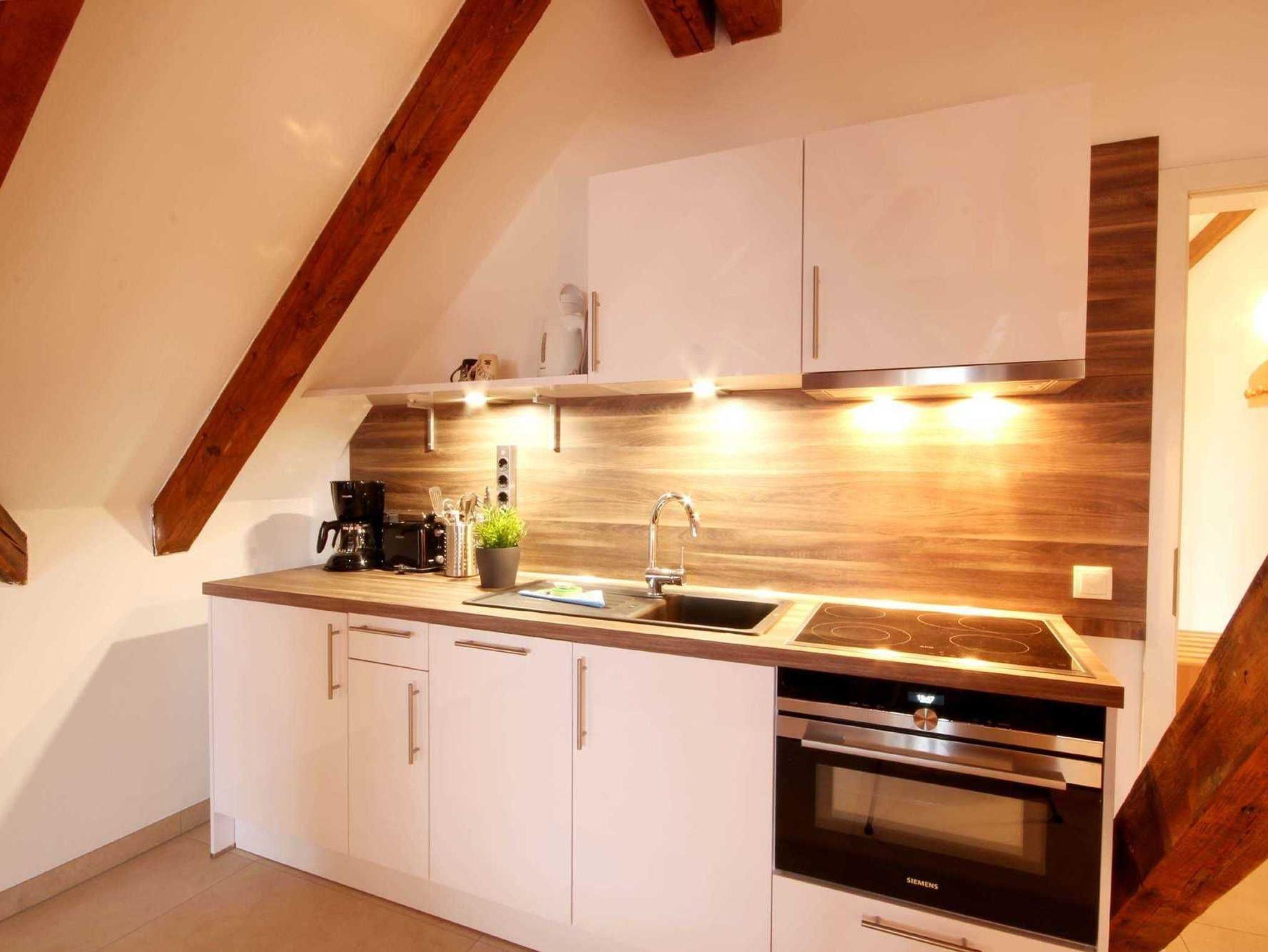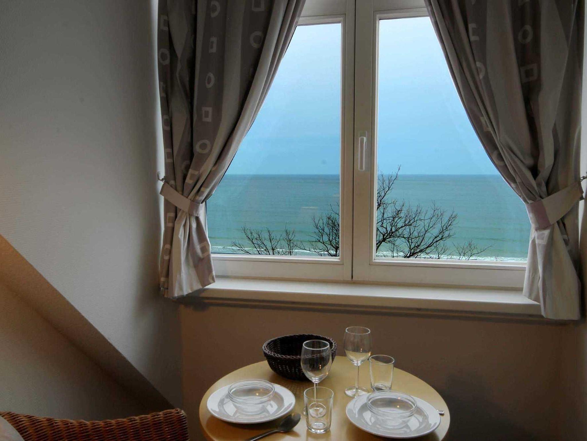 Charmante 1-Zimmer-Dachgeschosswohnung mit Meerblick, Sauna und kostenfreiem WLAN in Binz, ideal für 2 Personen und Haustiere.
