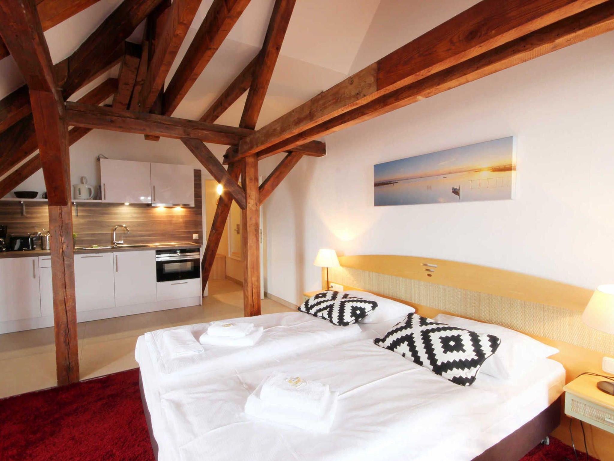 Ihre 1-Zimmer Ferienwohnung 225RB27 befindet sich im Dachgeschoss, ist ca. 45 qm groß und für 2 Personen gut geeignet. Neben dem kombinierten Wohn- und Schlafbereich mit Doppelbett, gehört ein Essbereich, ein Schreibtisch, Flachbild TV sowie WLAN zur Nichtraucherwohnung. Vom gemütlichen Wohn- und Schlafbereich genießen Sie den Blick auf die Strandpromenade sowie auf die Binzer Bucht. Ebenfalls können Sie eine voll ausgestattete integrierte Küchenzeile mit Geschirrspüler, Nespresso-Maschine, Backofen, Mikrowelle, Wasserkocher, Toaster und Kaffeemaschine nutzen. Das Tageslichtbad erwartet Sie mit Waschtisch, WC und Dusche.