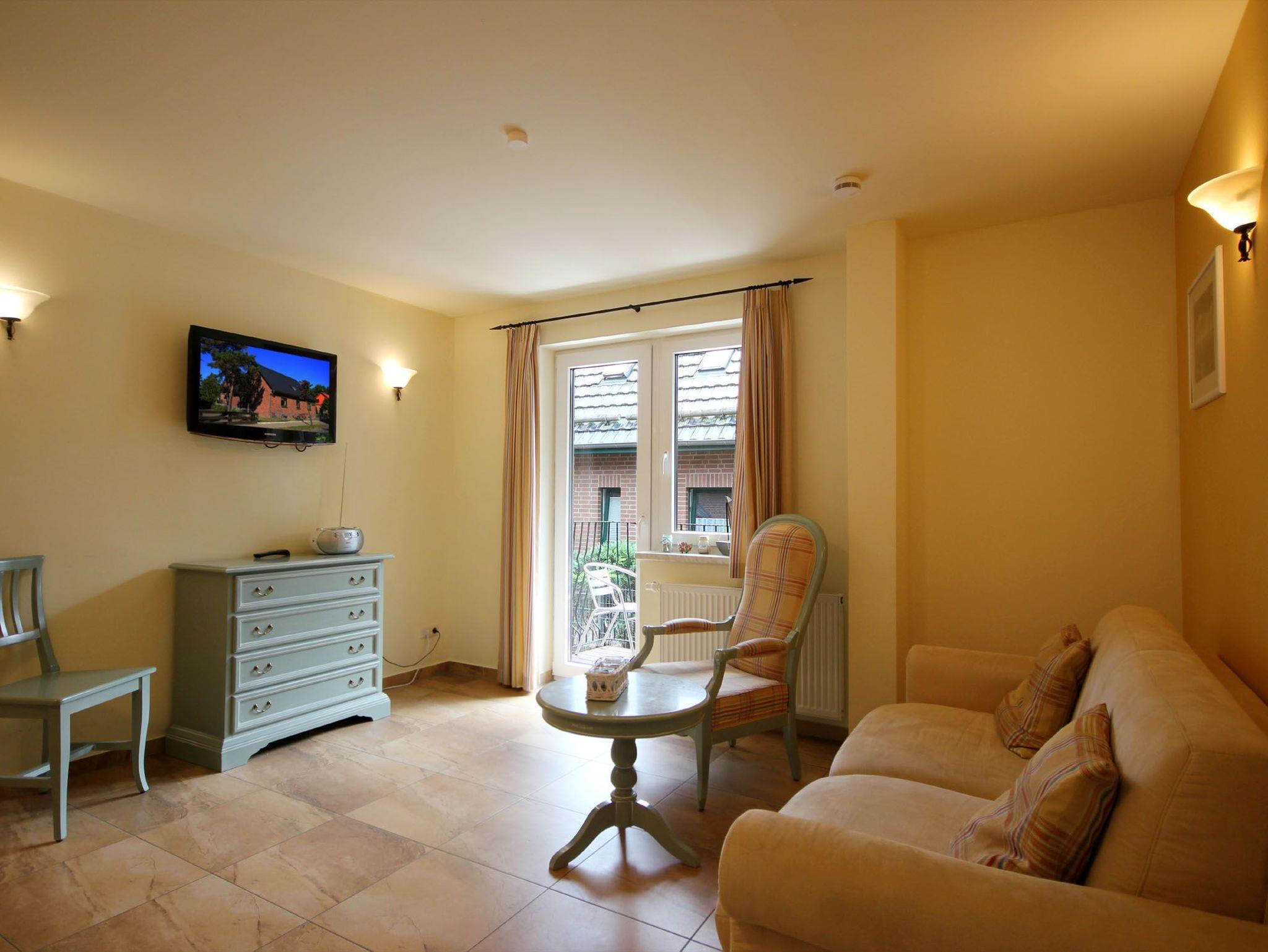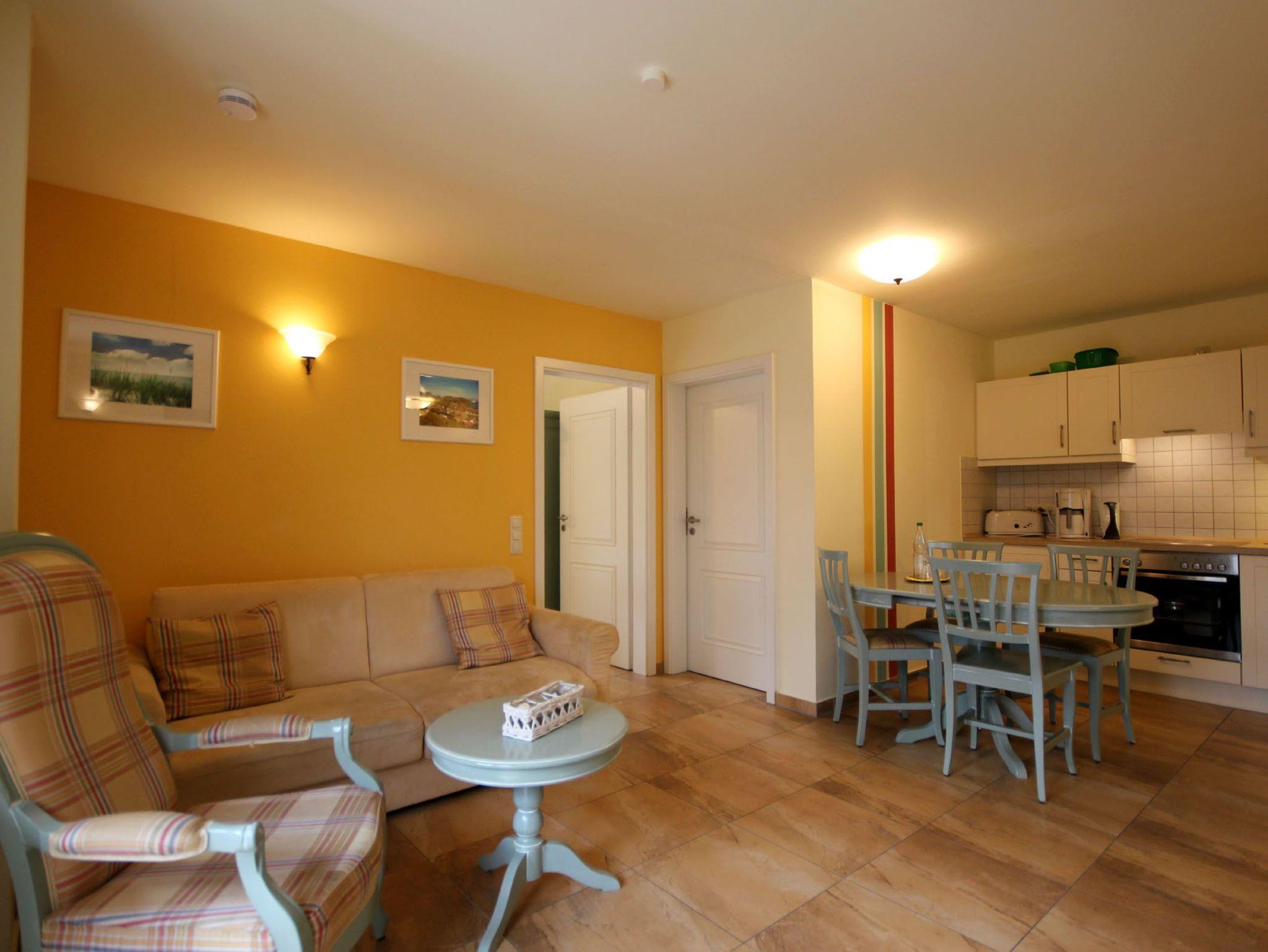Ihre 3-Zimmerwohnung 90325 ist ca. 55 qm groß, befindet sich im Hochparterre und verfügt über einen Ost-Balkon. Neben dem Wohnraum mit integrierter Küche finden Sie zwei Schlafräume und ein Badezimmer mit Waschtisch, Dusche und WC. Beide Schlafzimmer verfügen über ein Doppelbett und einen Kleiderschrank. Das gemütliche Wohnzimmer ist mit Sitzgruppe (u.a. mit Schlafsofa für die 5. u. 6. Person) und Essplatz möbliert. Zur technischen Ausstattung gehört ein LCD-Fernseher. Die Küche ist mit Backofen, Ceranfeld, Mikrowelle, Kühlschrank mit Gefrierfach, Geschirrspüler und diversen Kleingeräten komplett ausgestattet.