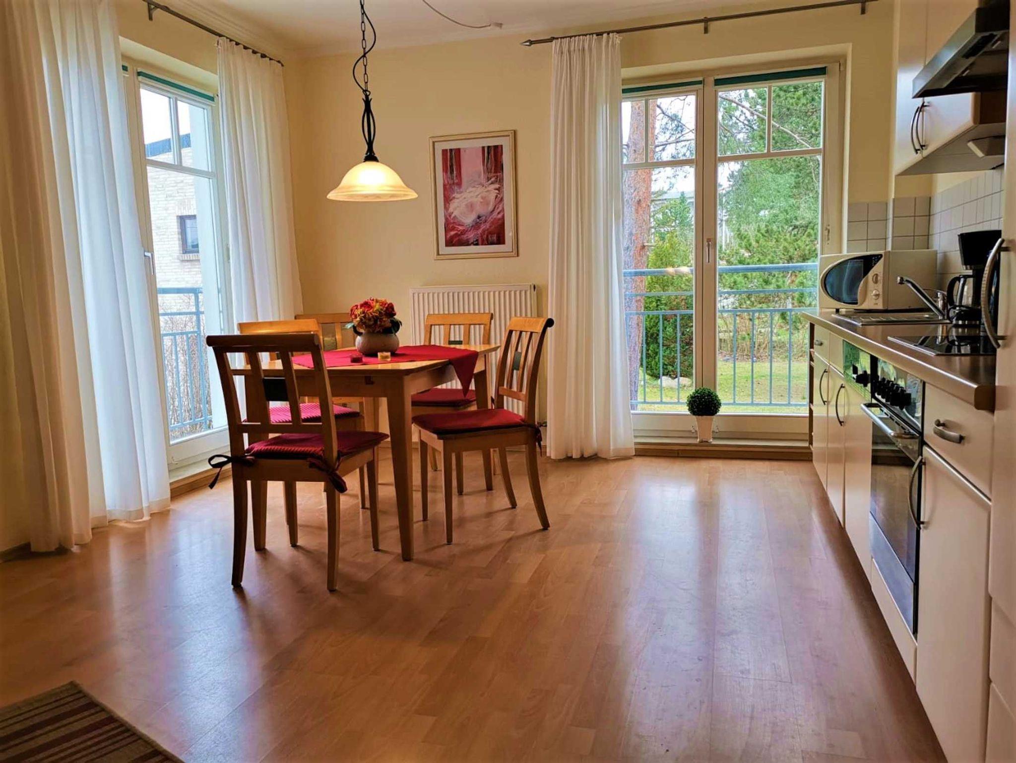 Der feinsandige Strand, die Seebrücke, gemütliche Cafés, Restaurants sowie vielfältige Einkaufsmöglichkeiten sind in wenigen Gehminuten erreichbar. Trotz der zentralen Lage bietet die Umgebung eine wohltuende Ruhe, perfekt für entspannte Urlaubstage ohne Trubel.