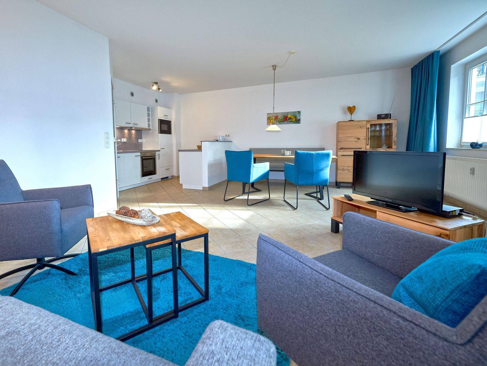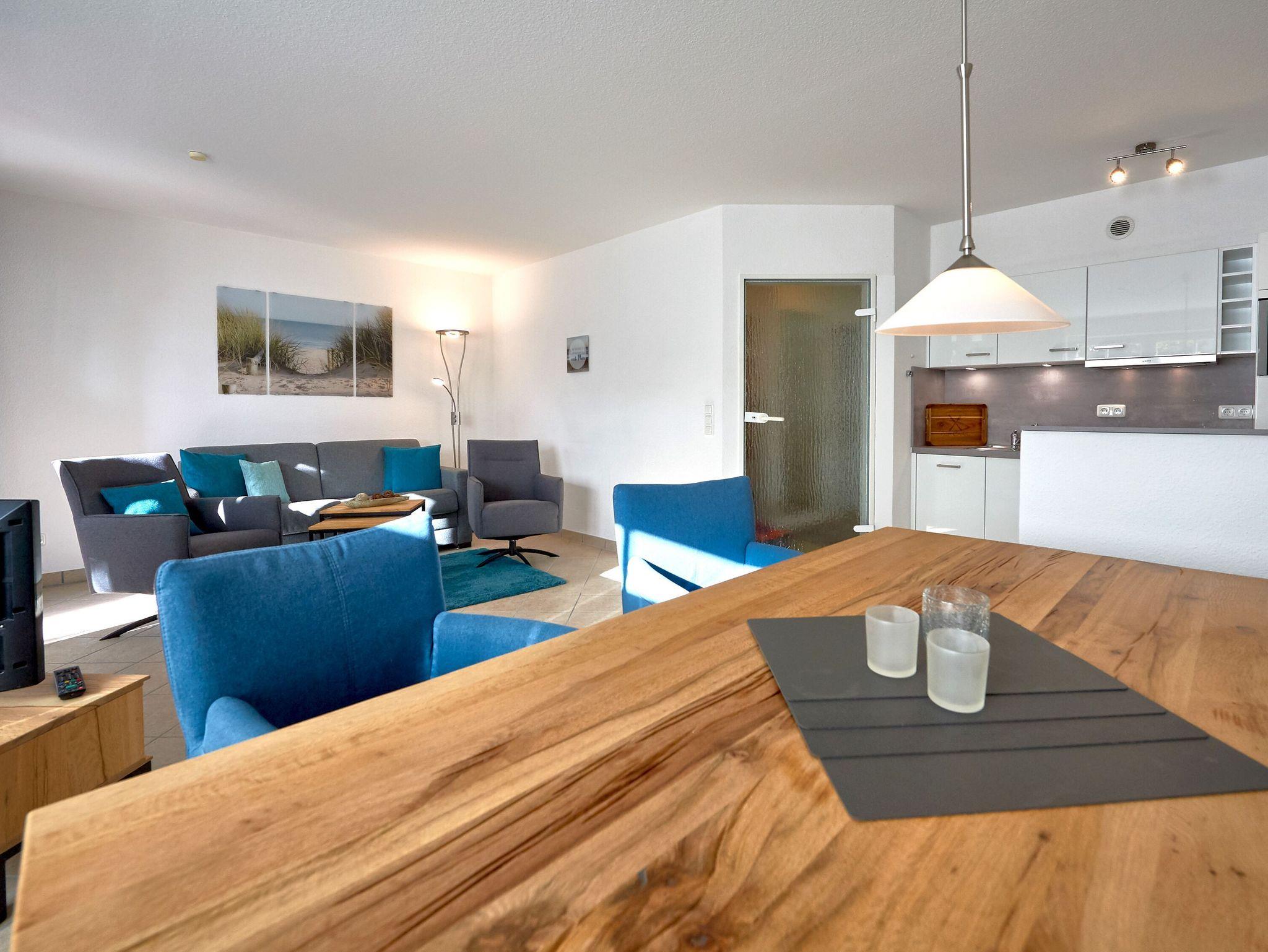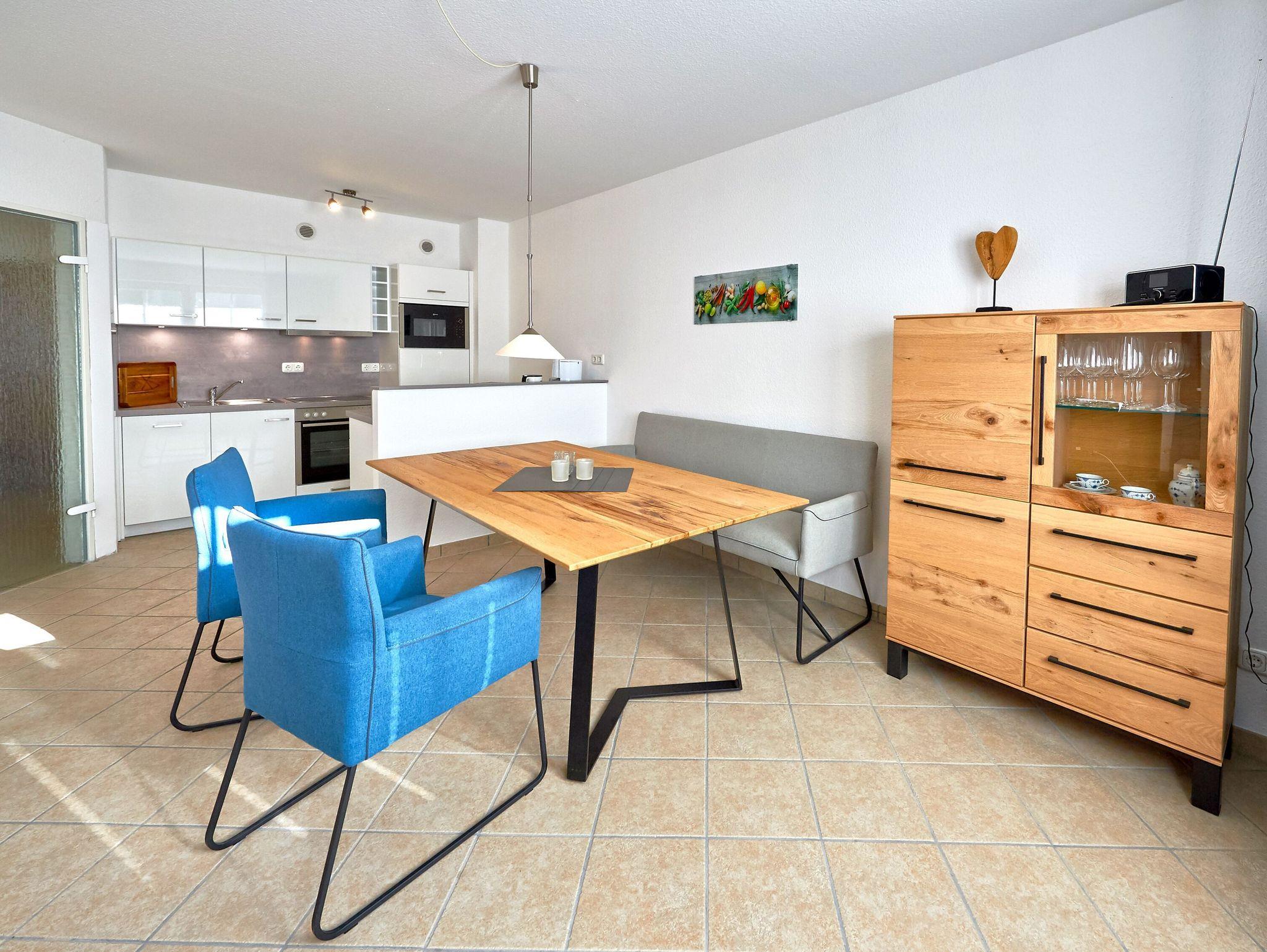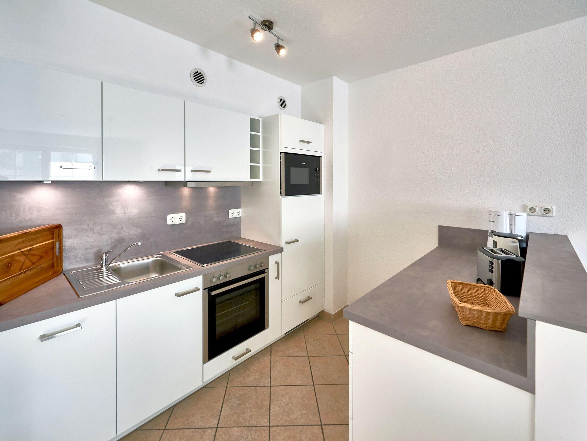 Komfortables 2-Raum-Appartement in Binz mit Balkon, moderner Küche, WLAN und Tiefgaragenstellplatz nahe Strand und Zentrum.