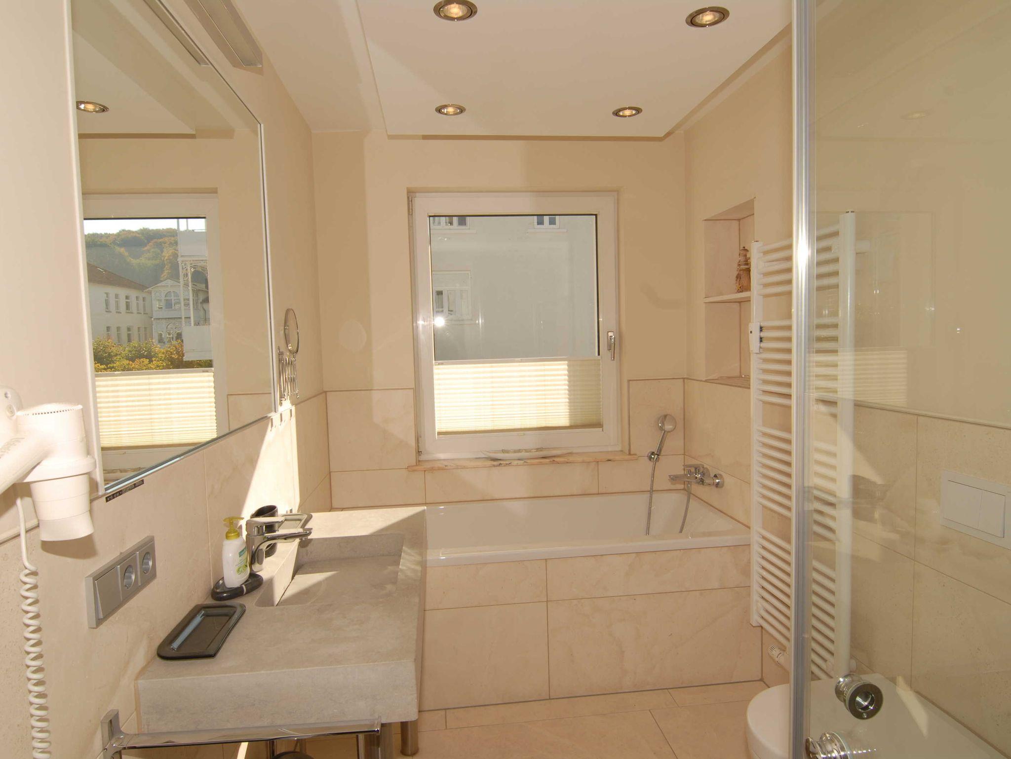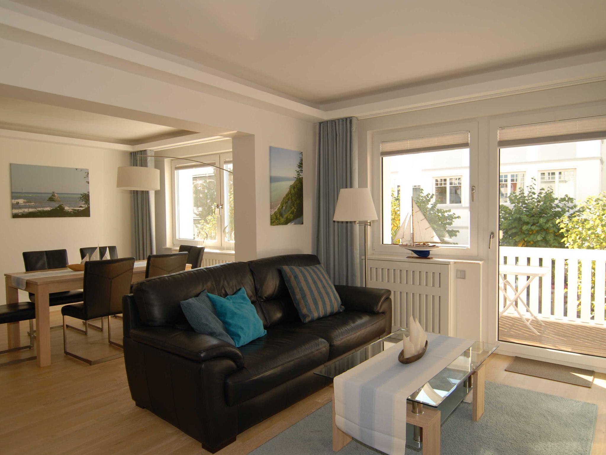 Modernes 3-Zimmer-Appartement "Rügen-Liebe" in Binz, 100 m von Strand und Flaniermeile entfernt, mit Sauna und Balkon.