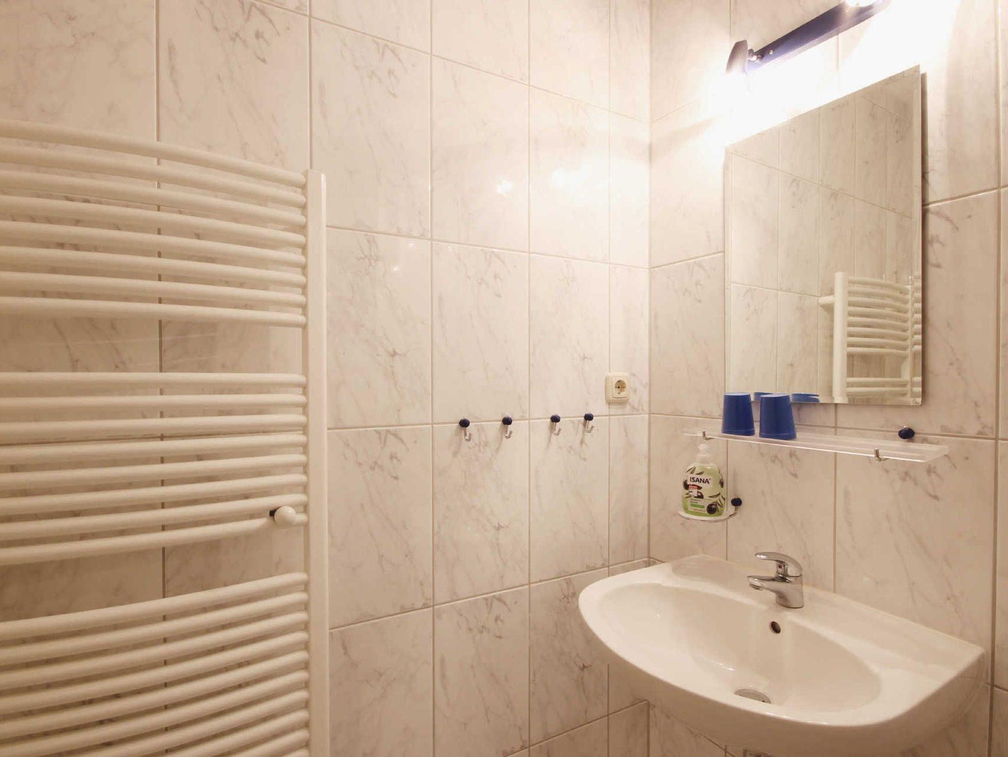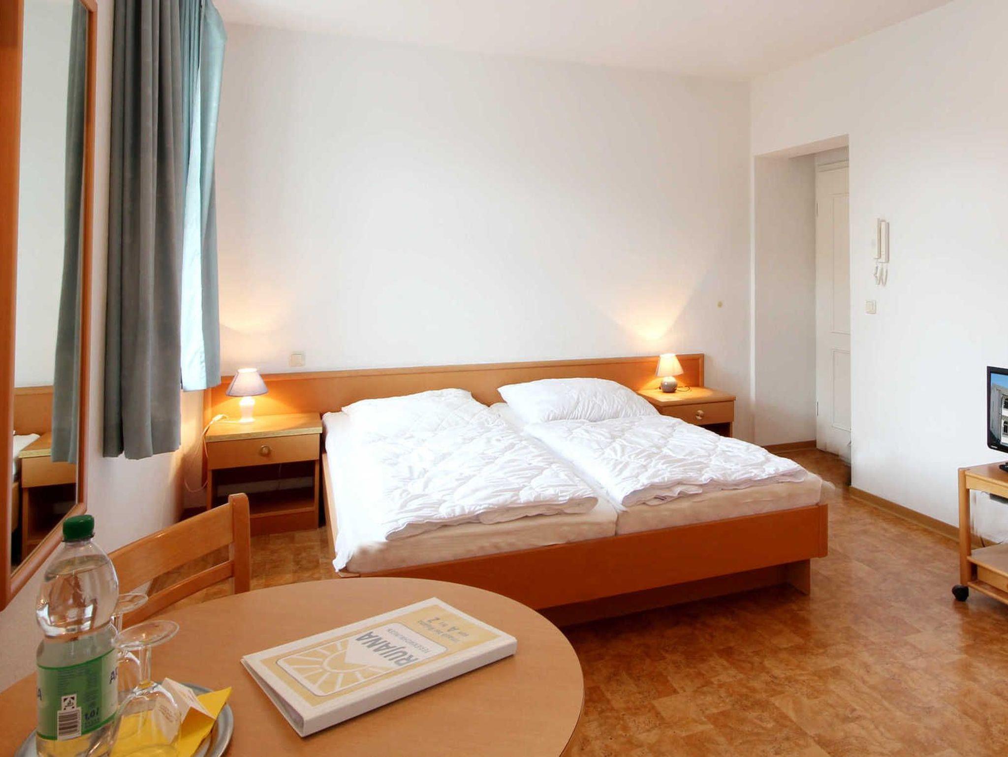 Ihre Ferienwohnung 90447 befindet sich im 1. Obergeschoss des Hauses Villa Hans. Die 1 Zimmer - Wohnung hat eine Größe von ca. 25 qm und ist mit bis zu 2 Personen belegbar. Neben dem kombinierten Wohn- und Schlafzimmer mit Essbereich gibt es eine Küchenzeile sowie ein separates Badezimmer mit Waschtisch, Dusche, Handtuchheiztrockner und WC. Der Wohn- / Schlafbereich verfügt über ein Doppelbett; einen Kleiderschrank, einen Flachbild-TV sowie einen kostenlosen WLAN-Zugang. Die kleine Wohnküche ist mit einem Kühlschrank, Kochfeld, Kaffeemaschine, Wasserkocher, Toaster und diversen Kleingeräten ausgestattet. Ein wohnungseigener Außenstellplatz sowie eine Unterstellmöglichkeit für Ihre Fahrräder steht Ihnen am Haus zur Verfügung.
