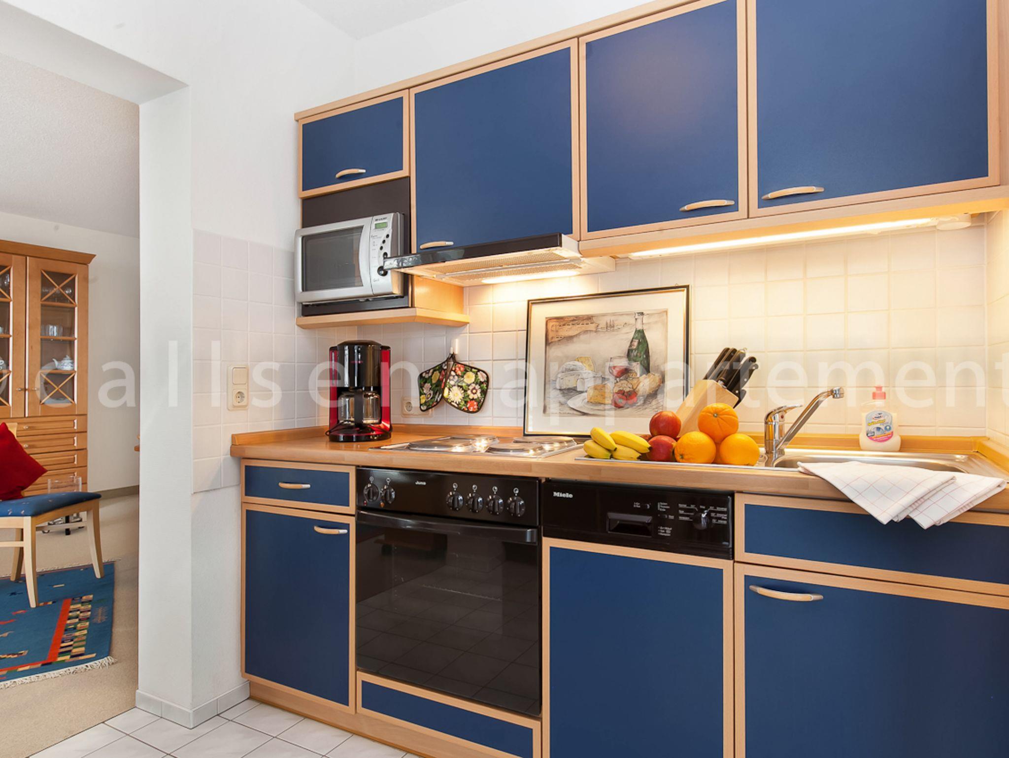 - Küche mit Cerankochfeld, Mikrowelle und Geschirrspüler,