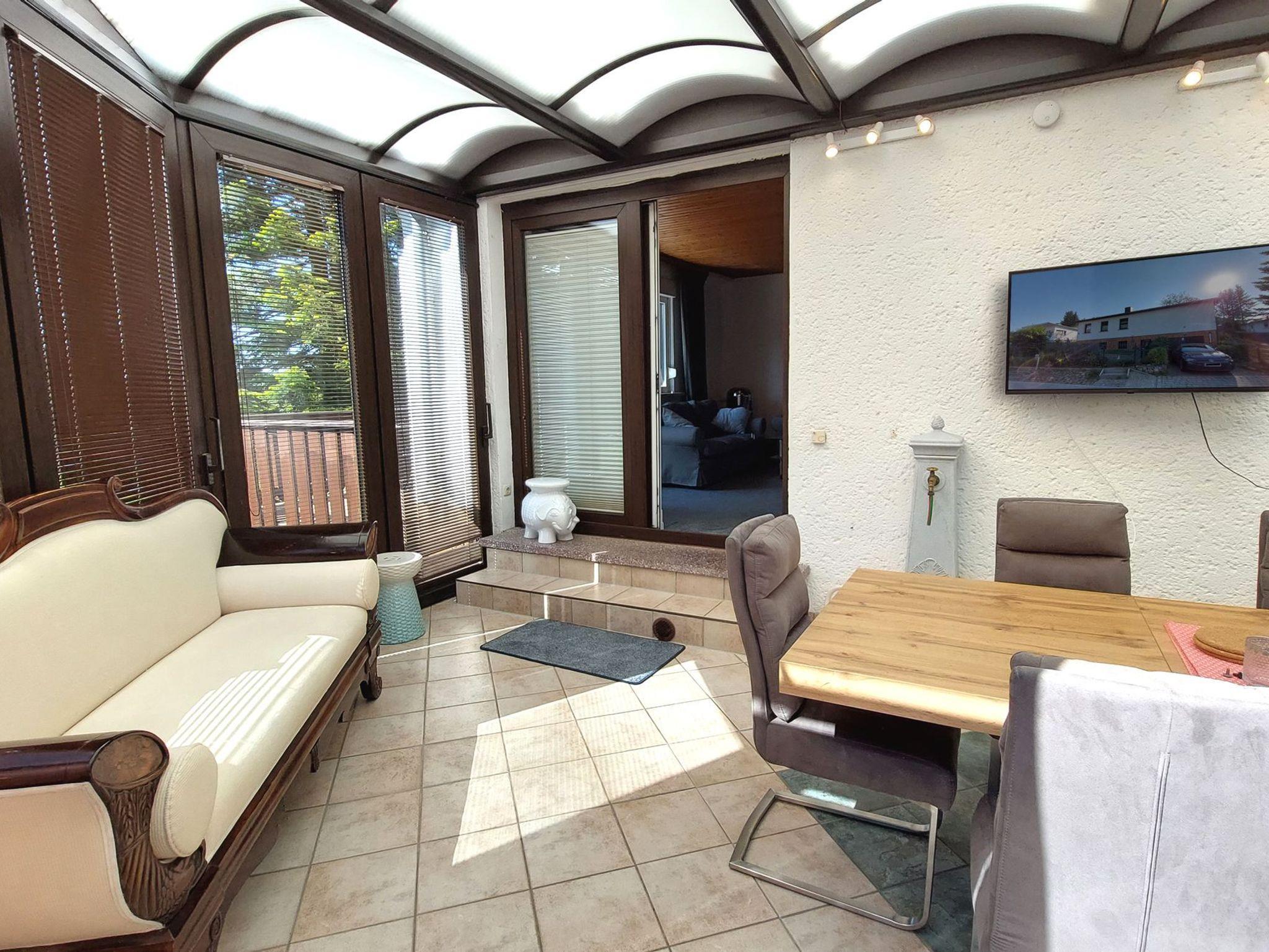 Diese gemütliche und großzügige 3-Raumwohnung 90808 David erwartet Sie mit ca. 125 qm und bietet viel Platz für bis zu 6 Personen. Es erwartet Sie nicht nur ein Wintergarten mit Kamin für behagliche Stunden, sondern auch eine hauseigene Sauna sowie ein eingezäuntes Grundstück für eine private Atmosphäre während des Aufenthaltes. Die Wohnung liegt im Erdgeschoß und teilt sich auf in einen Flur mit Garderobe, von dem Sie alle Räume gut erreichen, ein Wohnzimmer mit angrenzendem Wintergarten, Balkon sowie Terrasse, eine separate Küche, Tageslichtbad sowie zwei Schlafzimmer. Im behaglichen Wohnraum erwartet Sie eine Sitzecke, ein Kojenbett als Schlafmöglichkeit für eine 5. und 6. Person sowie großem Flachbild-TV und WLAN. Die separate Küche verfügt über ein Cerankochfeld mit Backofen, Geschirrspüler, einen Kühlschrank, ein Gefrierfach, Kaffeemaschine, Mikrowelle und Wasserkocher. Im Badezimmer finden Sie eine Dusche, Doppelwaschtisch, eine Waschmaschine sowie WC. Beide Schlafzimmer sind mit einem Doppelbett, Kleiderschrank und zusätzlichem TV ausgestattet und verfügen zudem über Jalousien für eine angenehme Nachtruhe. Im, an zweite Schlafzimmer angrenzenden, Wintergarten können Sie nicht nur gemeinsam speisen, auch gemütliche Stunden durch den Kamin erleben. Ein PKW-Stellplatz steht Ihnen direkt am Haus zur Verfügung.