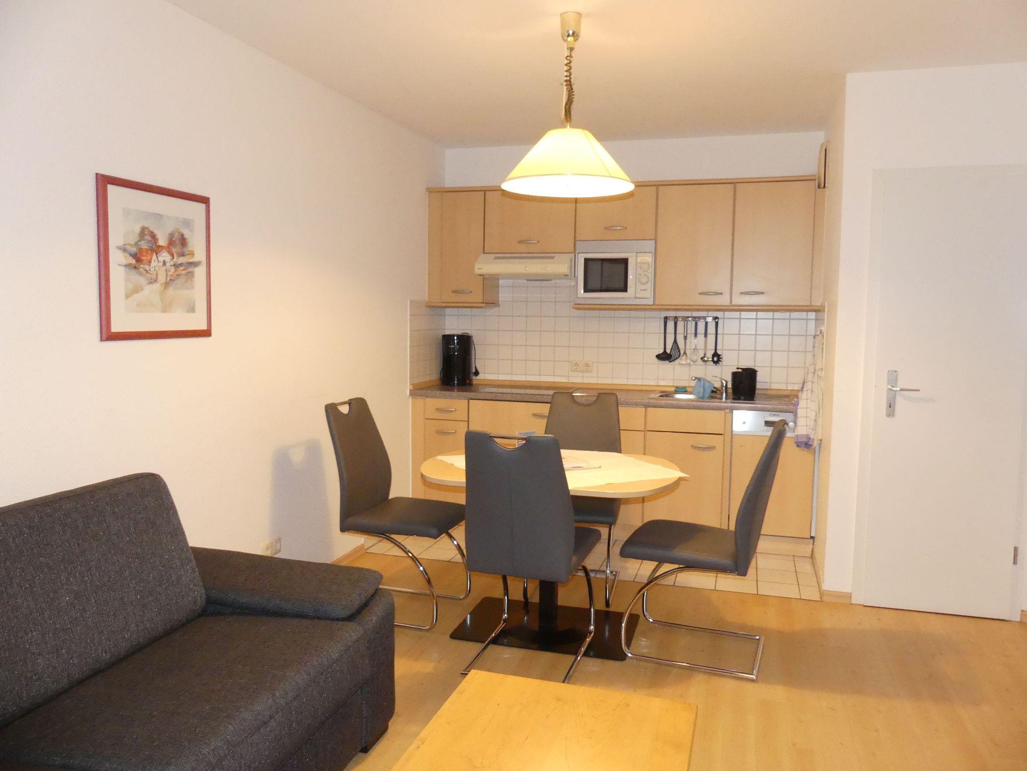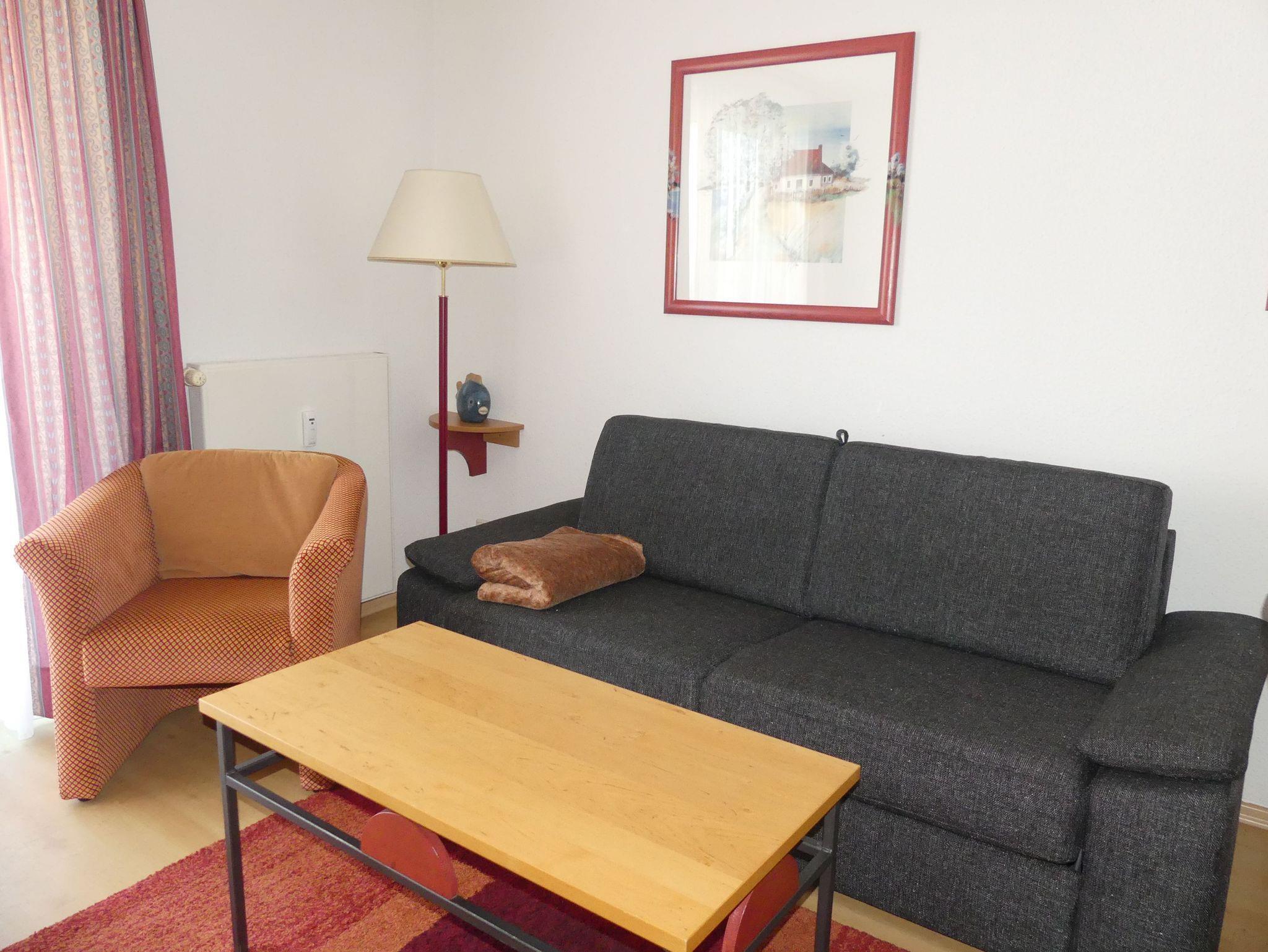 Wohnzimmer: Couchgarnitur (Schlafgelegenheit für 2 Personen), Kabel-TV, Stereoanlage, Internetanschluss (WLAN), Esstisch