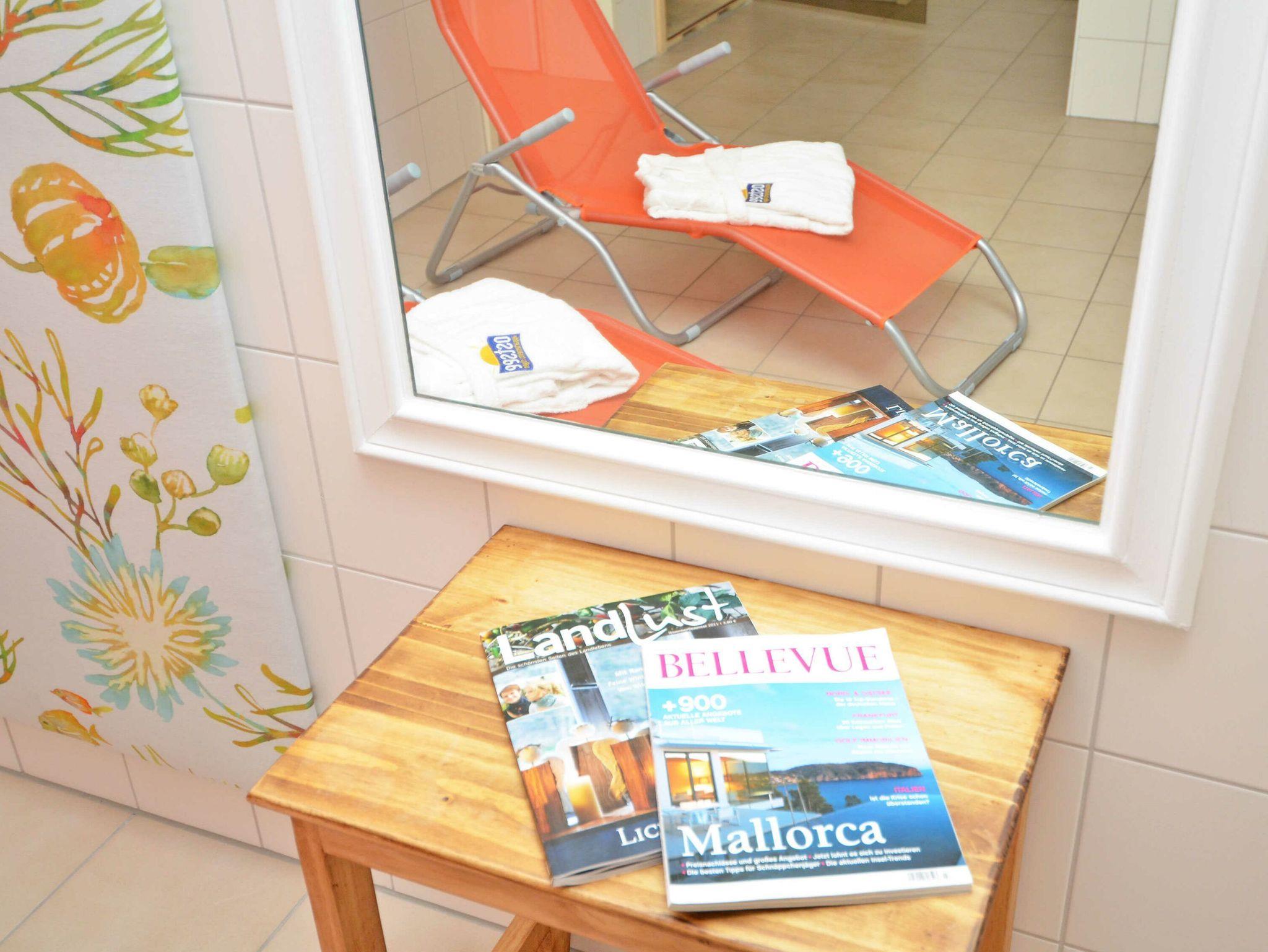 Für Ihren PKW ist in der hauseigenen Tiefgarage ein Stellplatz kostenfrei reserviert. Im Kellergeschoss der Dünenresidenz „Königin Augusta“ stehen darüber hinaus allen Hausgästen gemeinschaftlich gegen geringe Gebühr eine Sauna sowie eine Waschmaschine zur Verfügung.