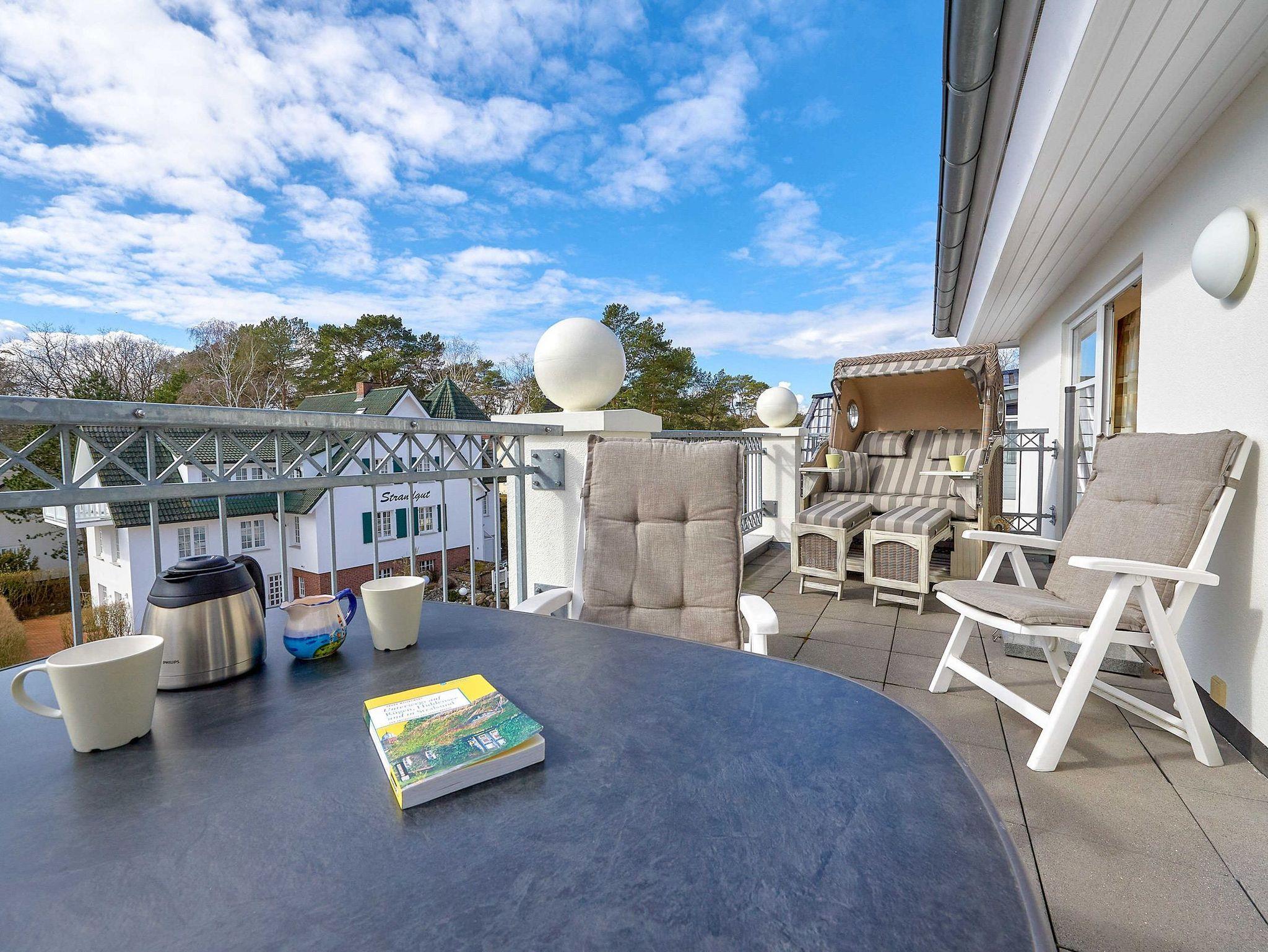 Frühstücken oder Abendessen draußen auf dem Balkon? Kein Problem ? die passenden Sitzmöbel nebst großem Tisch und Sonnenschirm und sogar ein eigener Luxus-Strandkorb zum Einkuscheln warten auf Sie! Die Sonne haben Sie vom Mittag bis in die Abendstunden hinein zu Gast.