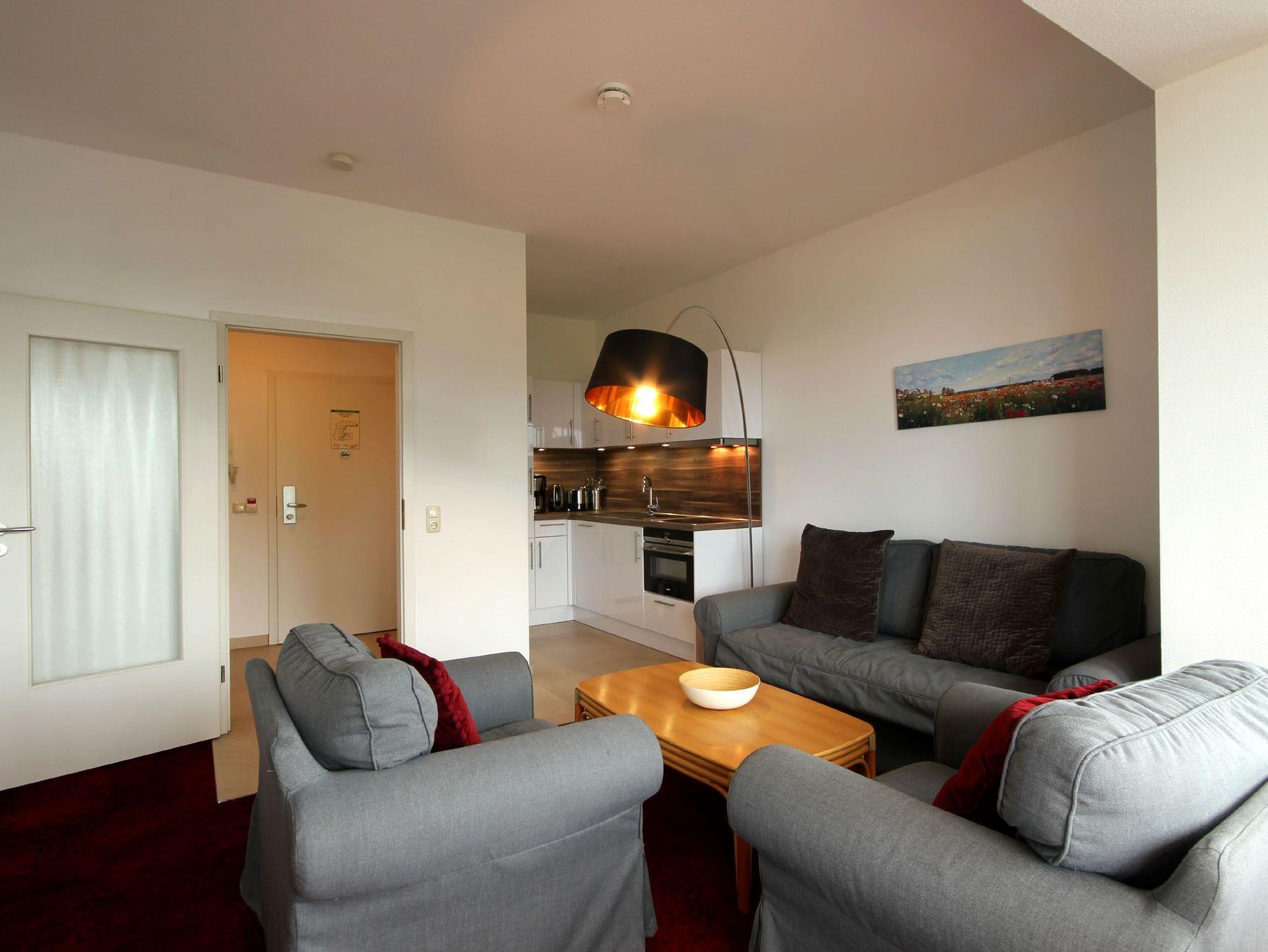 Ihre 2-Zimmer Ferienwohnung 225RB24 befindet sich im 2. Obergeschoss, ist ca. 55 qm groß und für bis zu 4 Personen gut geeignet. Neben dem gemütlichen Wohnbereich mit Schlafsofa, auf dem die 3. und 4. Person gut schlafen können, gehört ein Essbereich, Flachbild TV sowie WLAN zur Nichtraucherwohnung. Im Schlafzimmer erwartet Sie ein Doppelbett, ein zusätzlicher TV sowie eine gemütliche Leseecke. Vom Wohn- und Schlafbereich genießen Sie einen seitlichen Blick auf die Strandpromenade sowie auf die Binzer Bucht. Ebenfalls können Sie eine voll ausgestattete integrierte Küchenzeile mit Geschirrspüler, Nespresso-Maschine, Backofen, Mikrowelle, Wasserkocher, Toaster und Kaffeemaschine nutzen. Das Badezimmer erwartet Sie mit Waschtisch, WC und Dusche. Haustiere sind herzlich willkommen.