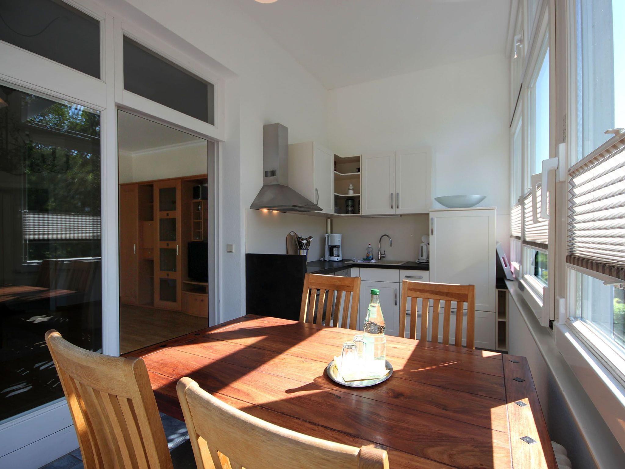 Die schöne 3 - Raum Wohnung hat eine Größe von ca. 84 qm. Neben dem Wohnraum gibt es 2 separate vollwertige Schlafräume, eine separate Küche und ein Tageslichtbad mit Waschtisch, Dusche, Handtuchtrockner und WC. Die Küche im Wintergarten ist mit Essplatz und Küchenzeile komplett ausgestattet. Im 1. und 2. Schlafraum befindet sich jeweils ein bequemes Boxspringbett und ein Kleiderschrank. Über den ersten Schlafbereich ist der Wintergarten zugänglich, welcher mit Schlafsofa sowie einer Leseecke ausgestattet ist. Dort kann bei Bedarf eine weitere Personen schlafen. Die Kochzeile verfügt über einen Kühlschrank, Backofen, Geschirrspüler und diverse Kleingeräte.