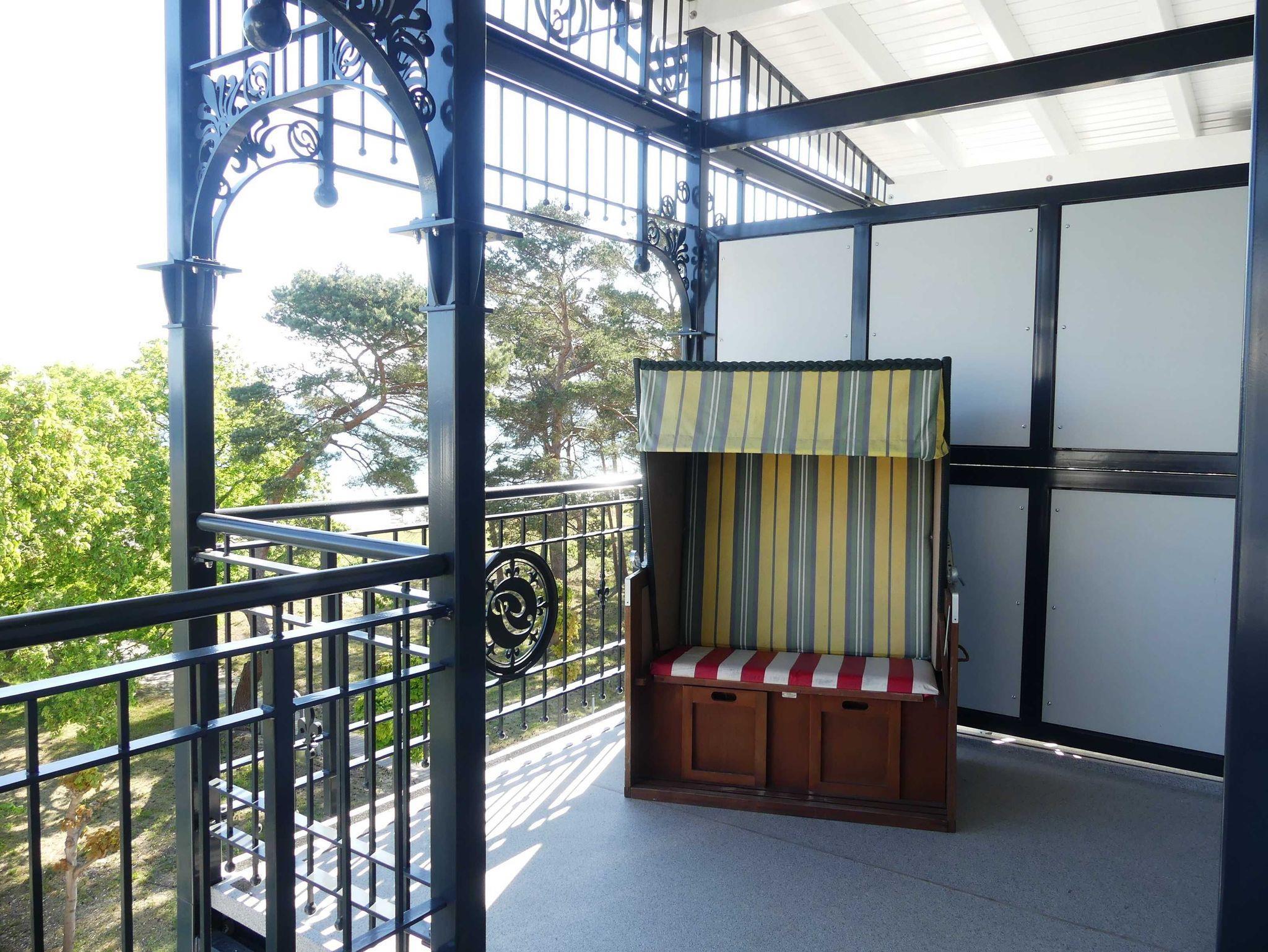 Balkon mit wunderschönen Ostseeblick, Balkonmöbeln und einem Strandkorb