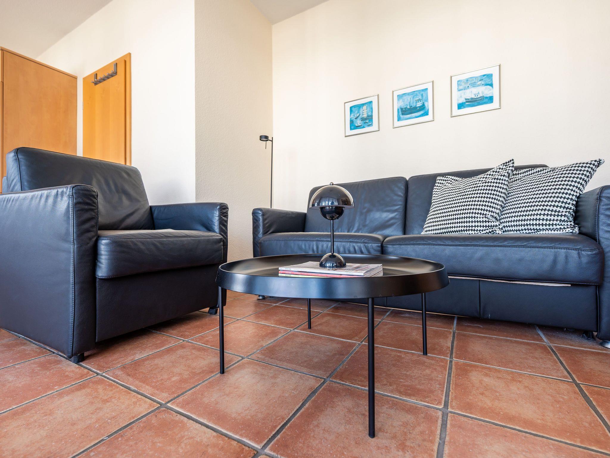 • Wohnzimmer : Bettsofa, Sessel, Tisch, Fernseher (Kabel), Internetanschluss (lan und wlan)