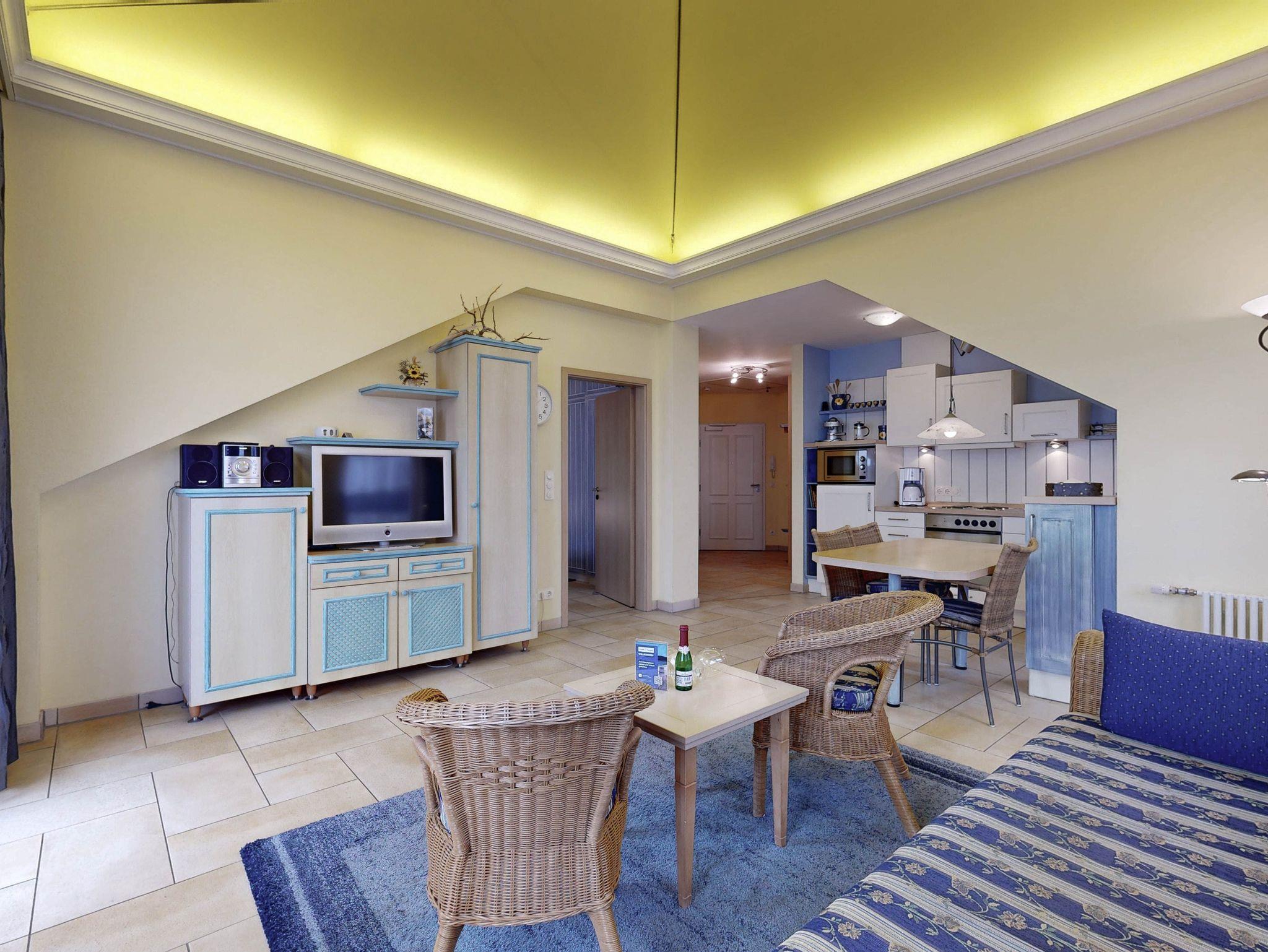 ? Wohnzimmer: Couchgarnitur, Fernseher und Radio, W-LAN-Internetanschluss