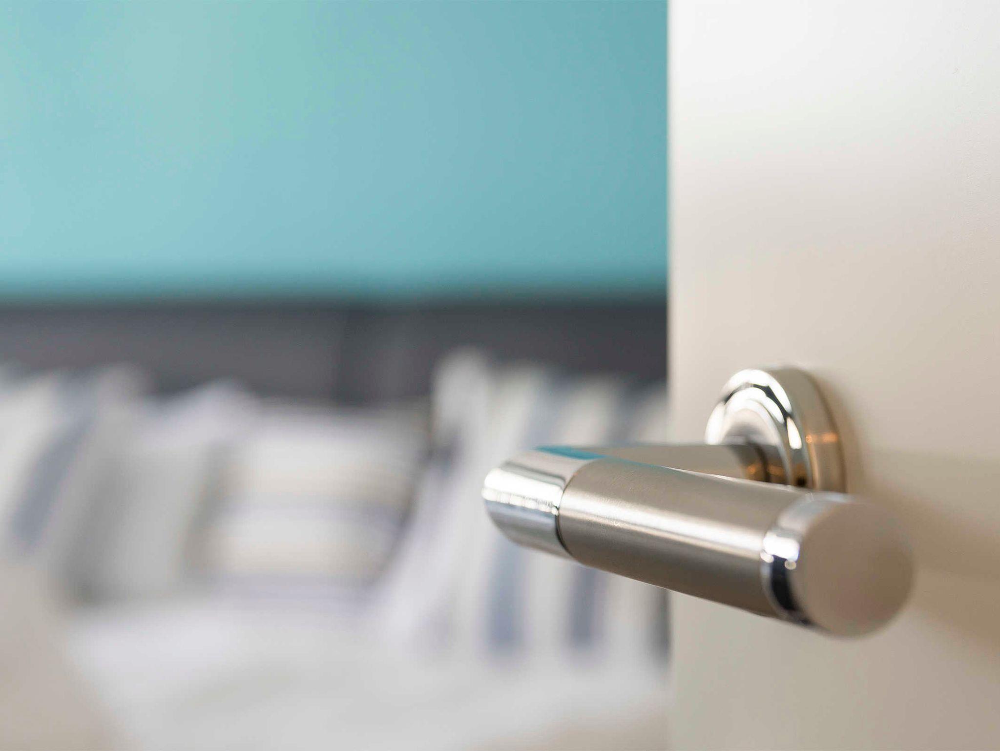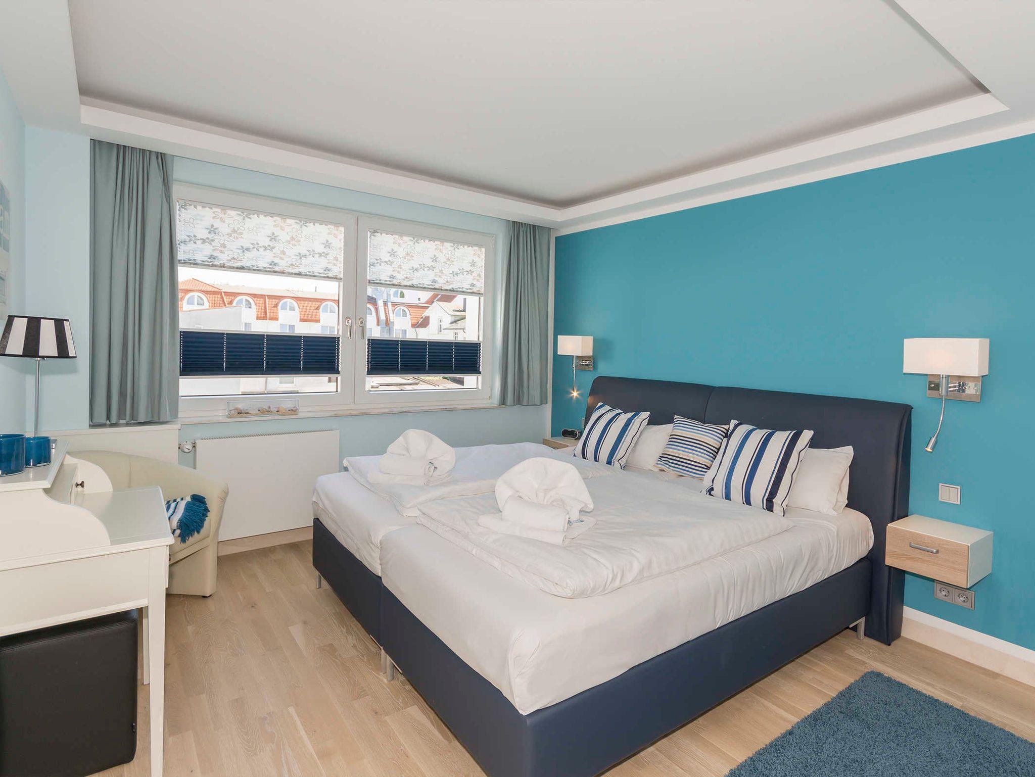 In den separaten, geschmackvoll gestalteten Schlafzimmern befinden sich je ein Boxspringbett ( 2x90 cm x 2,00 m und 2x 1,00 m x2,00m) mit Nachtkonsolen und ausreichend Stauschränken nach Maß.