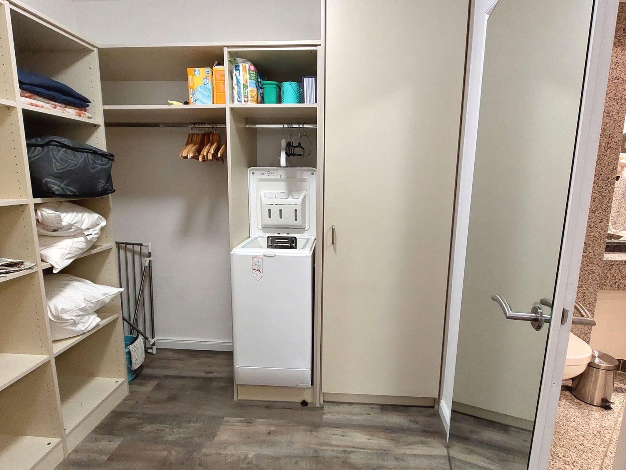 Es gibt einen großen Ankleideraum mit zusätzlicher Garderobe, Kleiderschrank und viel Stauraum für Ihr Gepäck.
