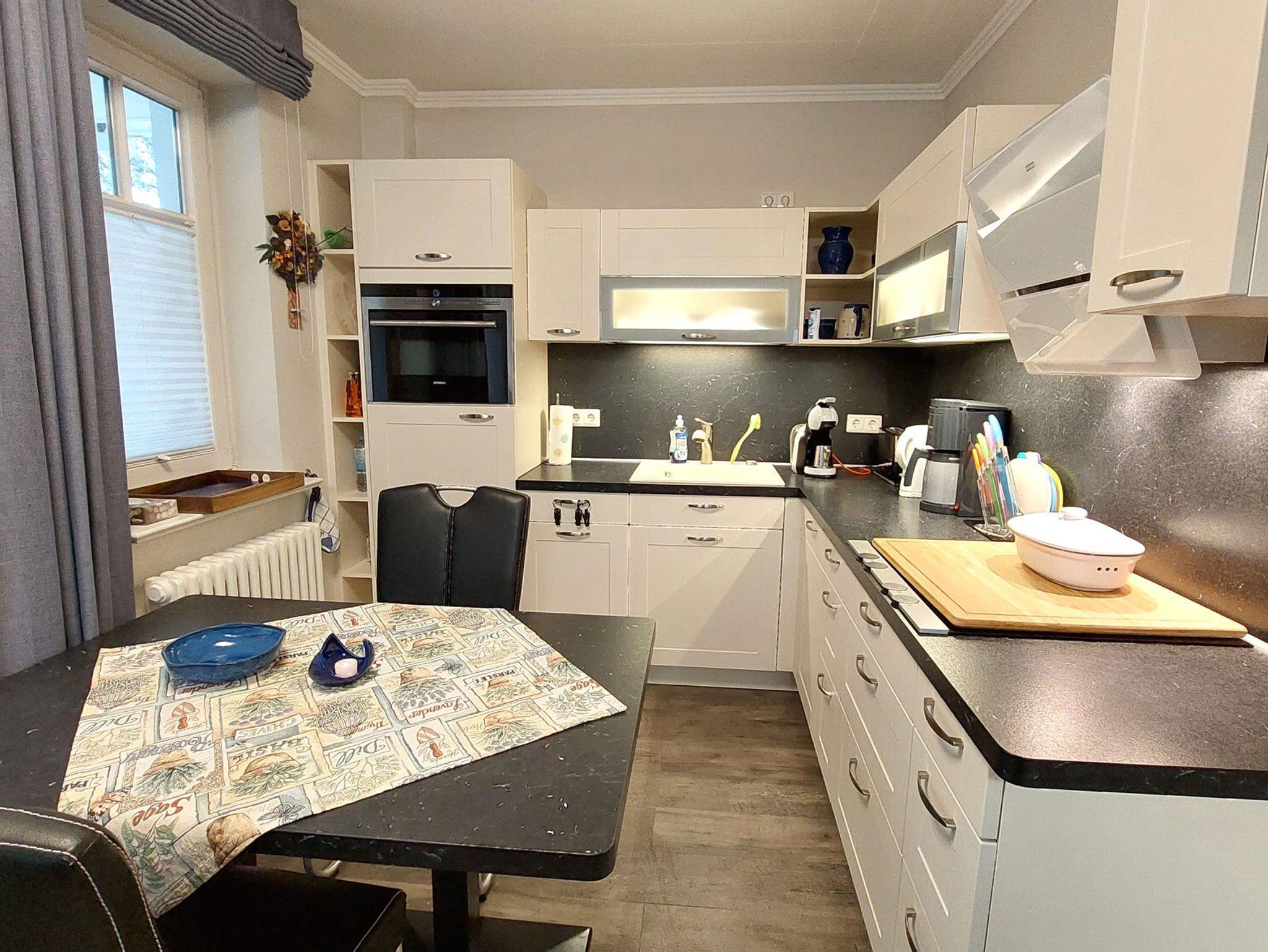 Angrenzend finden Sie den offenen Koch- und Essbereich, welcher auch im Urlaub zum Kochen einlädt. Die Küchenzeile ist ausgestattet mit Cerankochfeld, Backofen, Geschirrspüler, Kühlschrank mit Gefrierfach sowie vielen nützlichen Küchenhelfern.