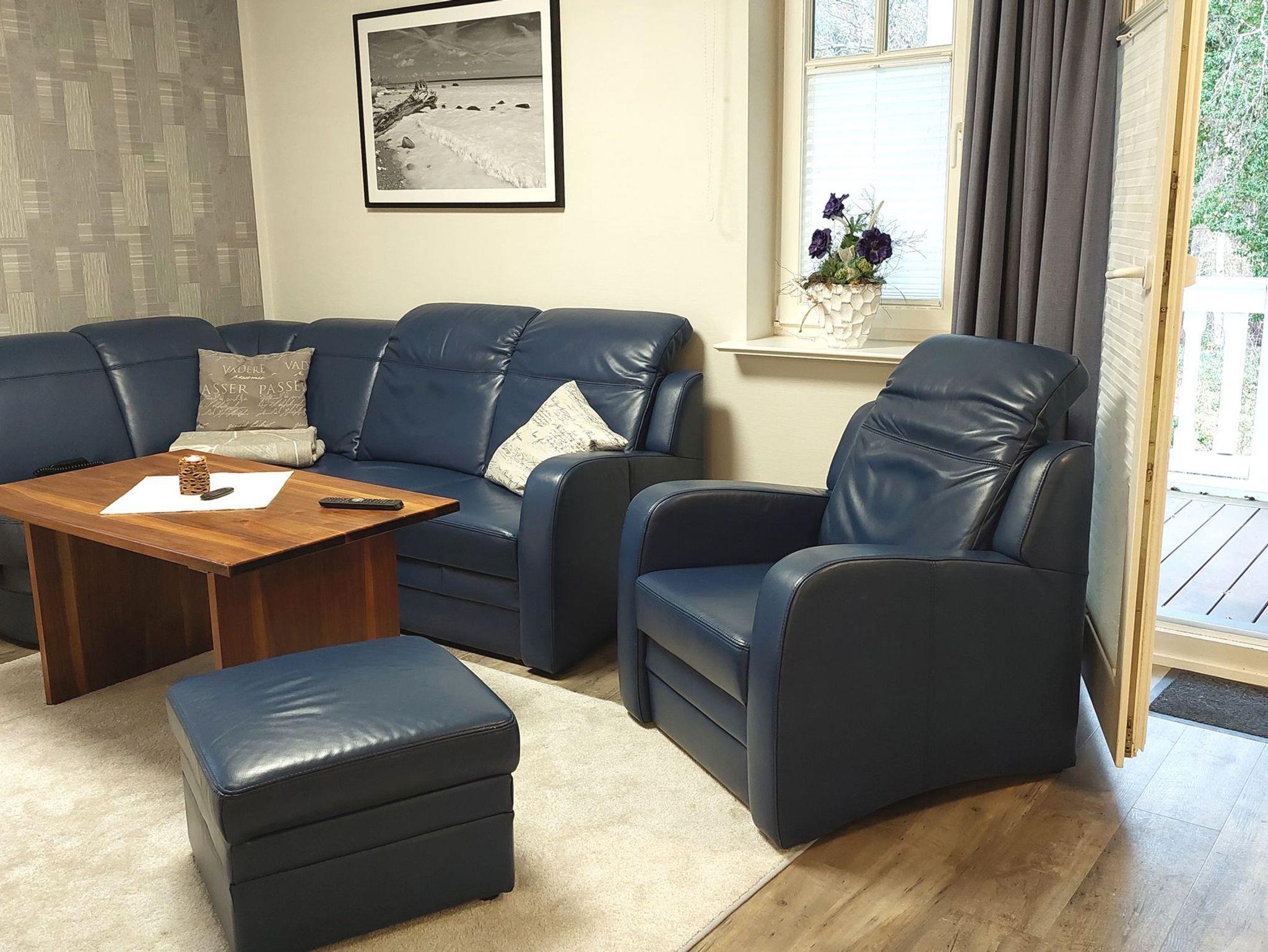 Im großzügigem und hellen Wohnbereich befindet Sie eine gemütliche Sitzlandschaft mit Smart-TV samt Soundbar.