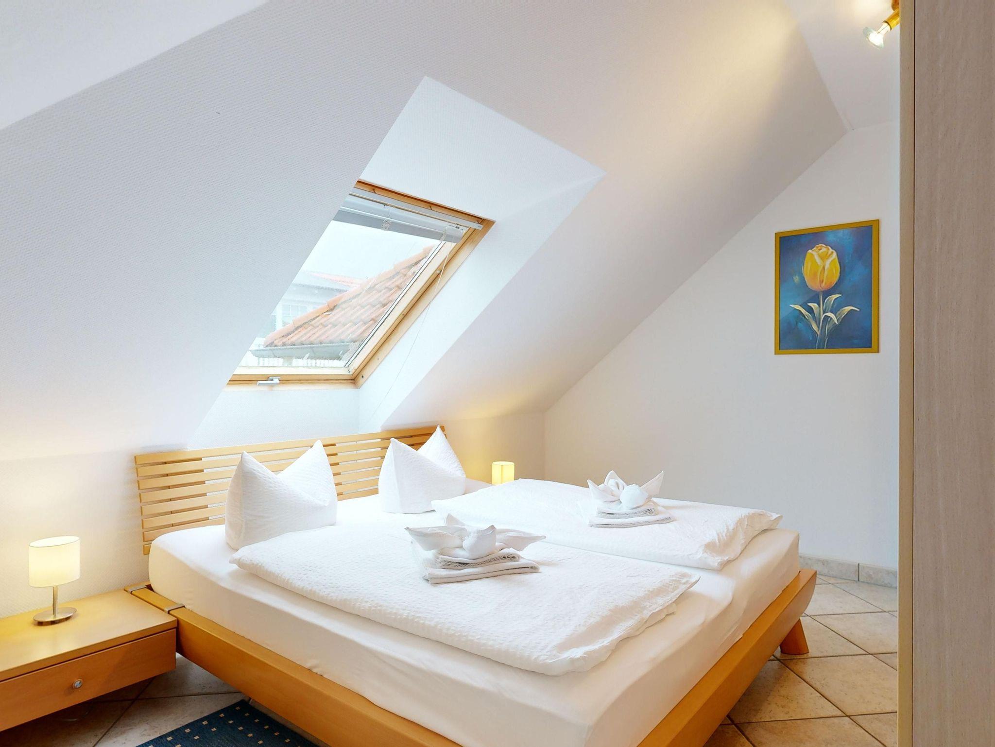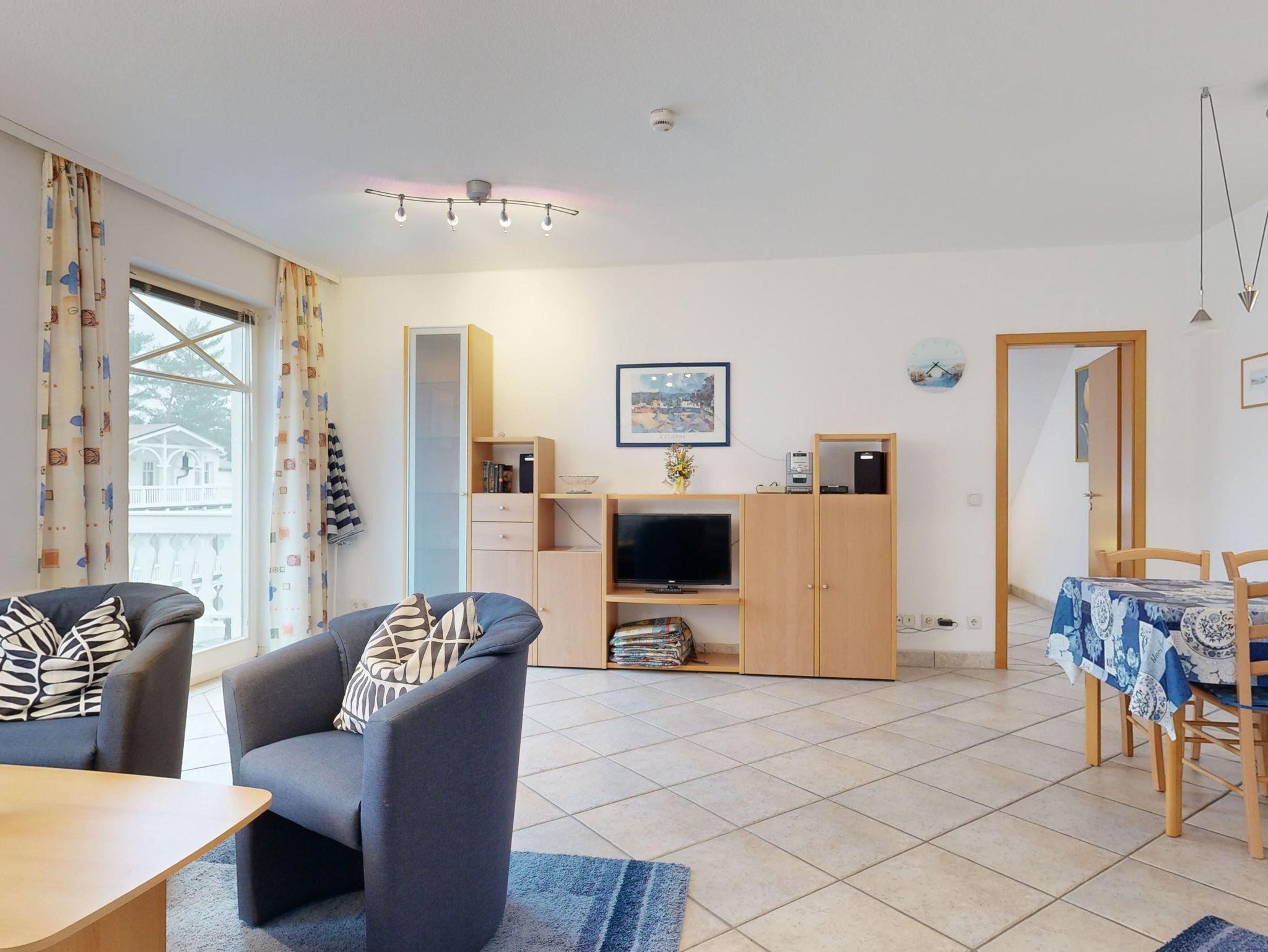 Schöne Komfort-Ferienwohnung in der Villa Strandburg im 2. OG (2 Zimmer / 60 m²) mit 1 Schlafzimmer, WLAN-Internetanschluss und großem Südbalkon. Strandnah