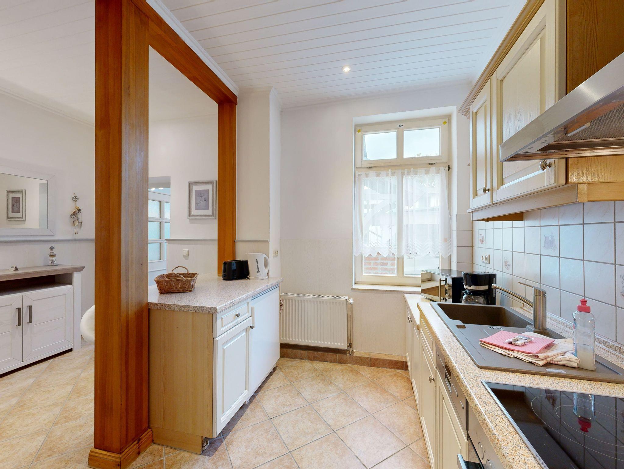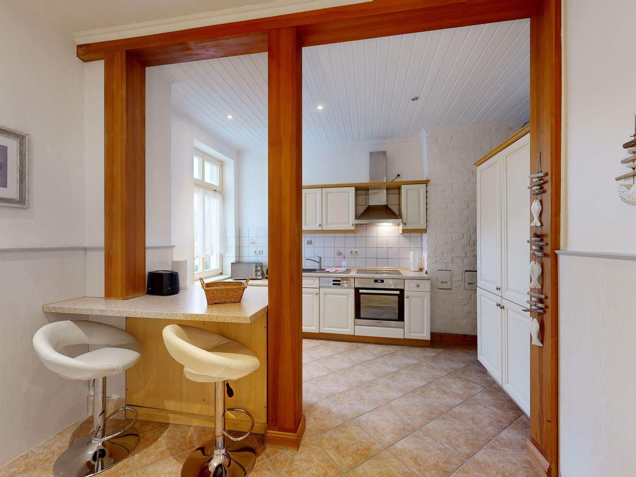 Küche: Moderne Küchenzeile, Ceran-Herd mit Backofen, Spülmaschine, Mikrowelle, Toaster, Wasserkocher, Kaffeemaschine, Essplatz
