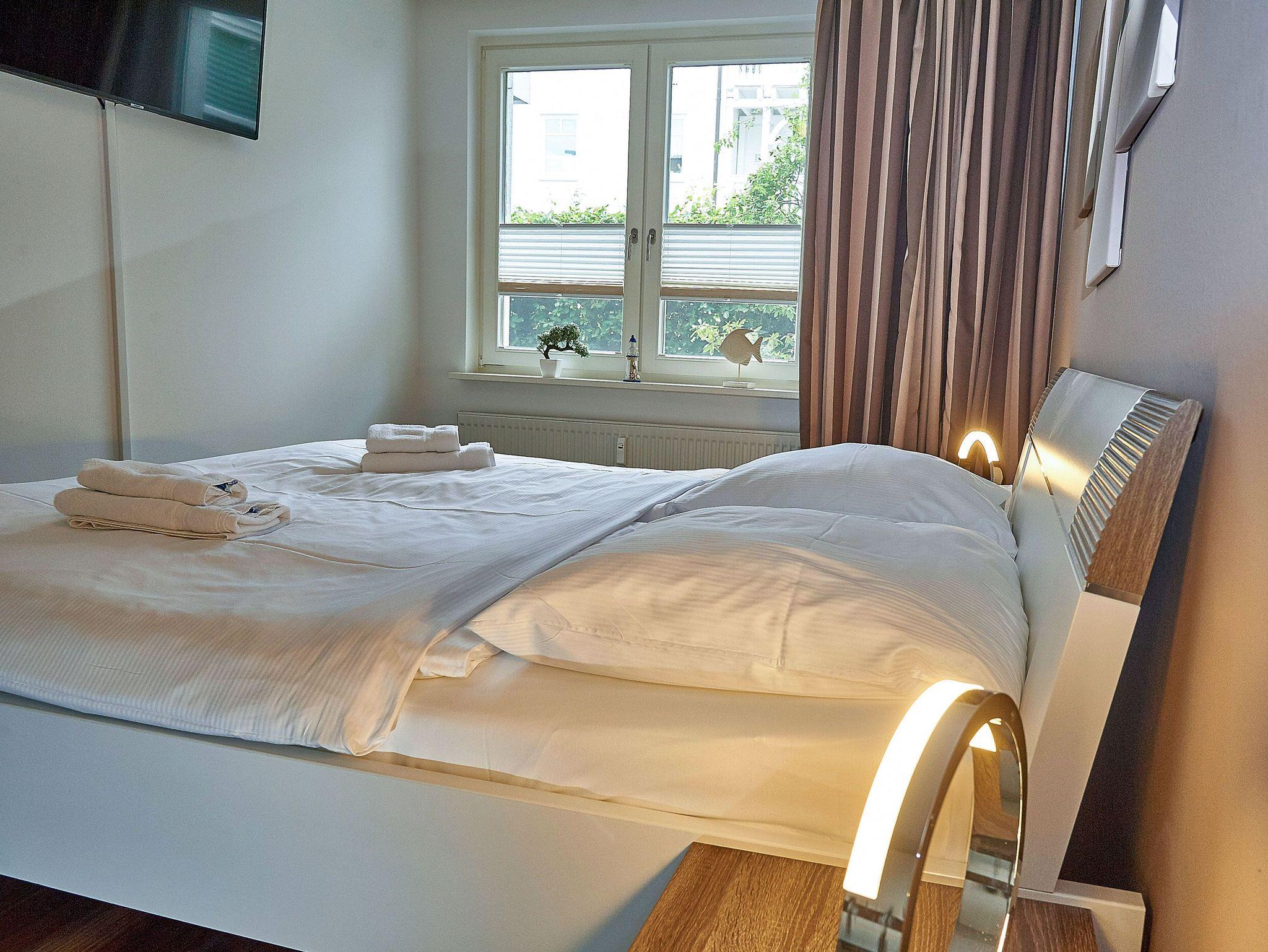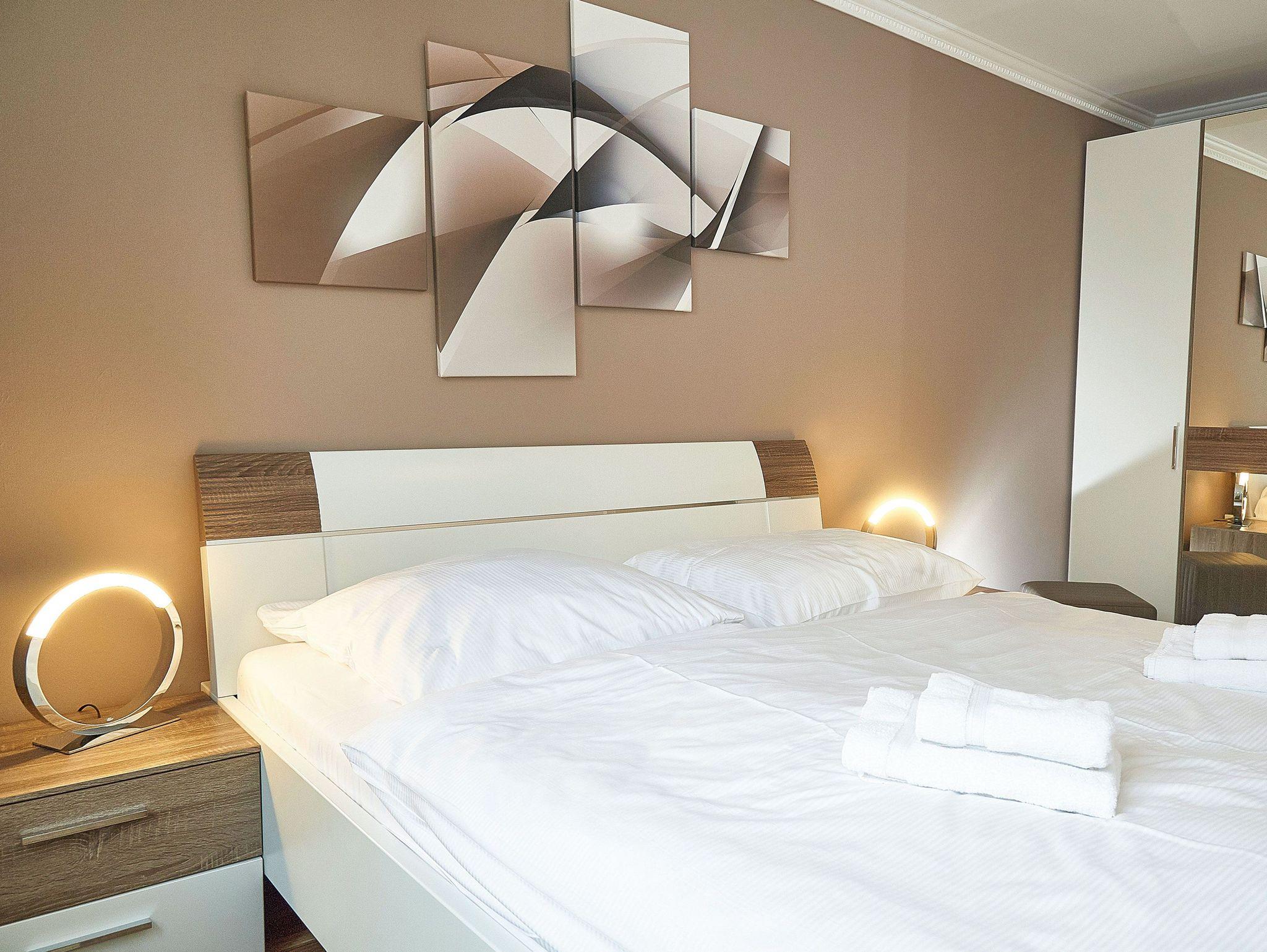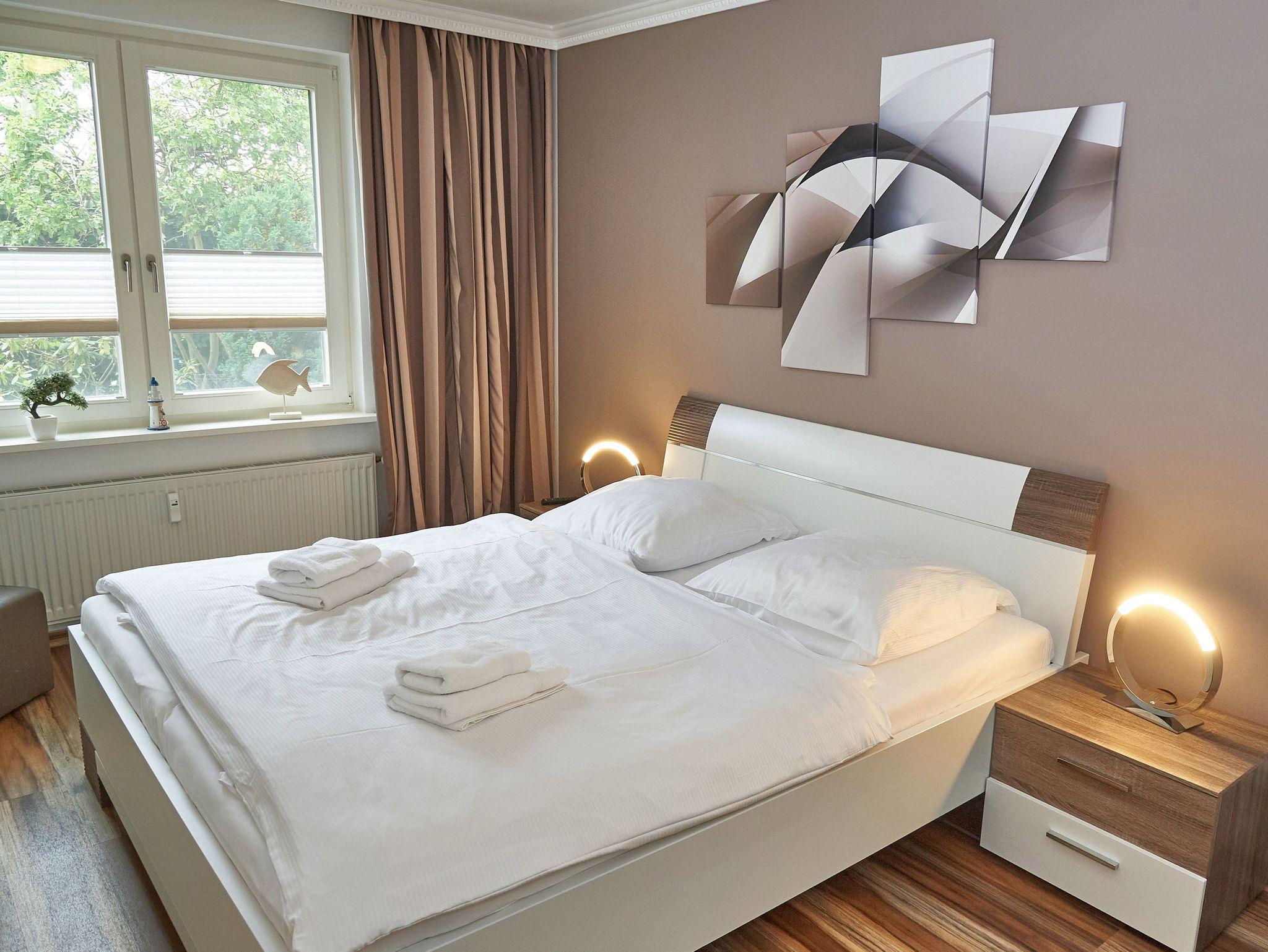 Im Schlafzimmer befinden sich ein Doppelbett (2 x 90 x 200 cm), ein großer Kleiderschrank und ein zusätzlicher Flachbild-TV.