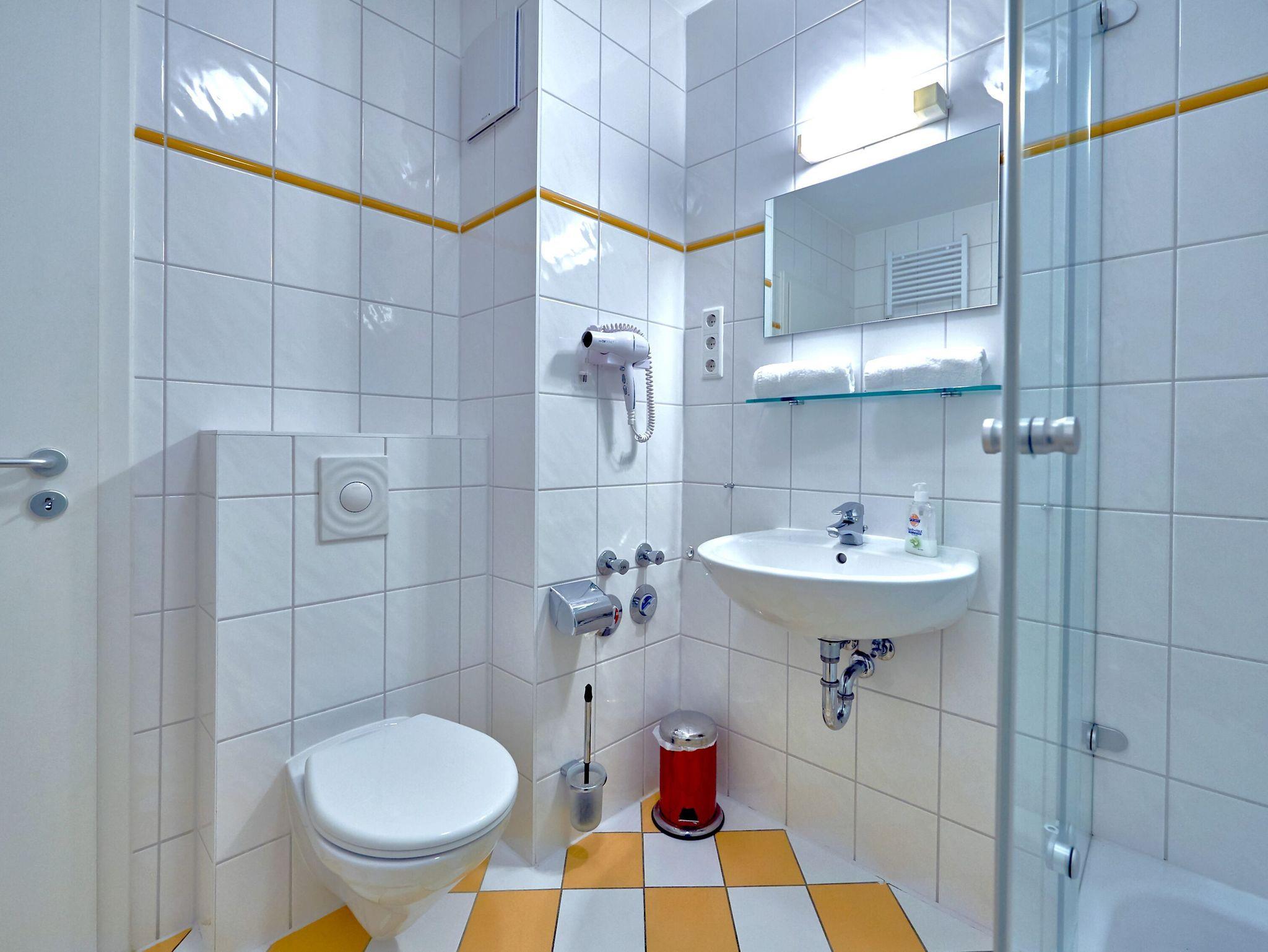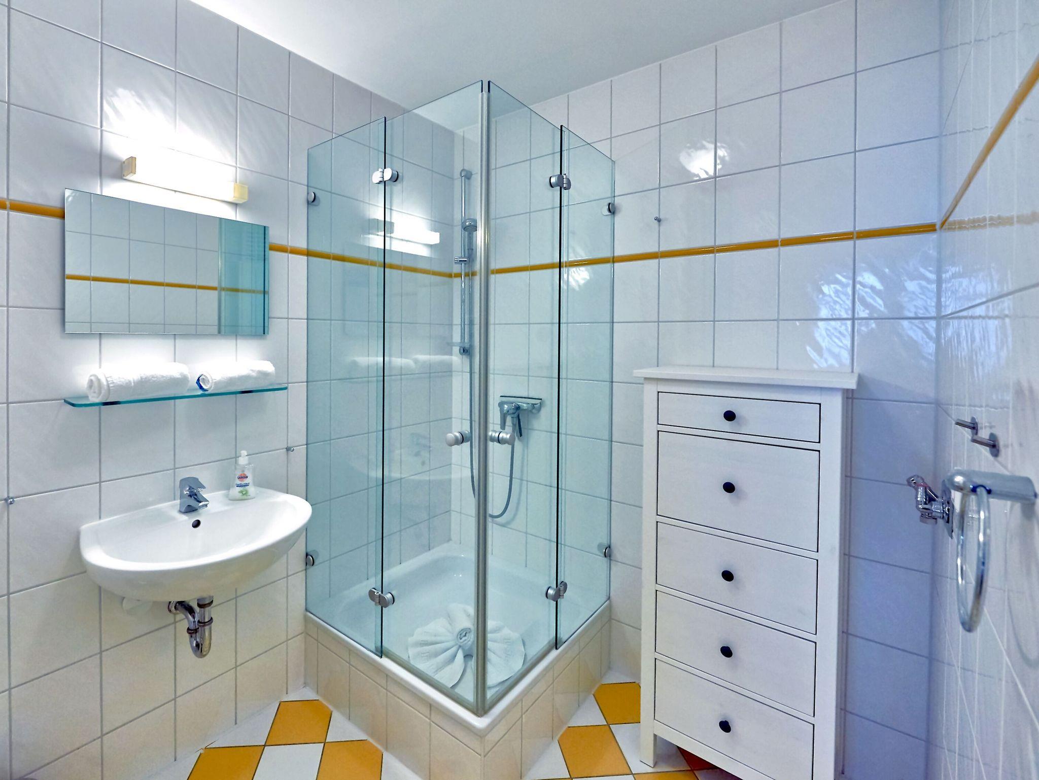 Auch das Badezimmer weiß zu überzeugen. Hier finden Sie eine Dusche/WC, ein Waschbecken mit Spiegel und Fön sowie einen Wandheizkörper, auf dem sich die Handtücher kuschelig anwärmen lassen.