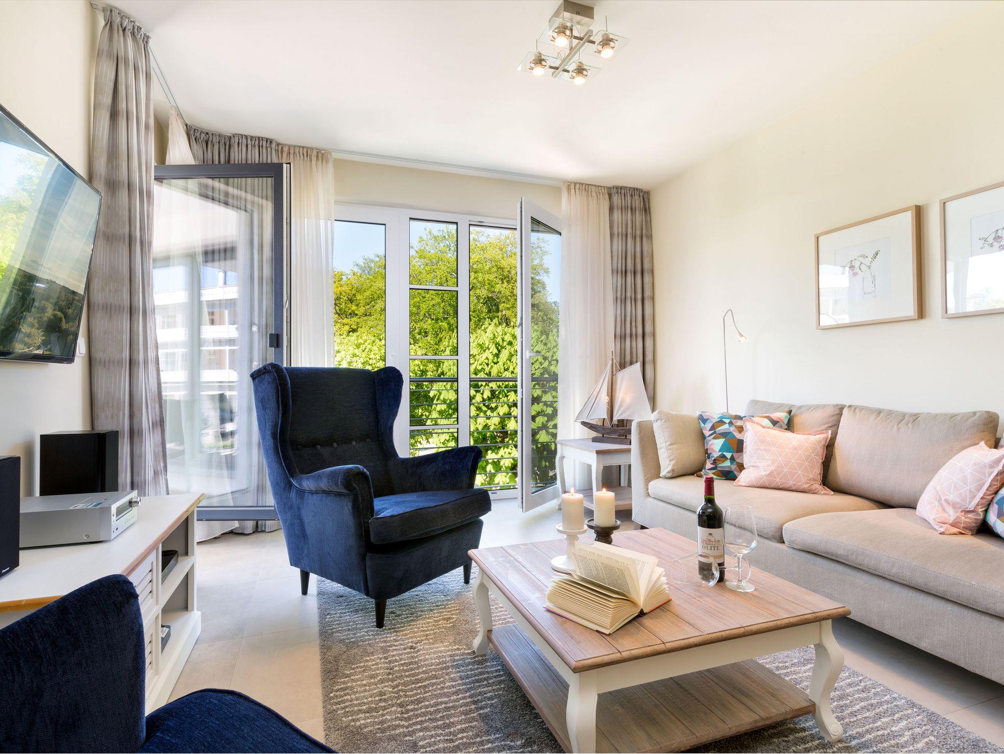 Modernes 3-Zimmer-Apartment in Binz nahe Ostseestrand und Kurpark mit Balkon und WLAN.