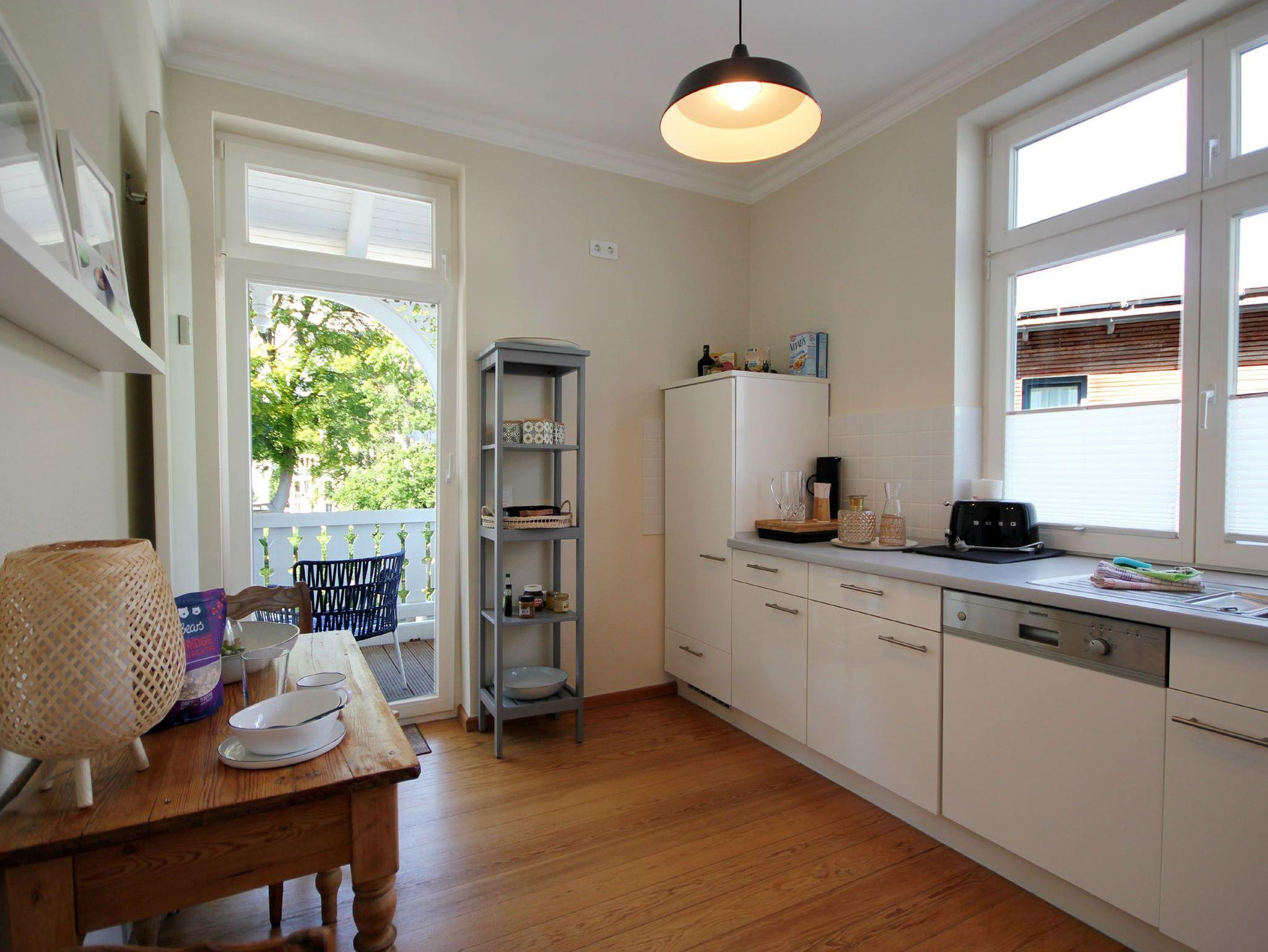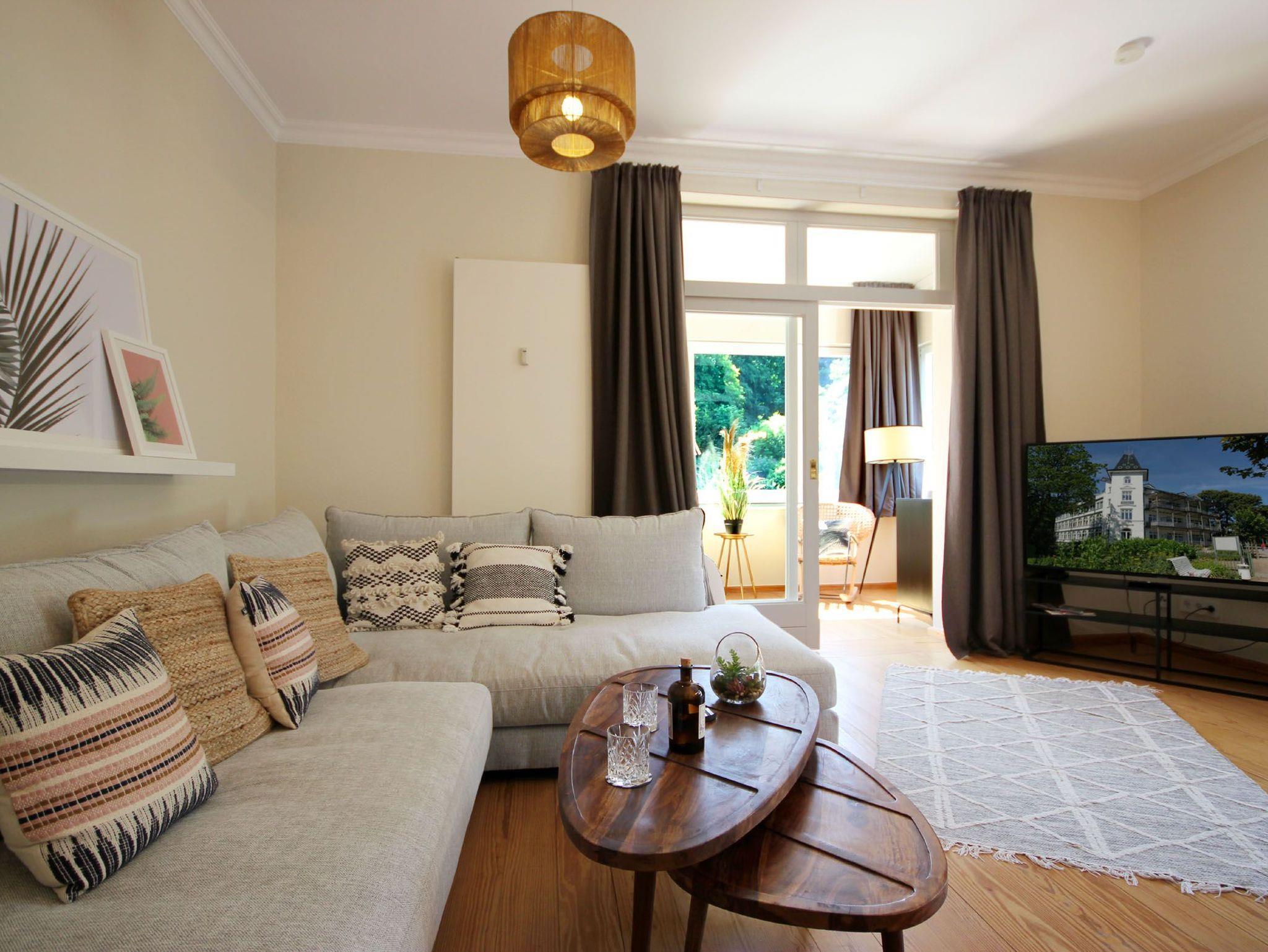 Stilvolle 4-Raumwohnung mit großem Süd-Balkon und kostenlosem Strandkorb in Binz, nur 20 m vom Strand entfernt.