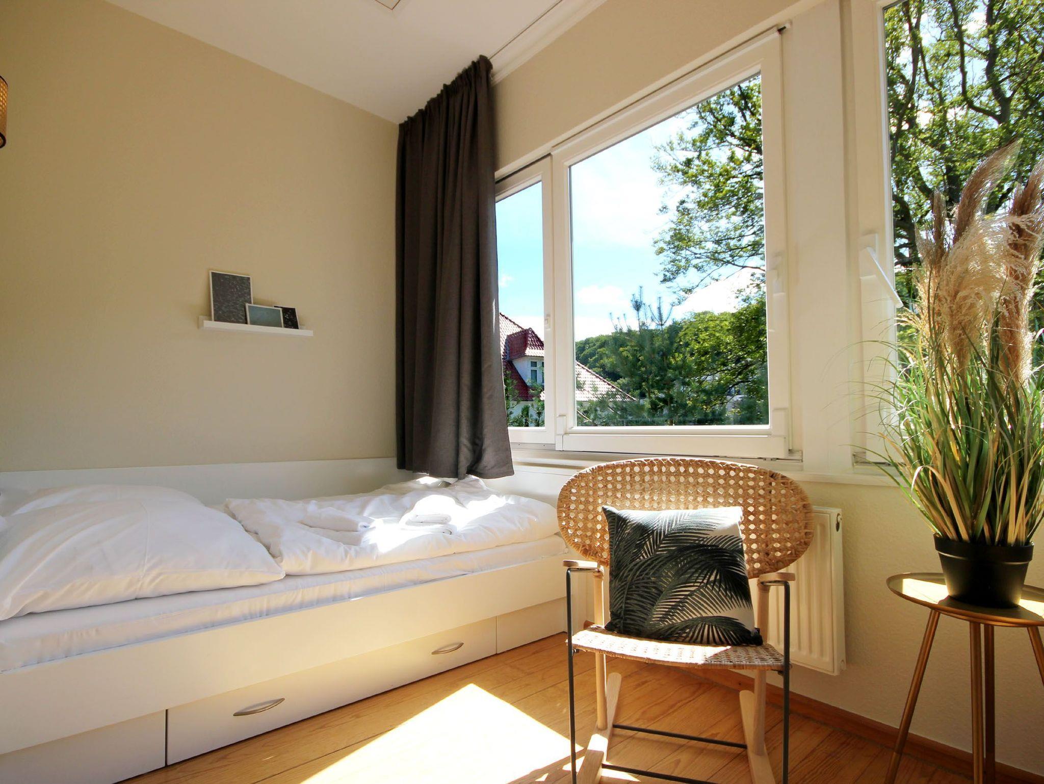 Ihre stilvoll und mit Liebe zum Details eingerichtete 4-Raumwohnung 40RB35 Florence liegt im 2. Obergeschoss der Villa. Dieses Nichtraucher-Appartement besticht durch seine harmonische Ausstattung, hervorragende Lage sowie seinen großem und möblierten Süd-Balkon. Diese attraktive Wohnung verfügt über eine Wohnfläche von ca. 95 qm. Neben dem Wohnraum gibt es 3 Schlafräume, eine separate Küche mit zusätzlichem Zugang zum Balkon und ein Tageslichtbad mit Waschtisch, Dusche und WC. Der exklusive Wohnraum mit SMART-TV und WLAN begrüßt Sie neben dem gemütlichen Sofa mit einem separaten Essplatz, welcher ausreichend Platz für bis zu 6 Personen bietet. Im Hauptschlafzimmer befindet sich ein gemütliches Doppelbett sowie ein großzügiger Kleiderschrank. Der 2. Schlafbereich im angrenzenden Wintergarten vom Hauptschlafraum erwartet Sie mit zwei Einzelbetten. Die 3. Schlafmöglichkeit finden Sie anliegend am Wohnbereich mit einem französischen Doppelbett. Alle Schlafbereiche verfügen über Verdunklungsstoffe für einen erholsamen Schlaf. Die Küchenzeile ist komplett mit Kühlschrank, Geschirrspüler, Backofen, Cerankochfeld, diversen Kleingeräten und ausreichend Küchengeschirr ausgestattet. Für unsere kleinen Gäste steht ein Hochstuhl sowie Kinderreisebett zur Verfügung.