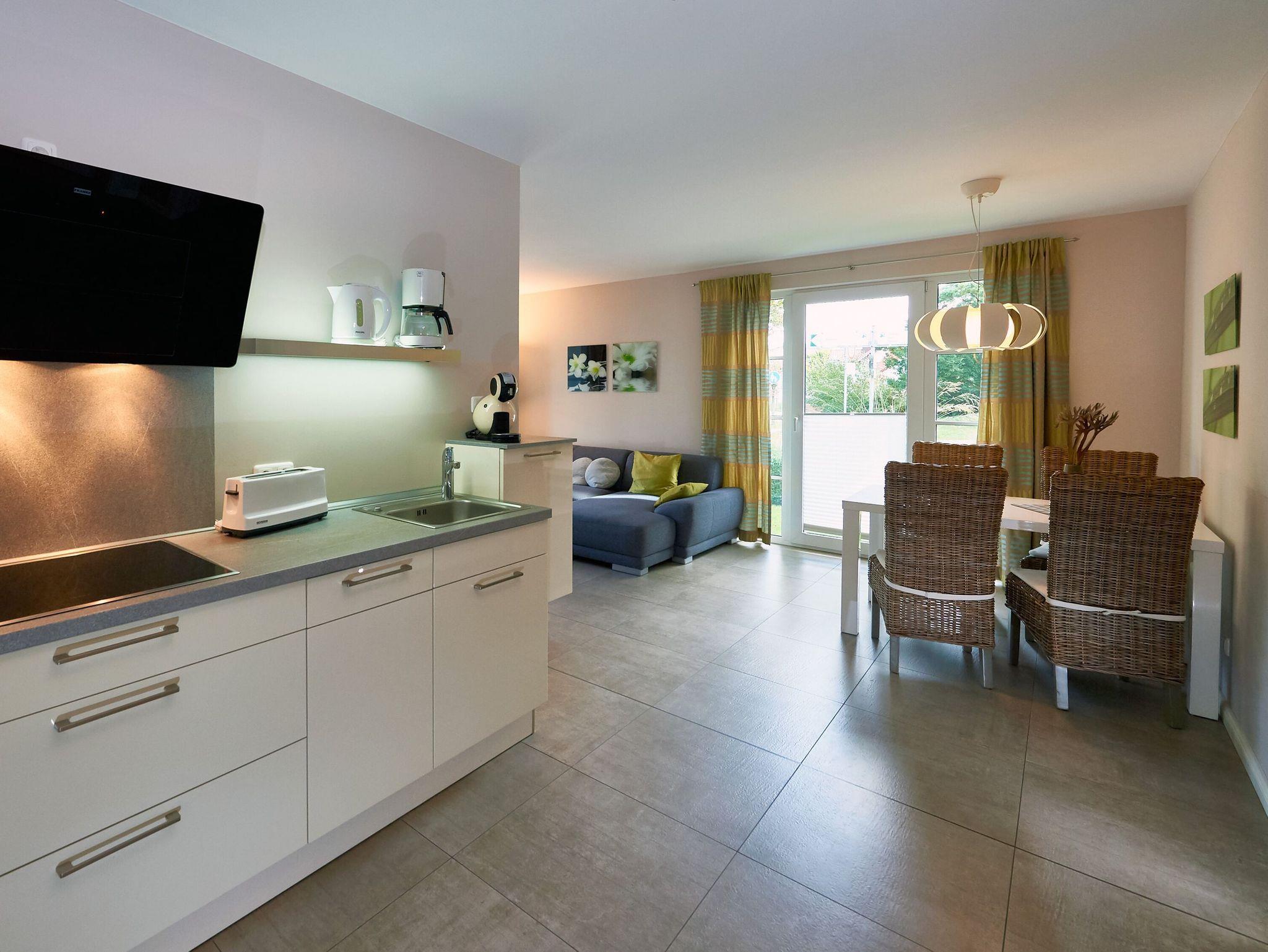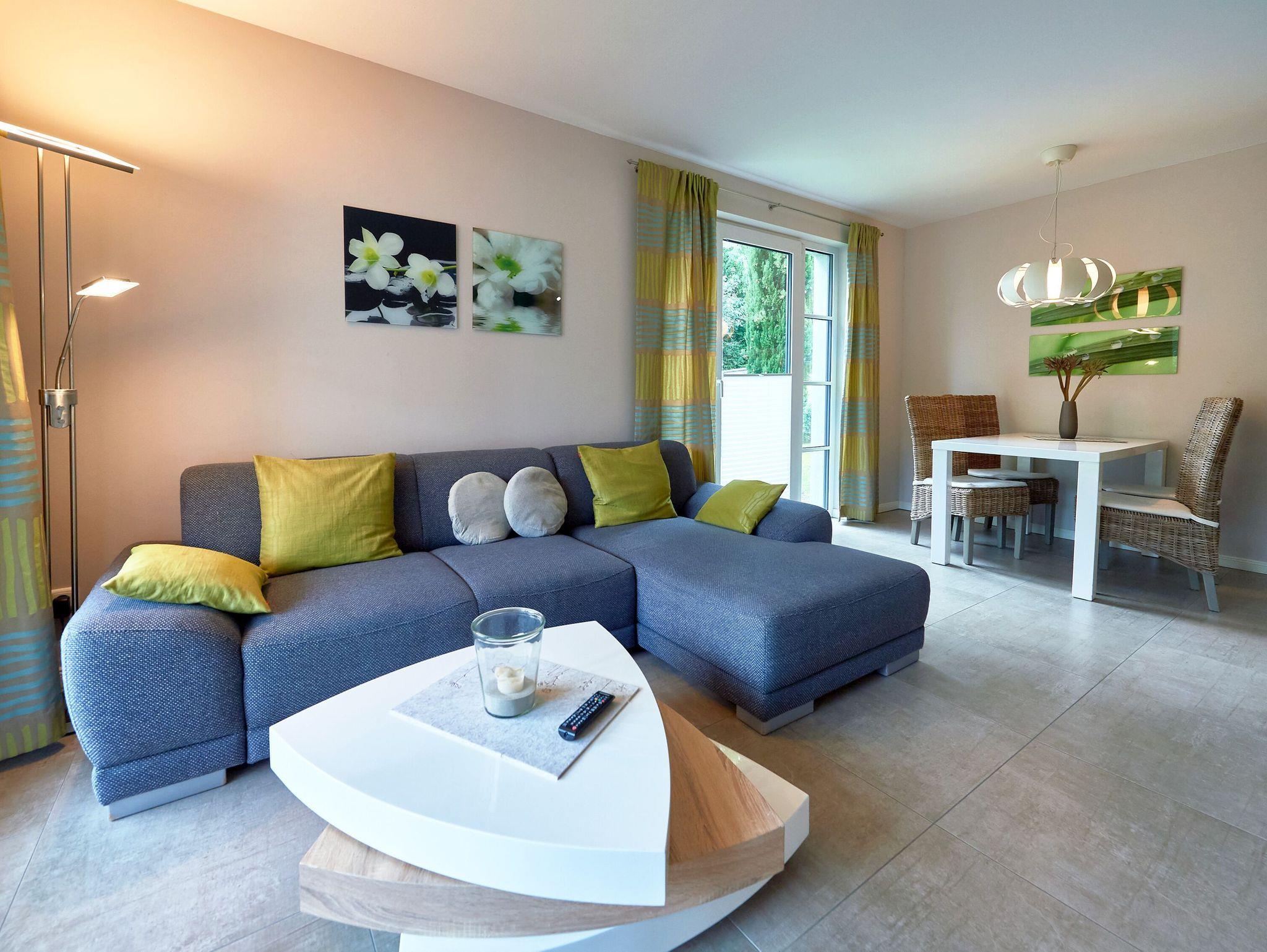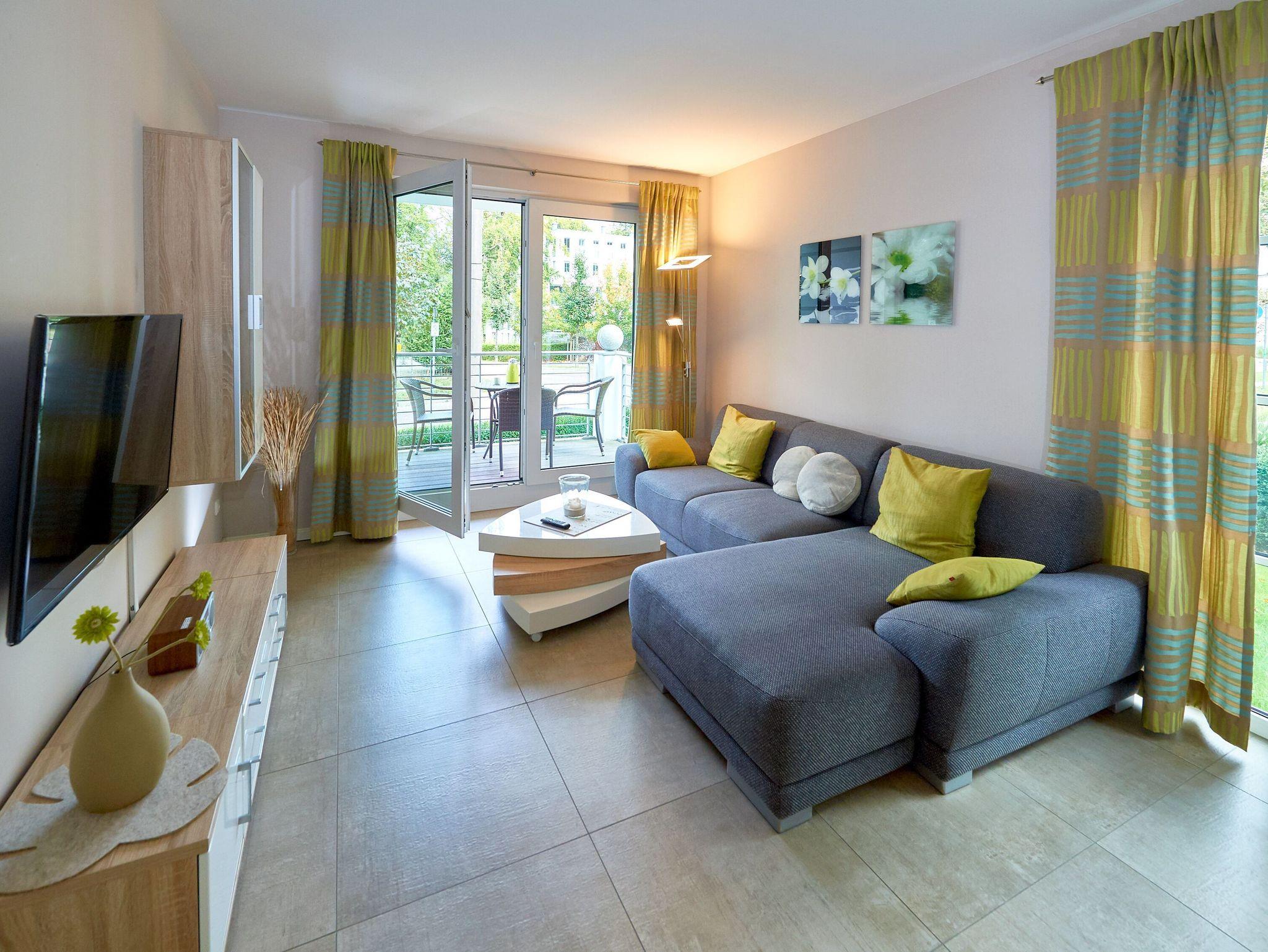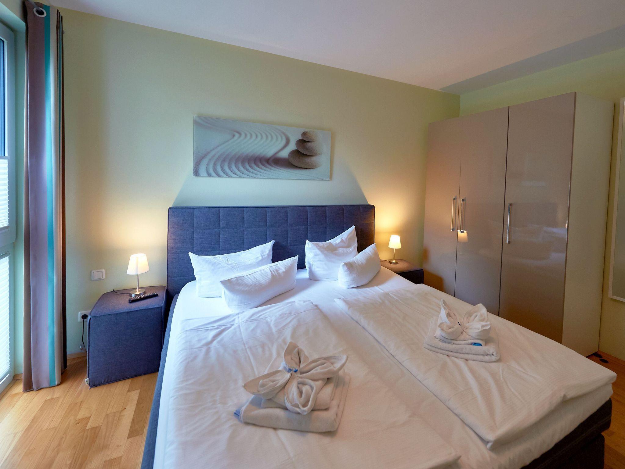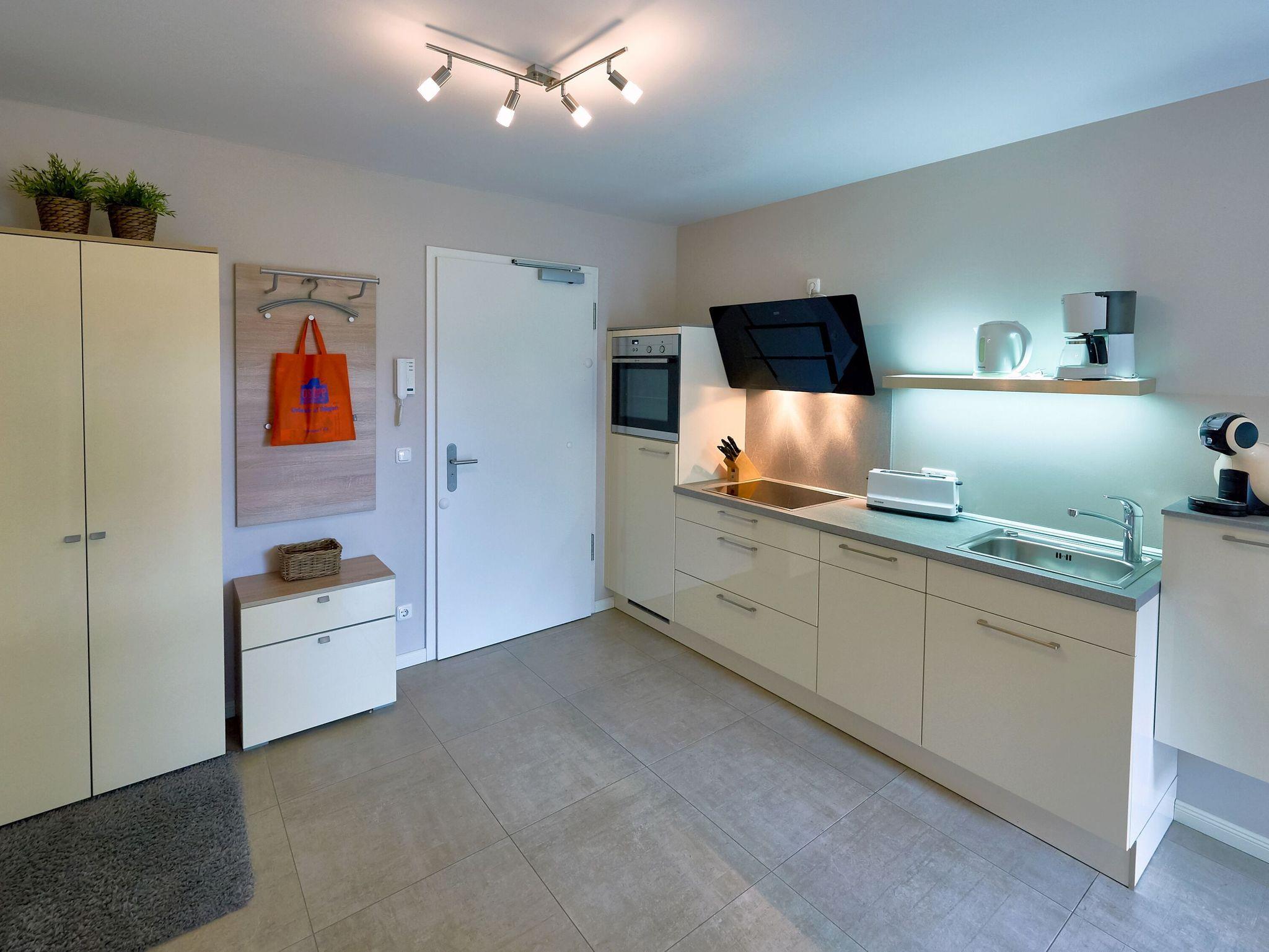 Modernes, barrierefreies 2-Raum-Appartement mit WLAN, Sauna und E-Auto-Ladestation in Binz, nur 250 m vom Strand entfernt.