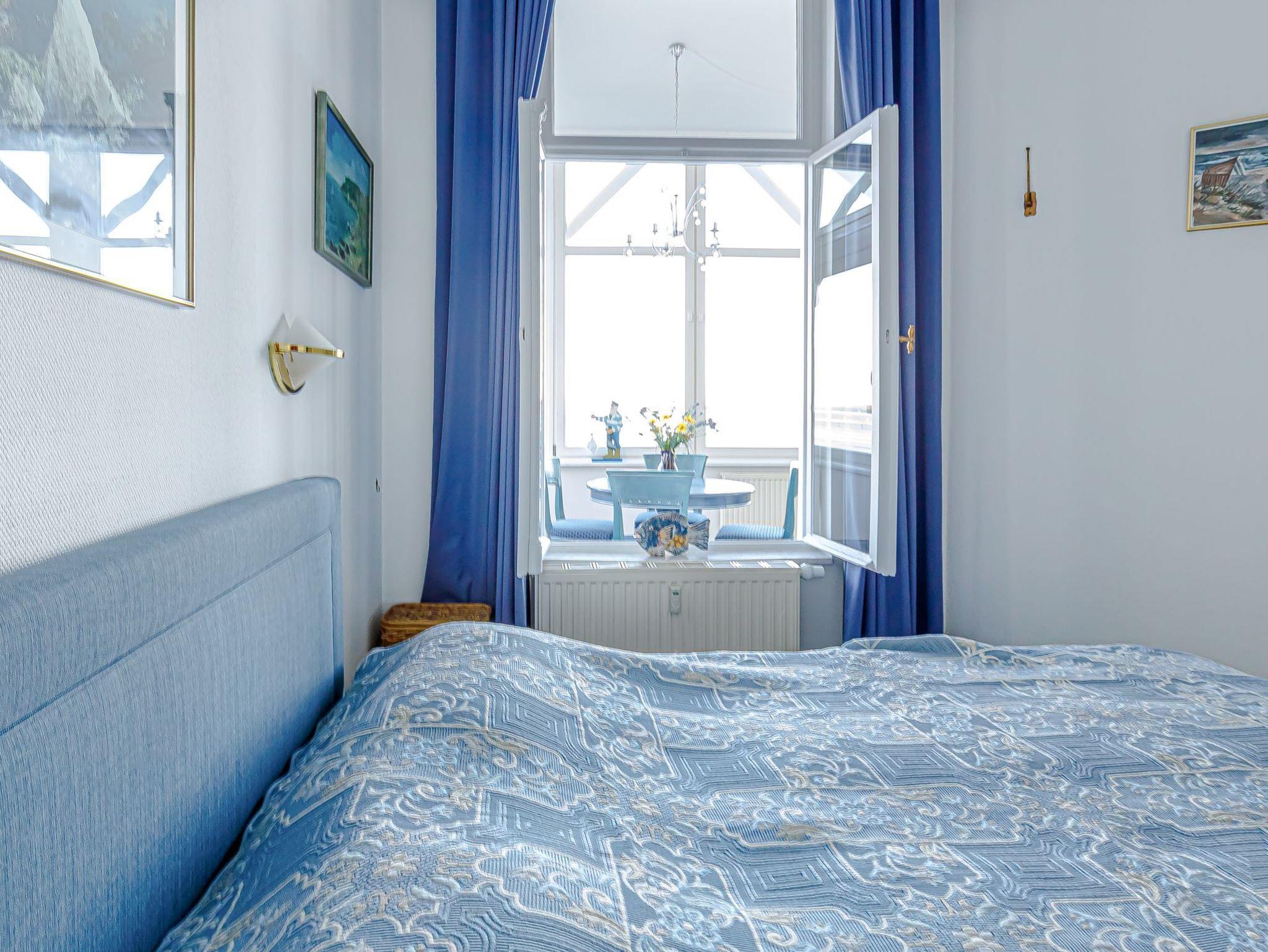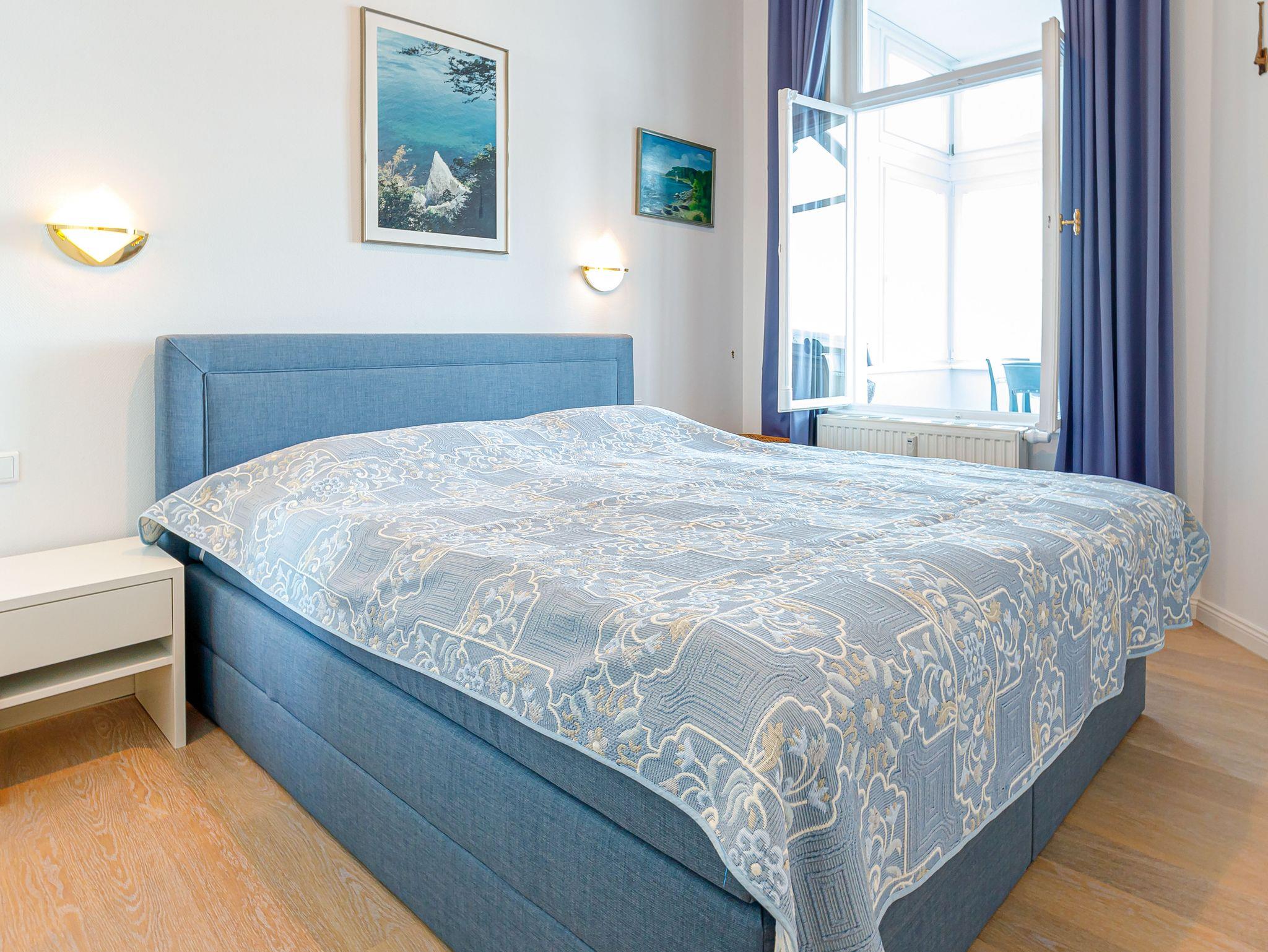 Das 2-Raum-Apartment 13 (Wohnung ?Weitblick?) mit Wintergarten zur Seeseite befindet sich im 2. Obergeschoss und ist ca. 57 m² groß. Von dem Wintergarten aus hat man einen traumhaften Blick auf die Ostsee. Die Wohnung ist geschmackvoll eingerichtet. Die komplett ausgestattete Küchenzeile verfügt über einen Geschirrspüler, Ceran-Back-Herd, Kühlschrank, Mikrowelle und weiteren nützlichen Küchengeräten wie Kaffeemaschine, Toaster, Wasserkocher usw. Das Bad ist mit einer Dusche ausgestattet. Im separaten Schlafzimmer befinden sich u.a. ein Doppelbett (Boxspringbett) und ein großer Kleiderschrank mit eingebautem Safe. WLAN steht Ihnen kostenfrei zur Verfügung. Ein Pkw-Stellplatz für das Apartment befindet sich auf der Hofseite der Villa Agnes. Gegen Entgelt können die Feriengäste die Waschmaschine und den Wäschetrockner im Keller nutzen. Während der Saison steht den Gästen ein Strandkorb kostenfrei zur Verfügung.