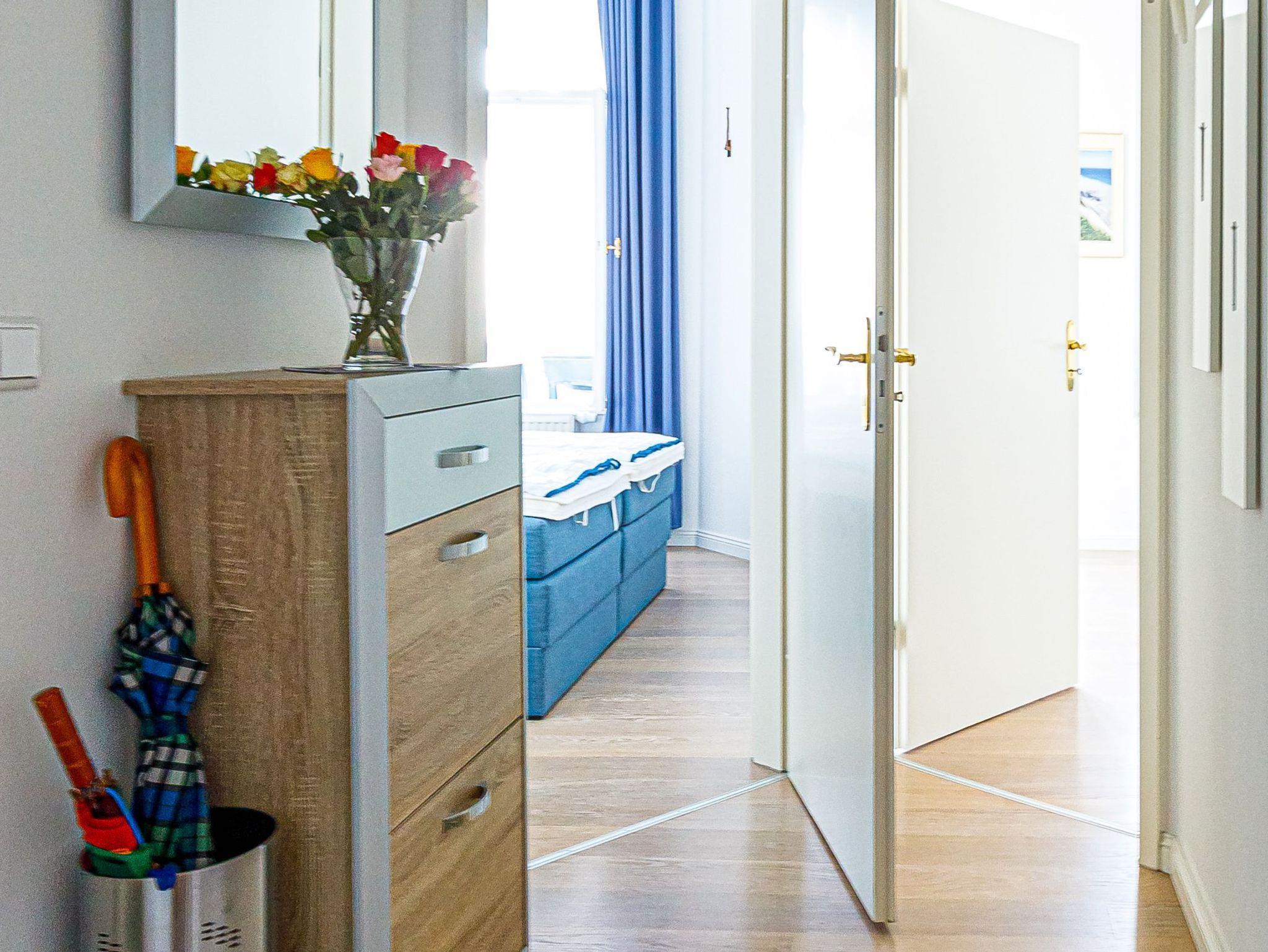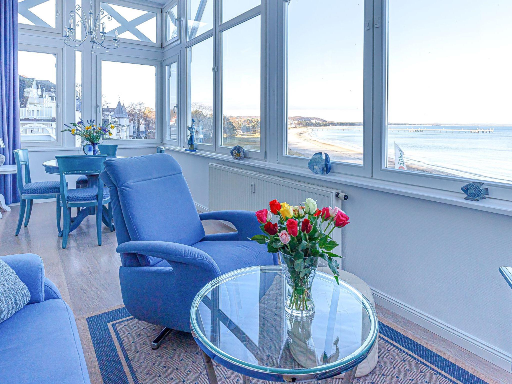 Das 2-Raum-Apartment befindet sich im 2. Obergeschoss und ist für bis zu 2 Erwachsene geeignet. Das Apartment verfügt über einen Wintergarten mit Meerblick.