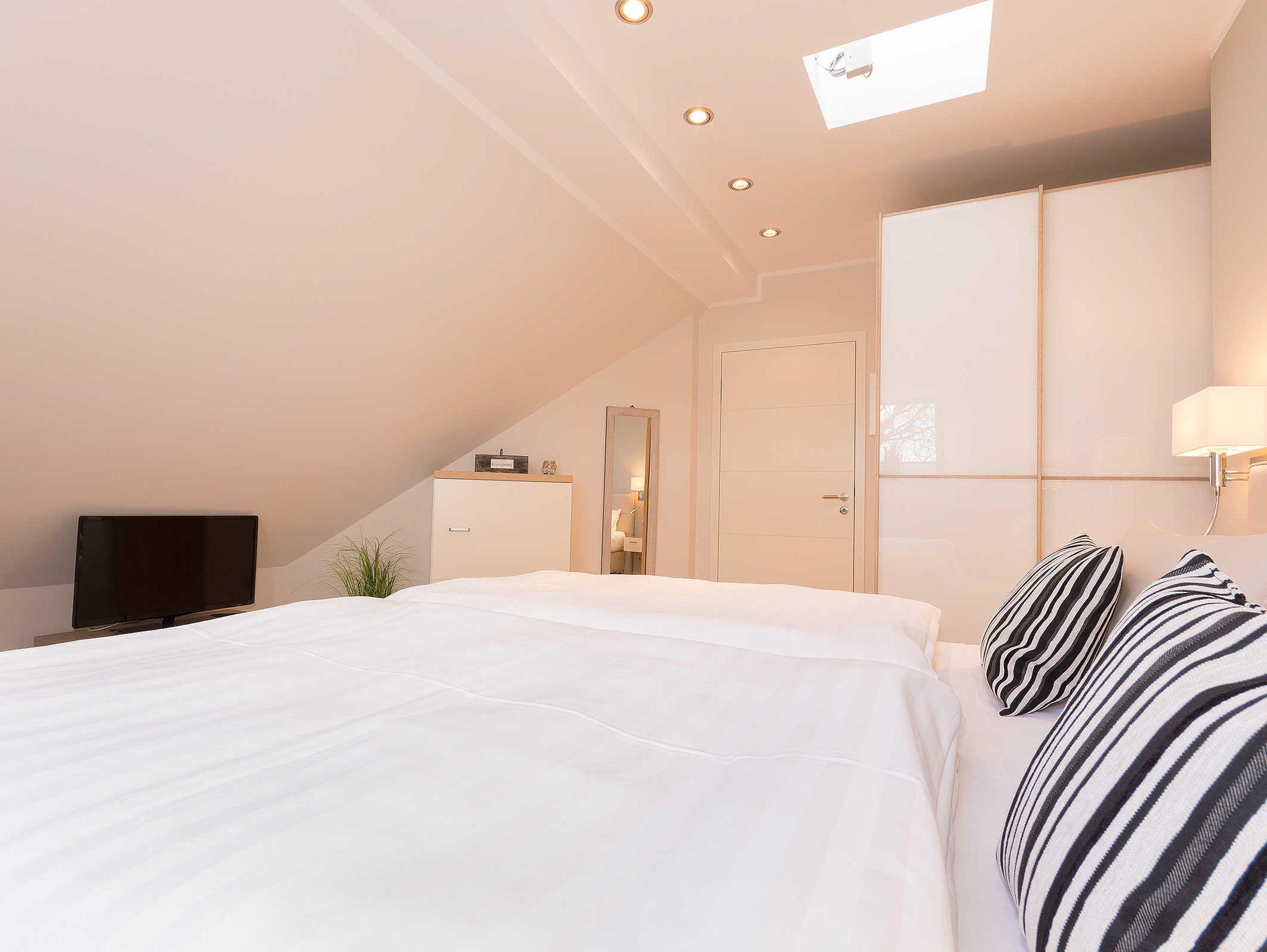 Die Villa Allegra in Binz bietet moderne Luxuswohnungen mit Sauna und Balkonblick nahe Strand und Zentrum.
