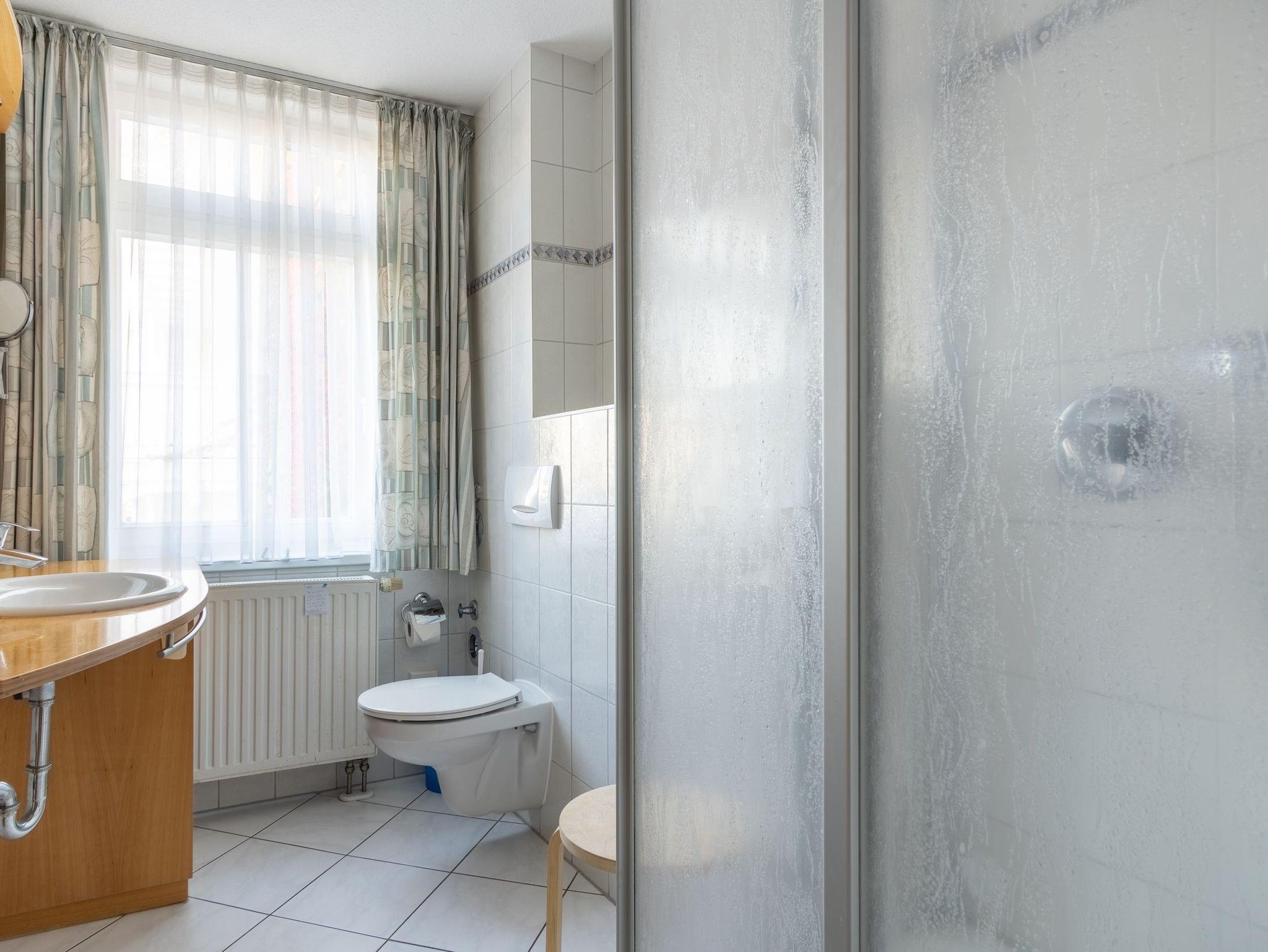 Das Apartment verfügt über ein großes Duschbad mit Fenster.