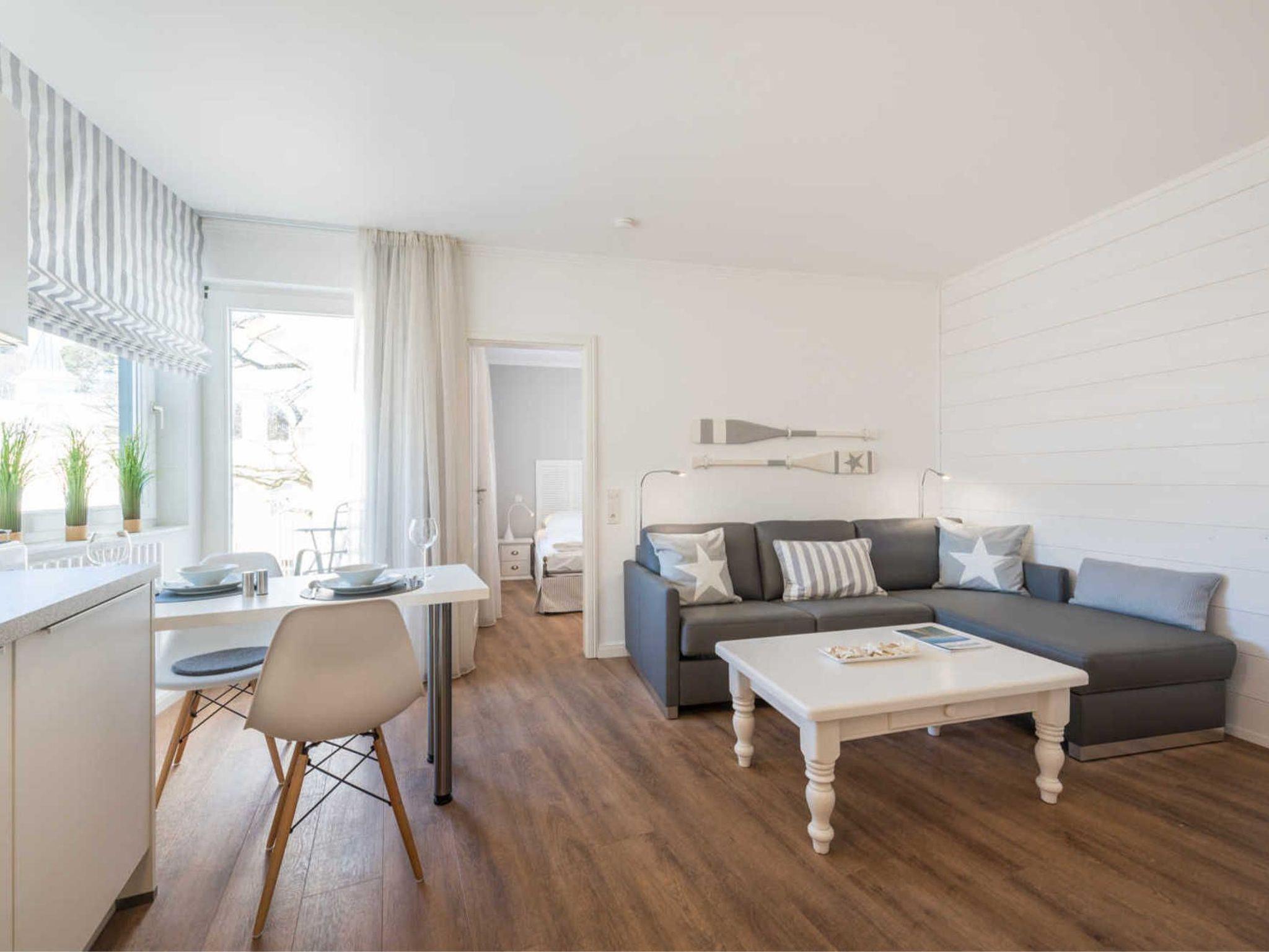 Gemütliche 2-Zimmer-Ferienwohnung mit Balkon, WLAN, Sauna und Parkplatz in Binz, nur 200 m vom Strand entfernt.