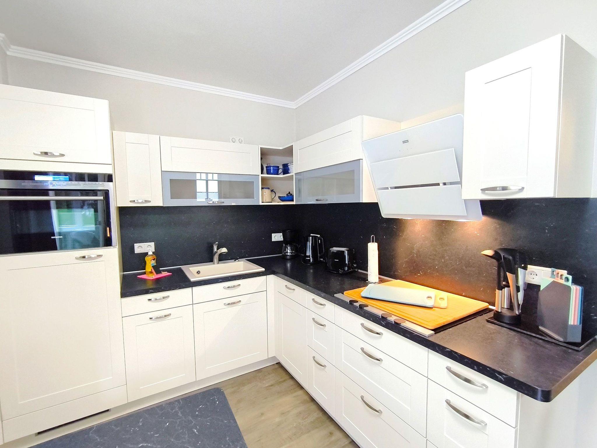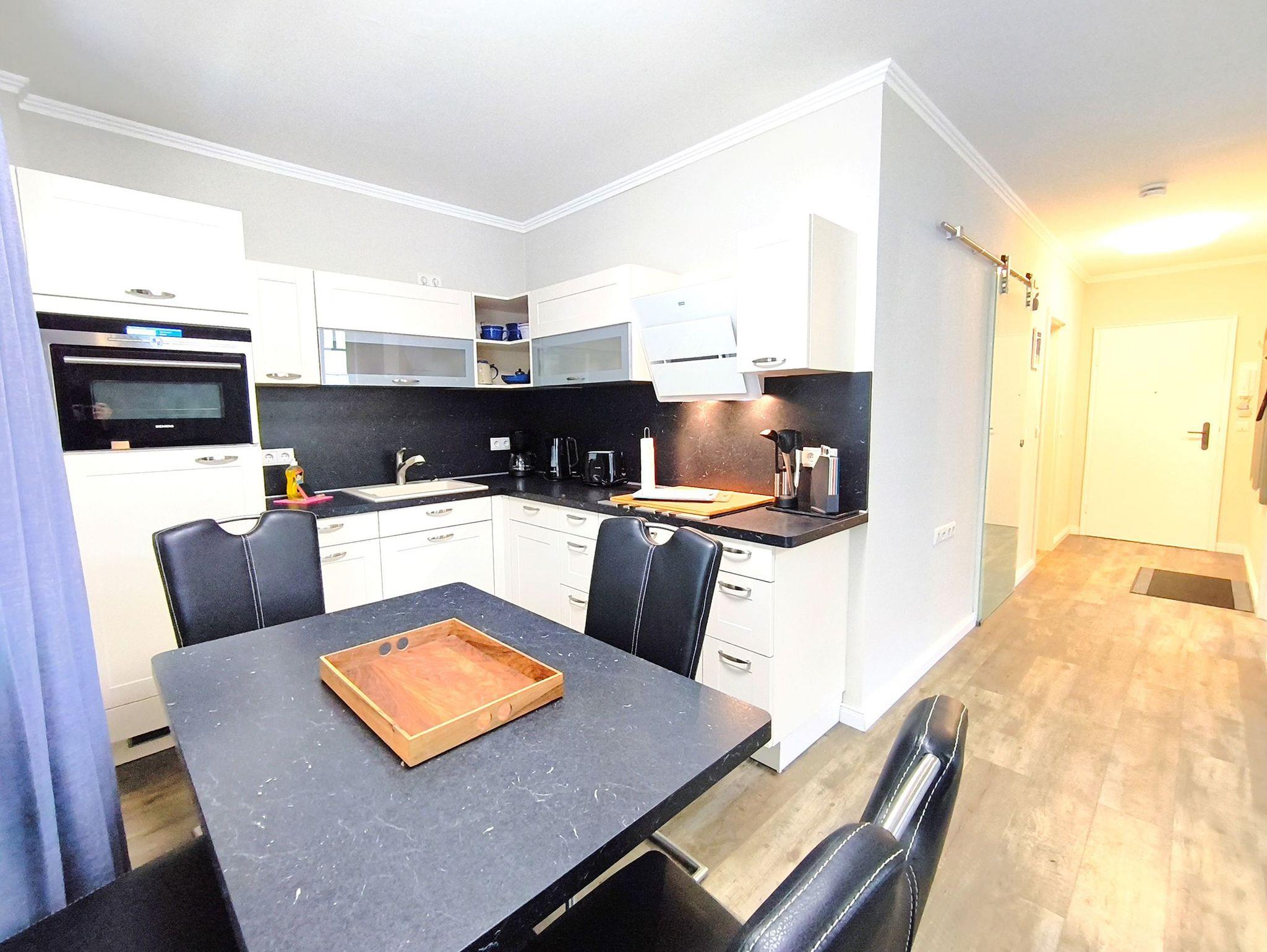 Die voll ausgestattete Küche ist funktional integriert und bietet alles, was Sie für Ihren Aufenthalt benötigen.