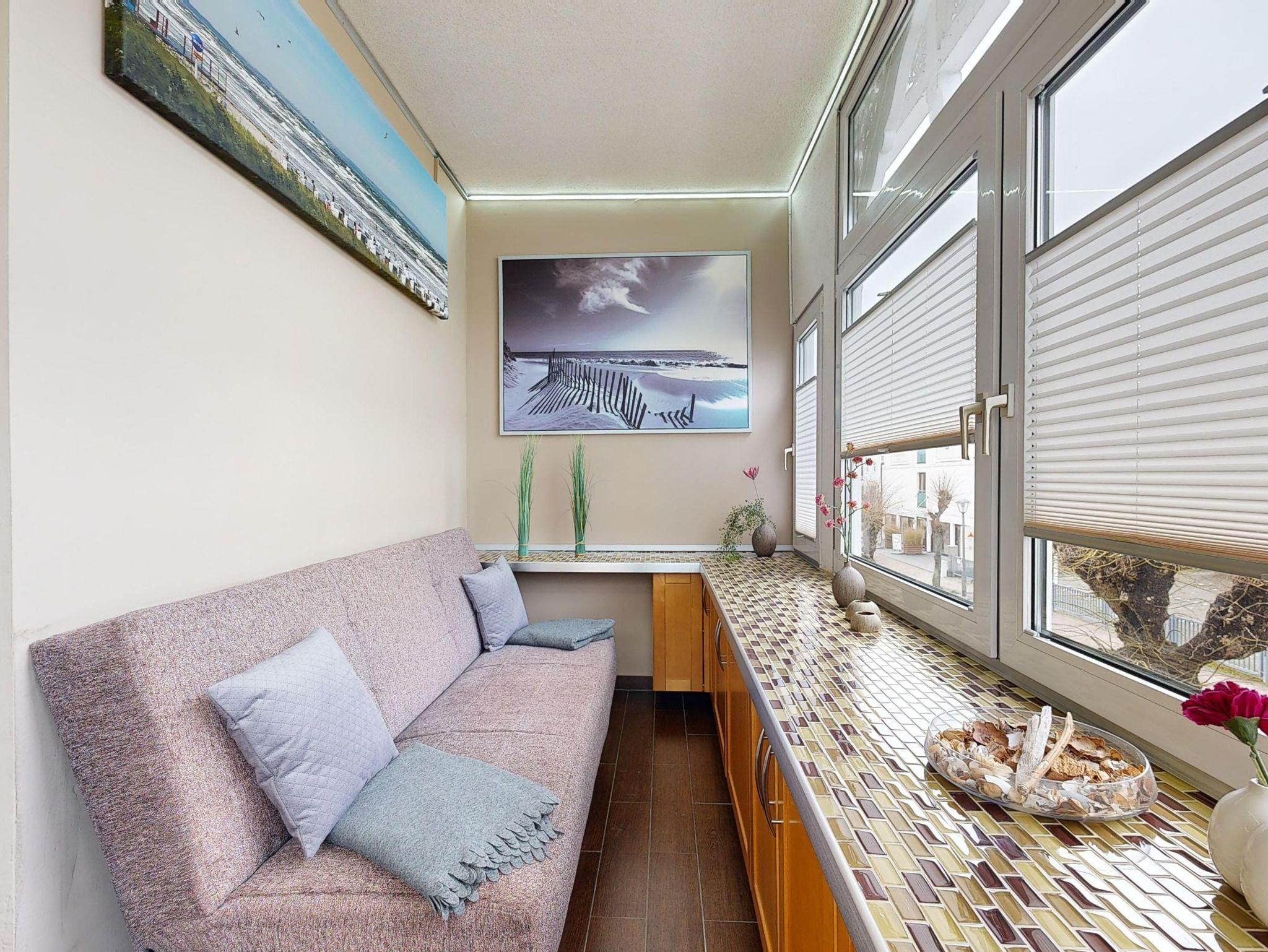 Loggia mit einer Couch und Fußbodenheizung