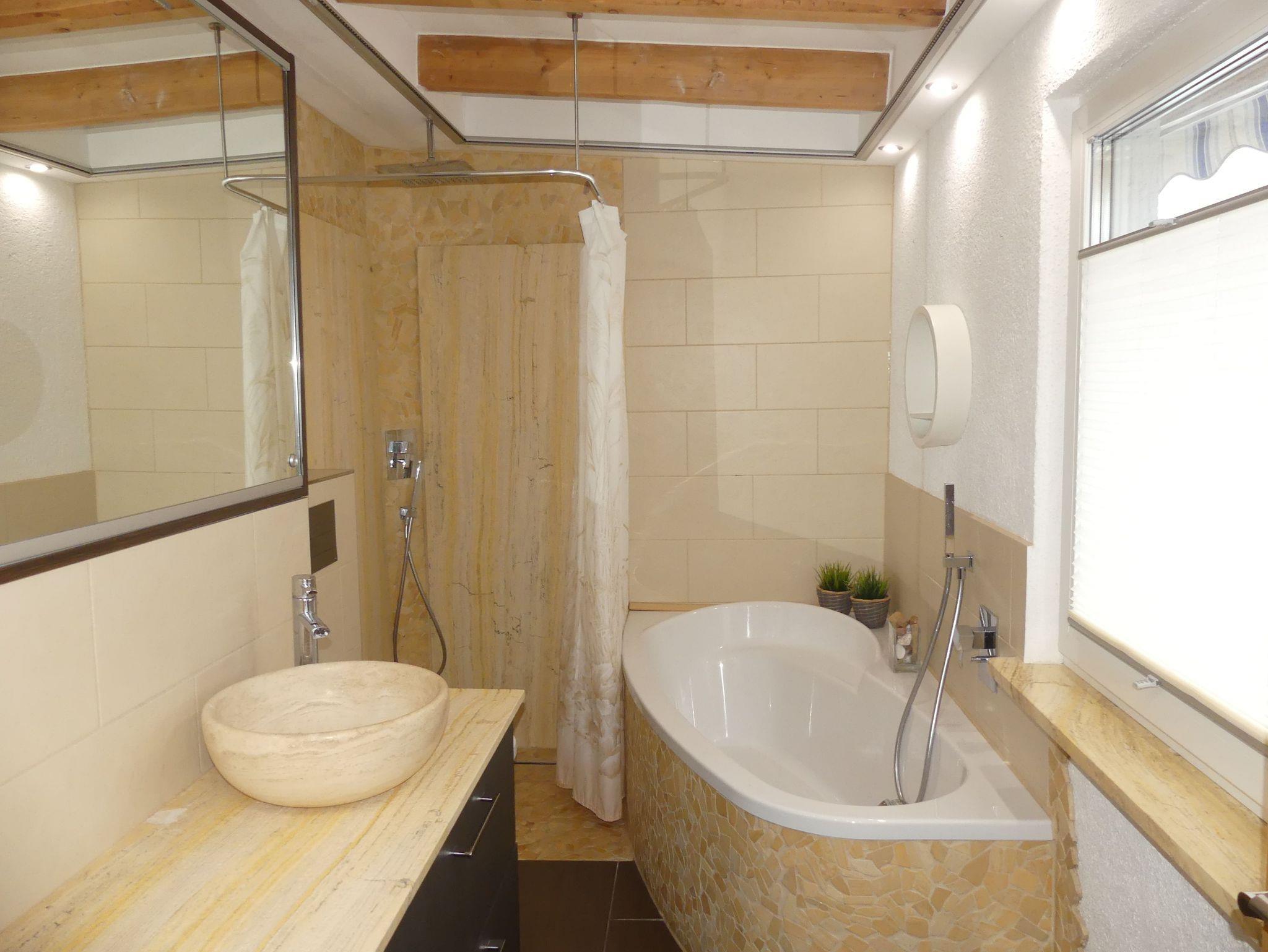 1 Badezimmer mit Badewanne, Dusche, WC, Föhn und Fußbodenheizung