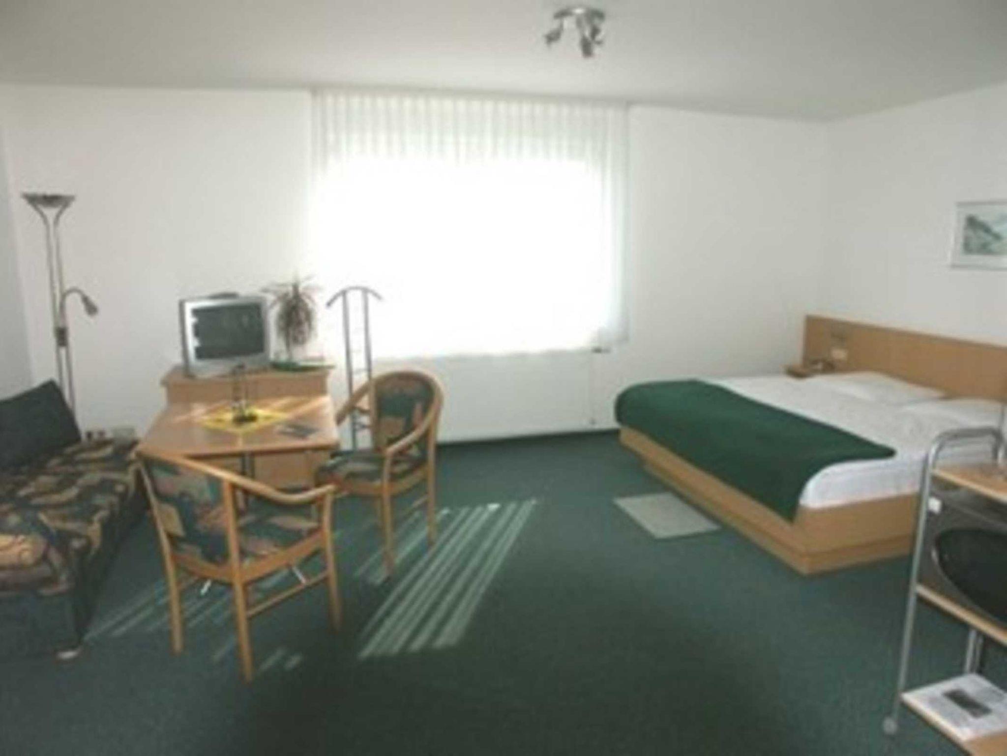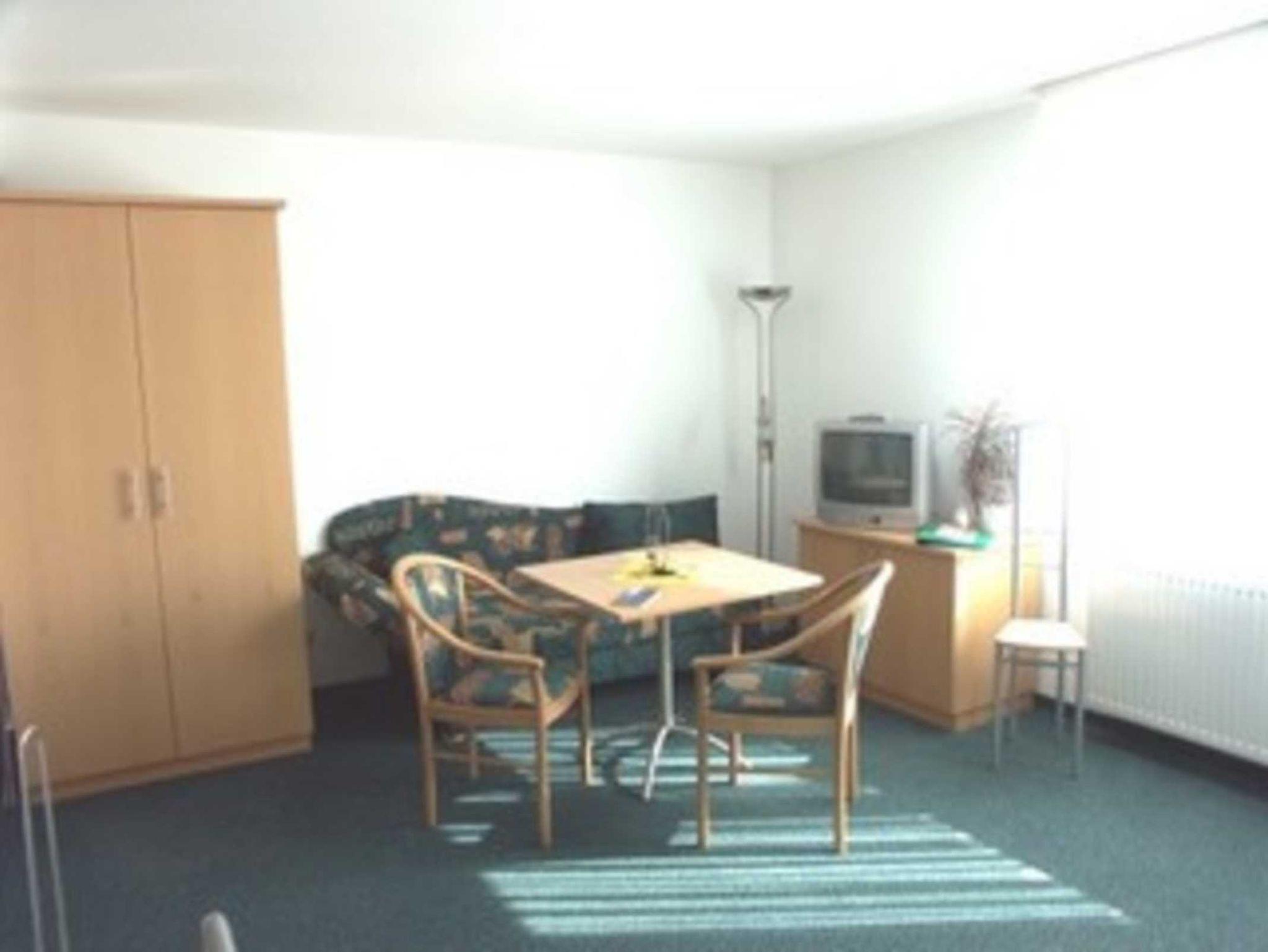 1-Raum Appartement im 1. OG. Liebevoll und modern eingerichtet mit Doppelbett, Eßbereich,Schlafcouch, Pantryküche( mit diversen Kleingeräten ausgestattet), DU/WC.