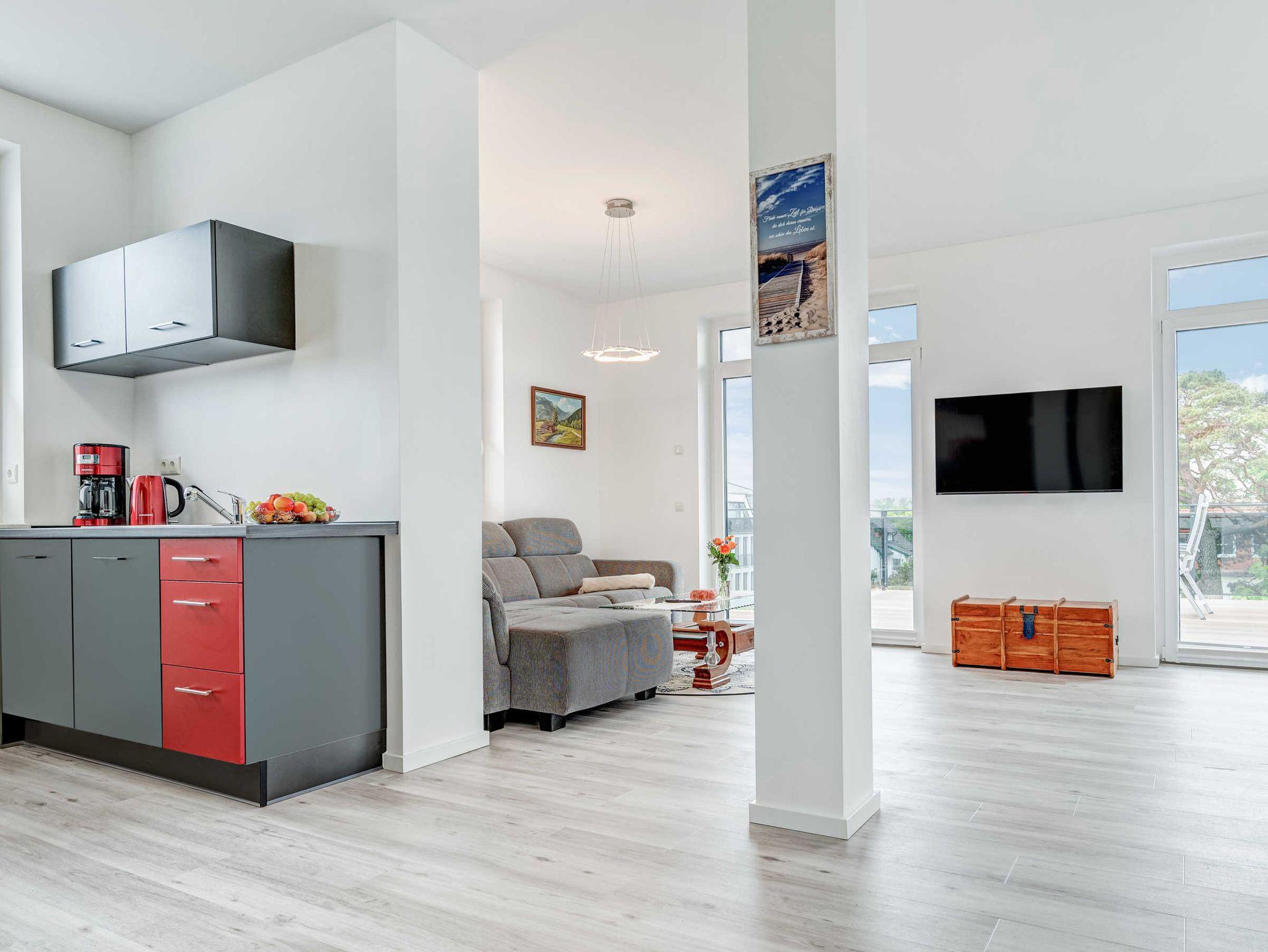 Moderne Penthousewohnung in Binz mit großer Terrasse, zwei Schlafzimmern und Blick über die Ostseebäder.