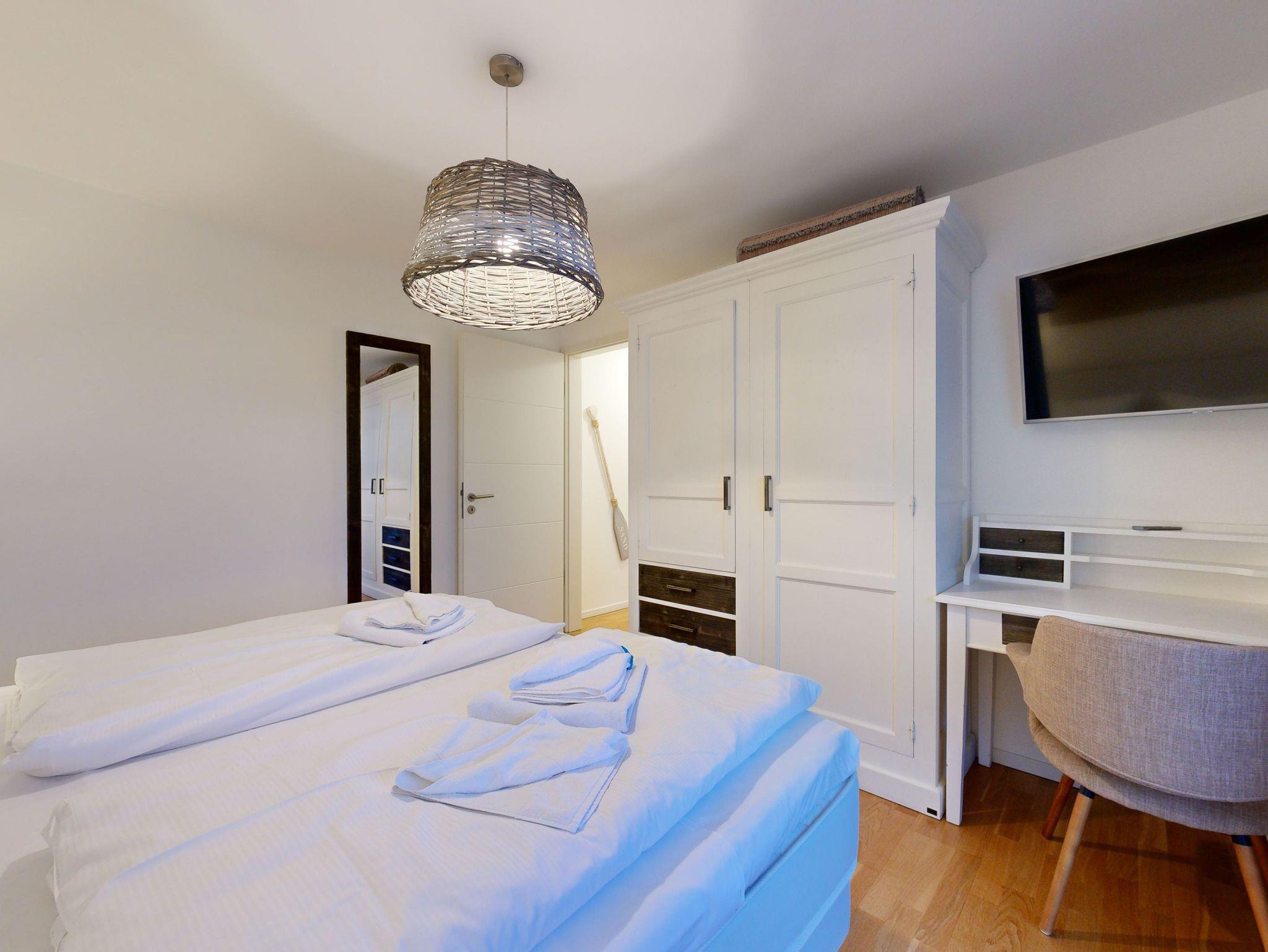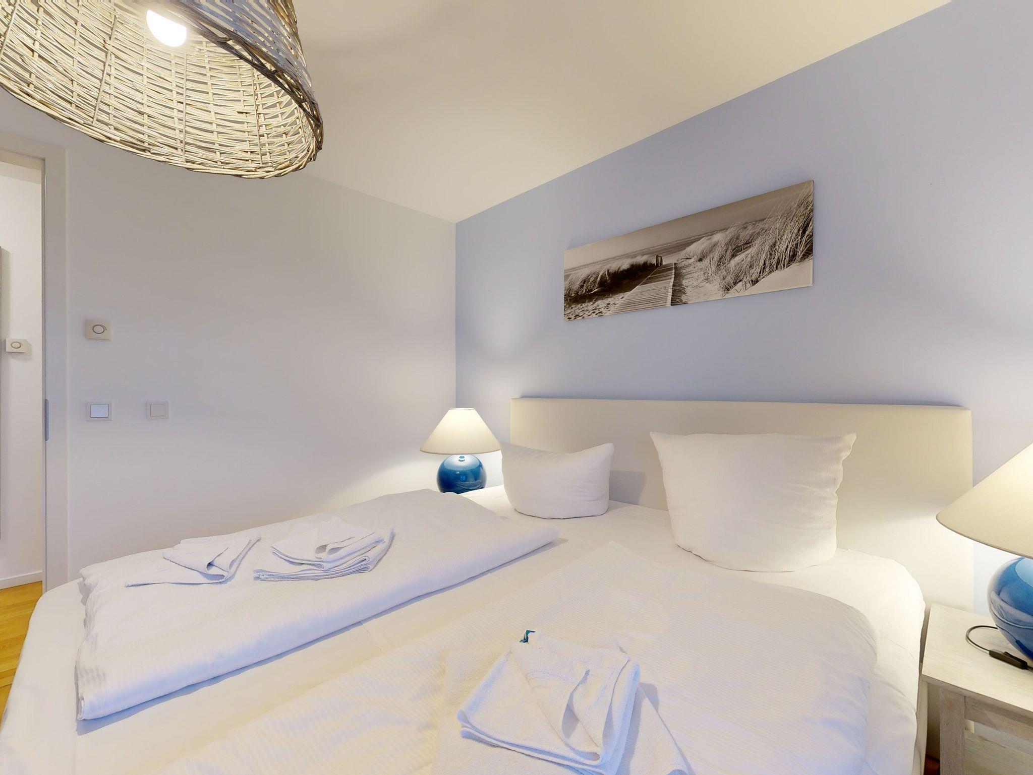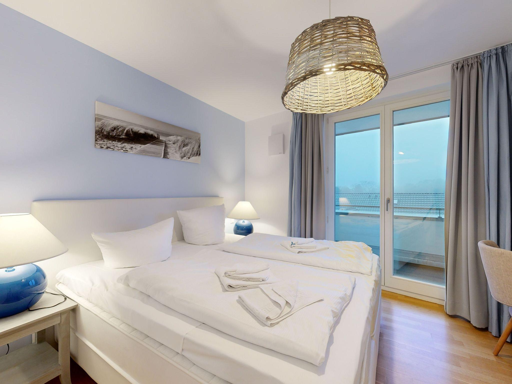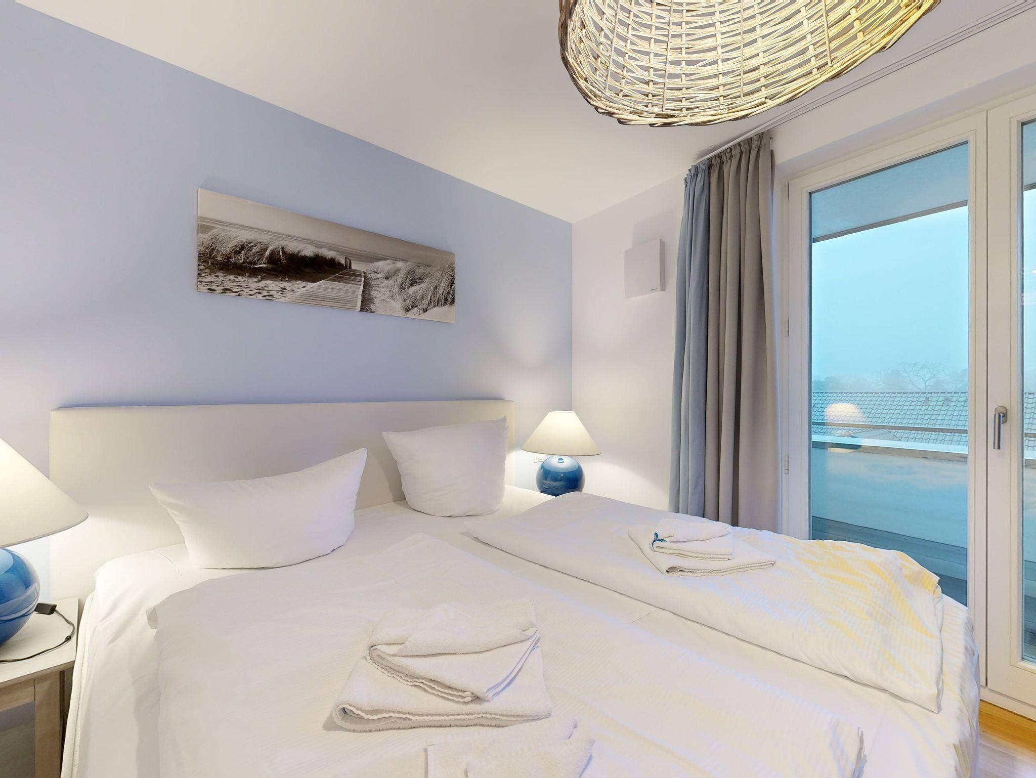 Ostseeblick - Penthouse mit großer Dachterrasse für bis zu 4 Personen (Aufbettung auf Anfrage); Ausstattung der 4-5-Sterne Wohnung im 4. OG mit 2 Schlafzimmern (3 Zimmer / 130 m²):