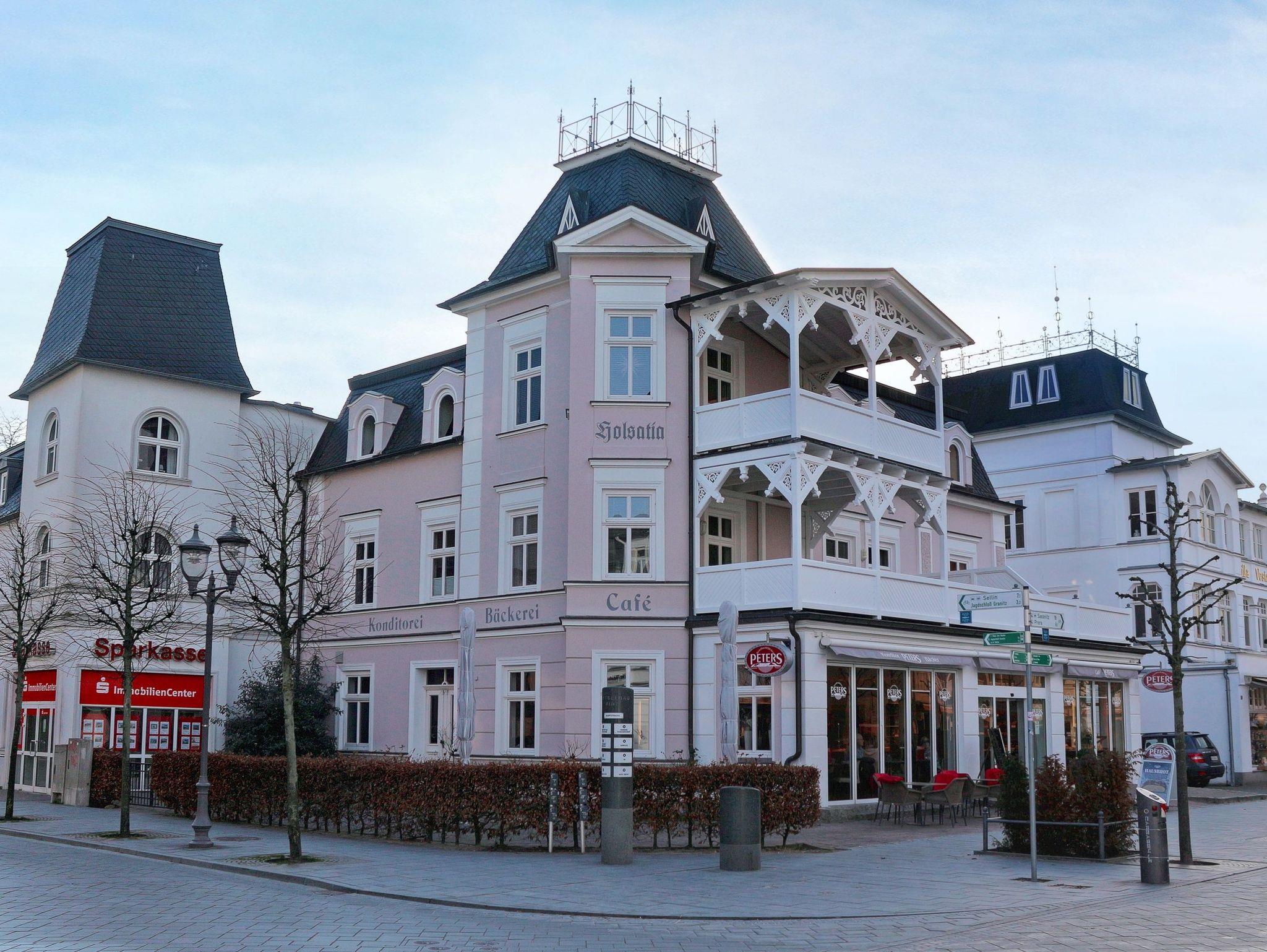 Die Villa Holsatia liegt direkt an der wunderschönen Fußgängerzone von Binz, die zum Schlendern und Shoppen einlädt. Bank, Supermarkt, zahlreiche Geschäfte und Restaurants sind in unmittelbarer Nähe. Zur Binzer Seebrücke, Strandpromenade und zum Strand sind es von hier aus nur wenige Schritte.